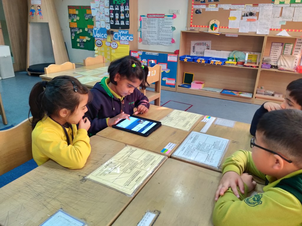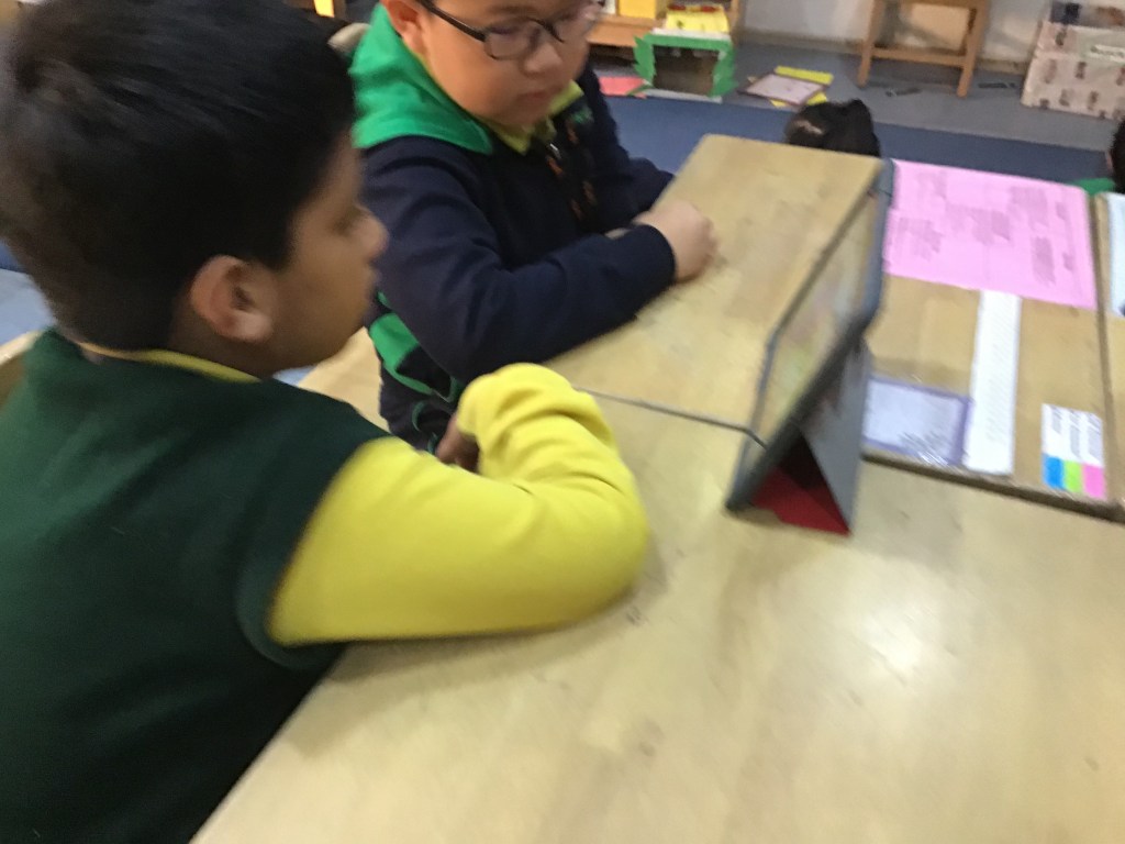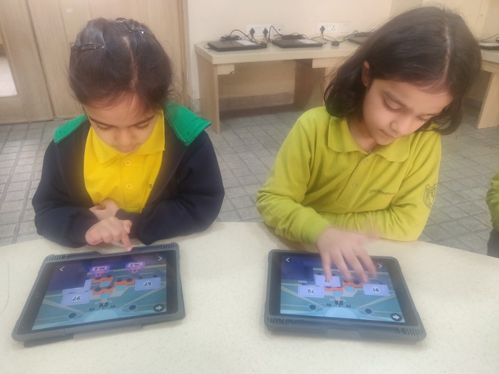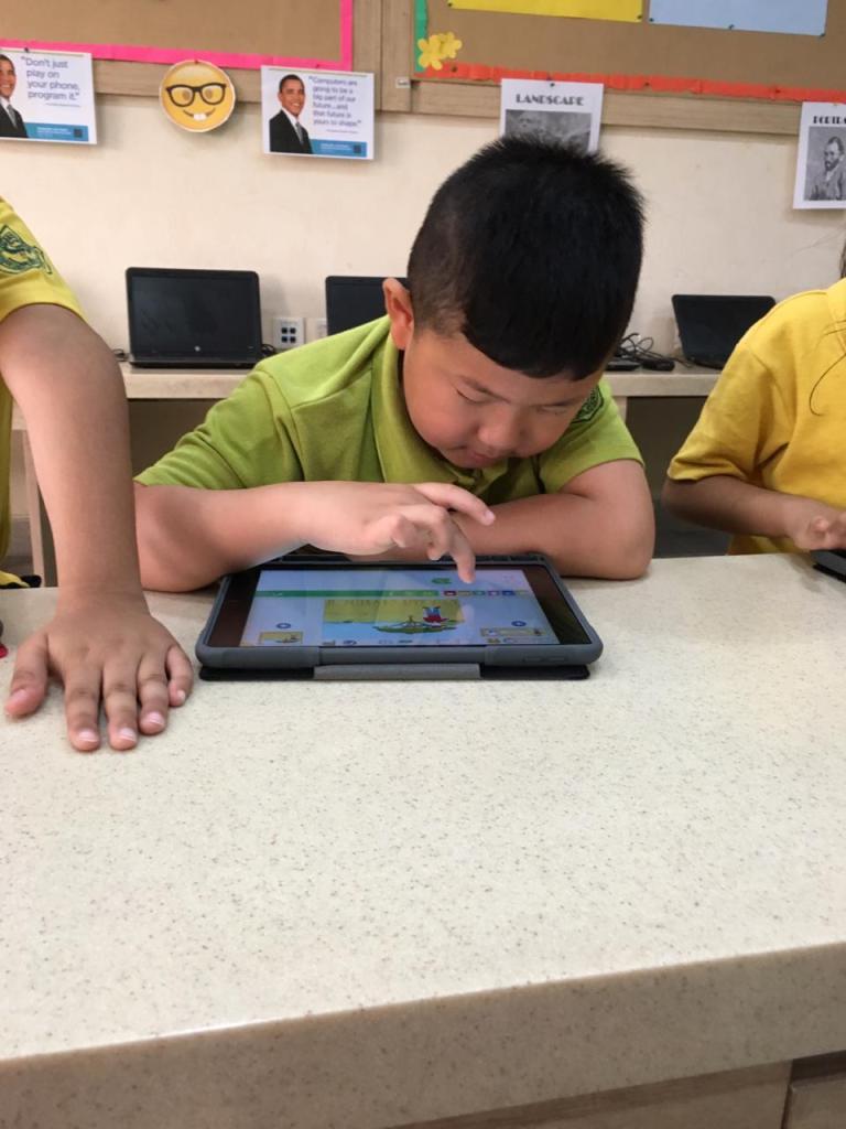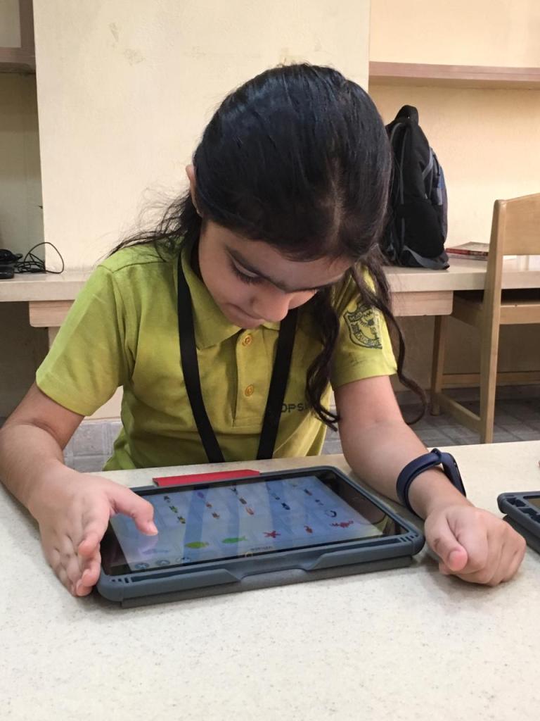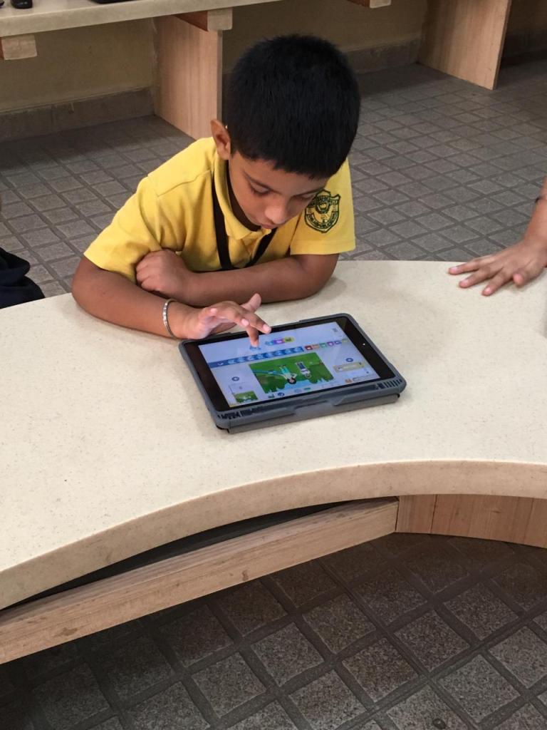 Students worked on their coding skills using an iPad app Bee-Bot.