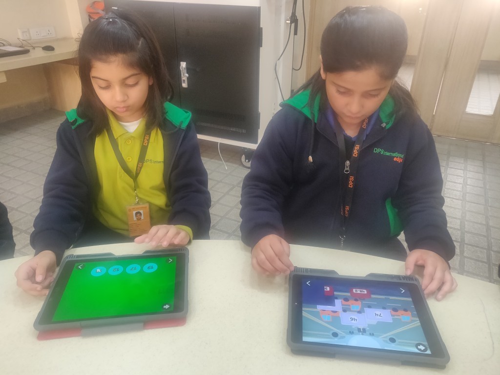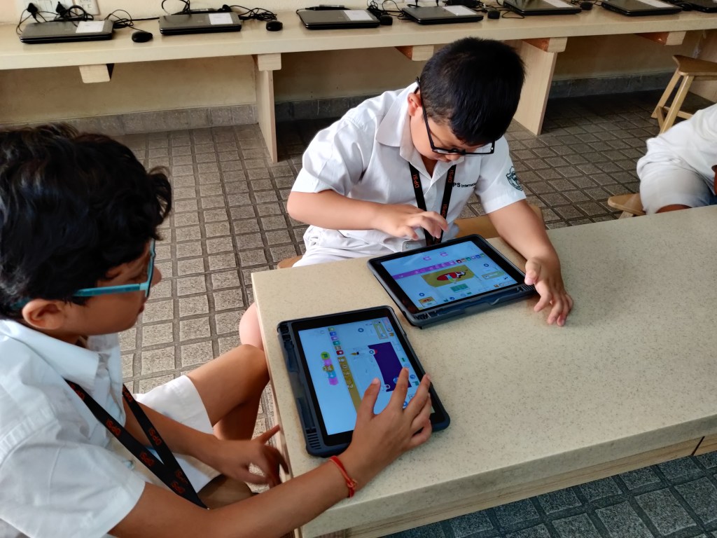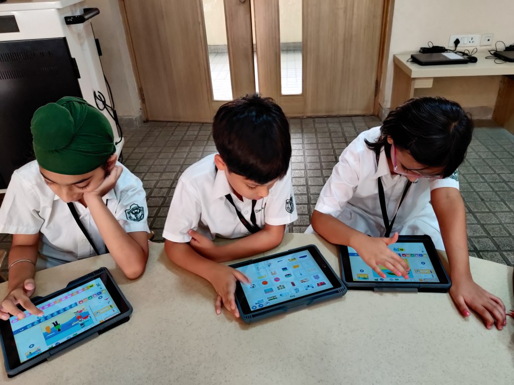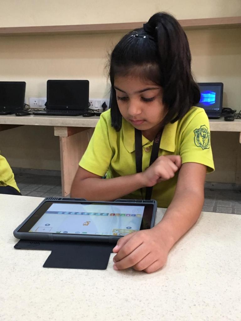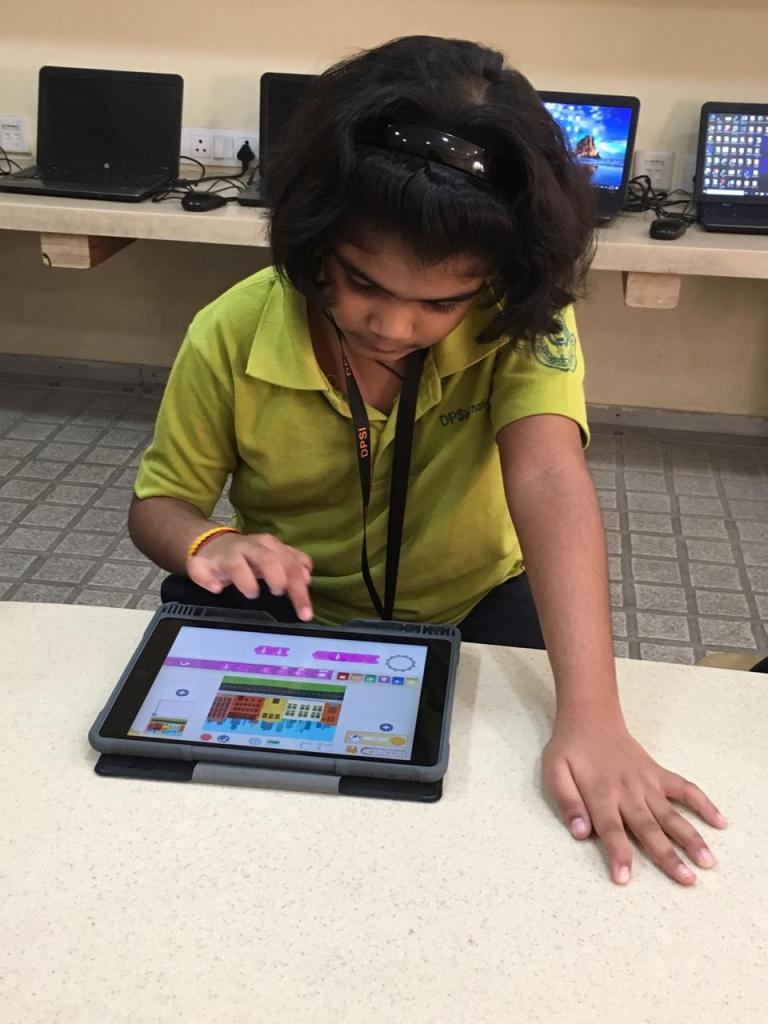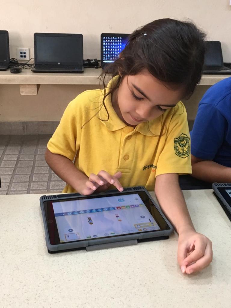 Students worked on their coding skills using an iPad app Bee-Bot.