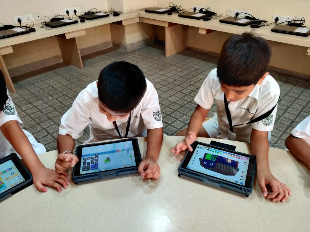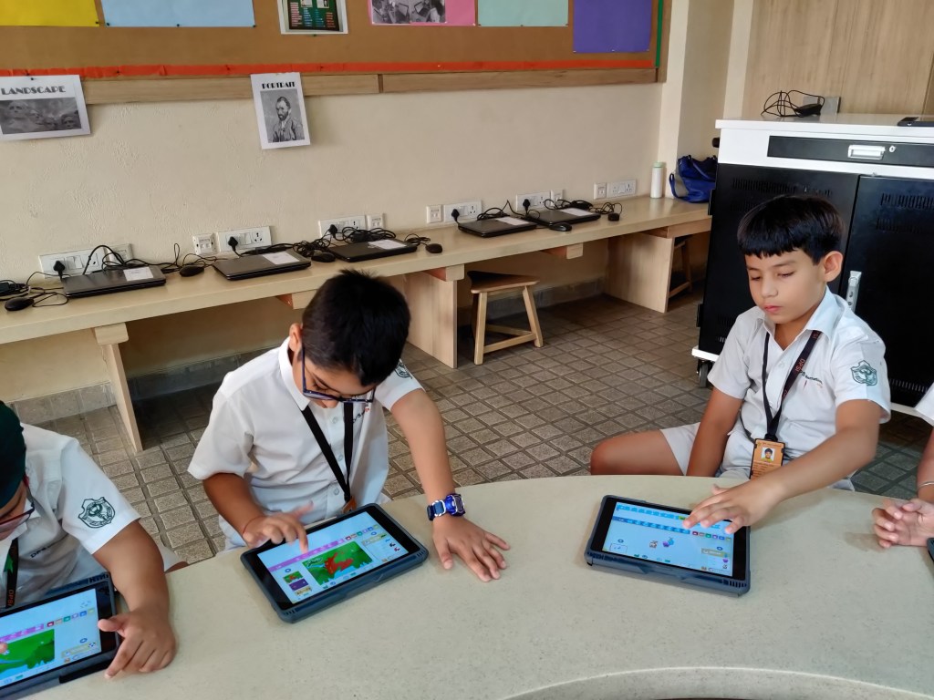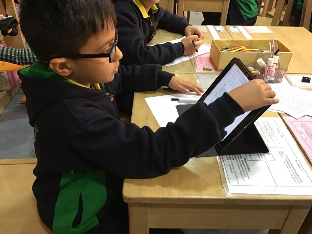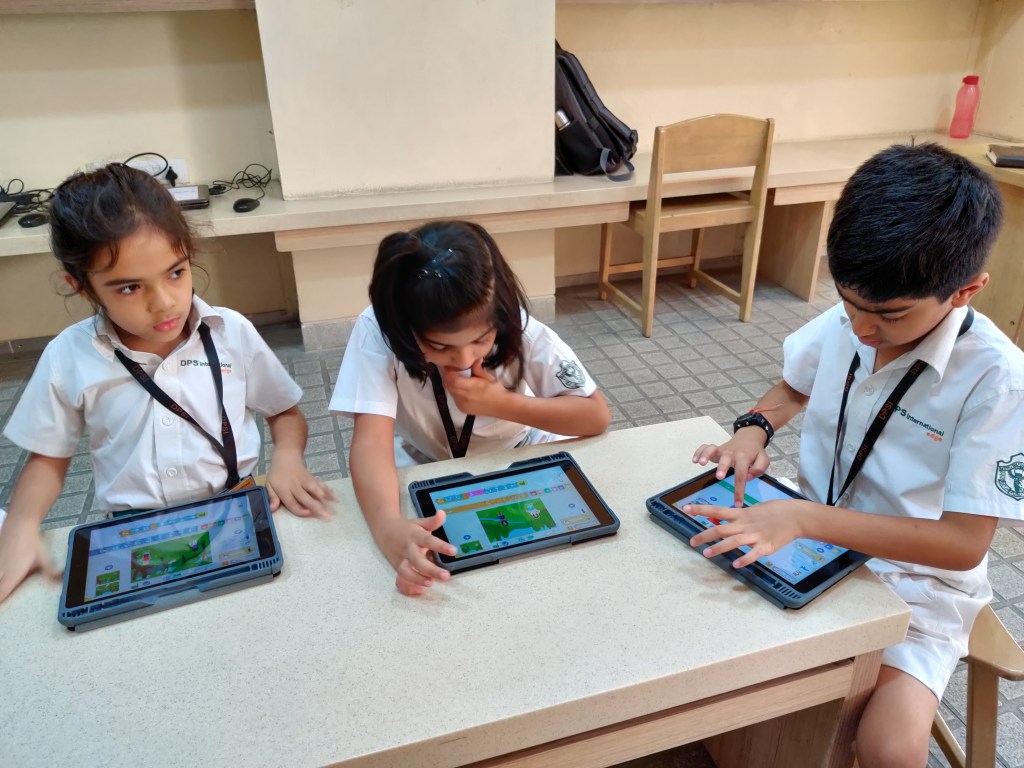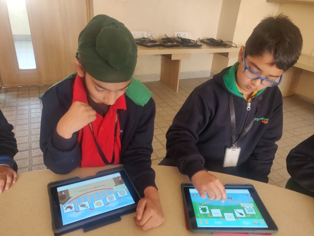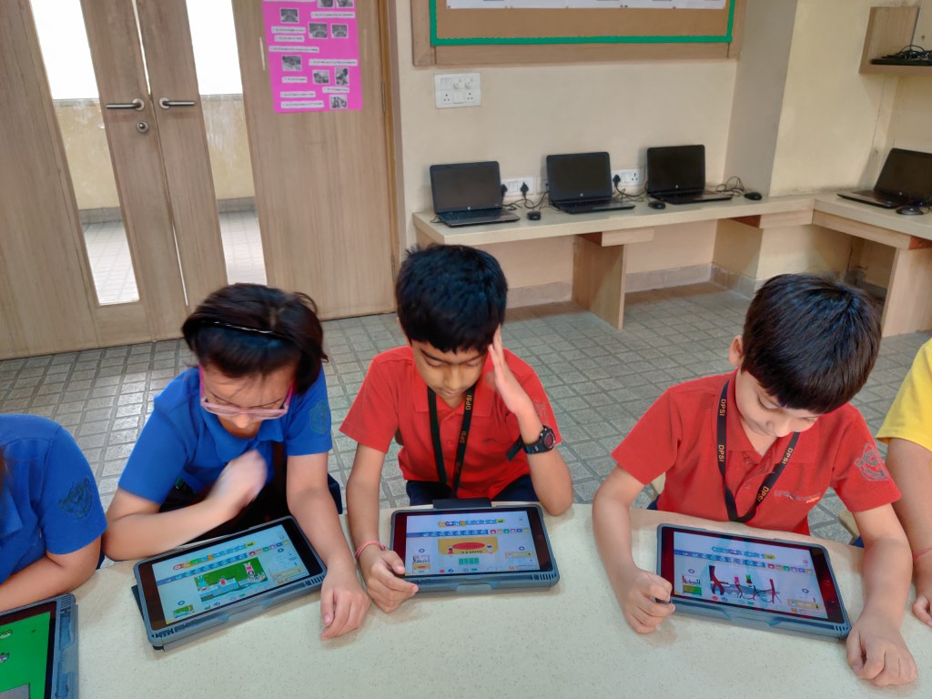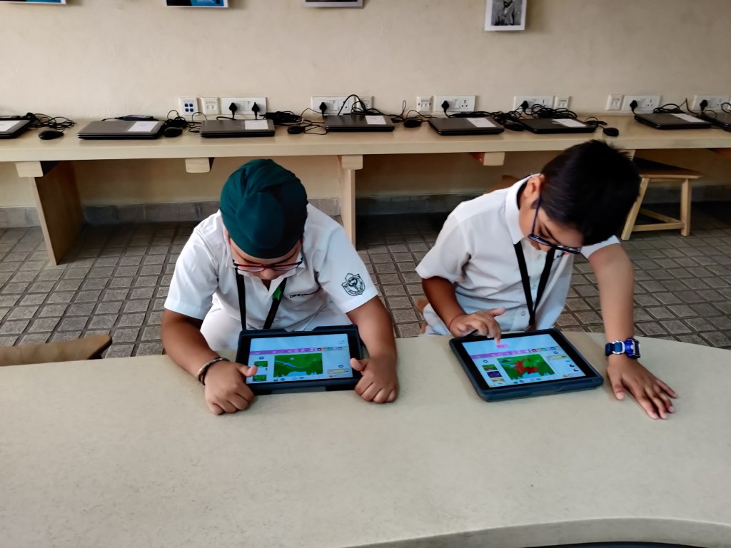 Students worked on their coding skills using an iPad app Bee-Bot.