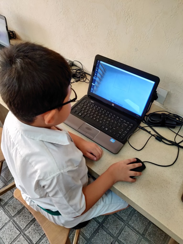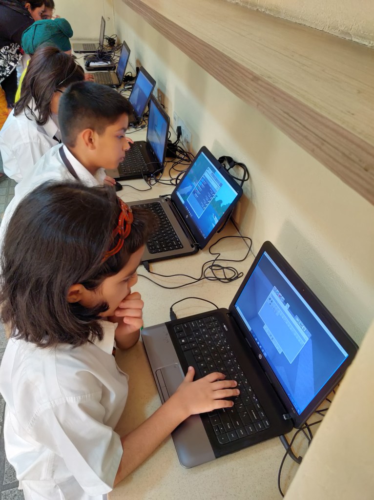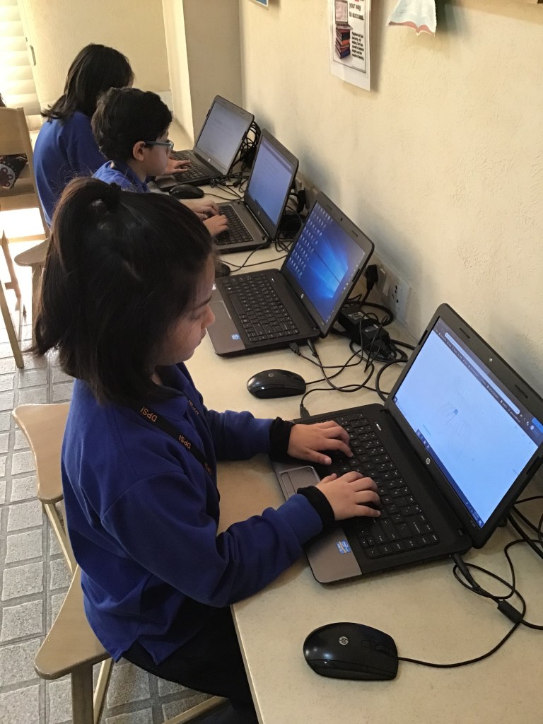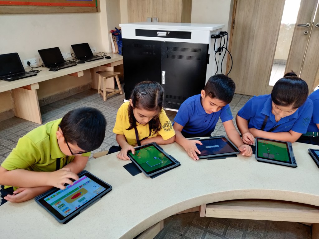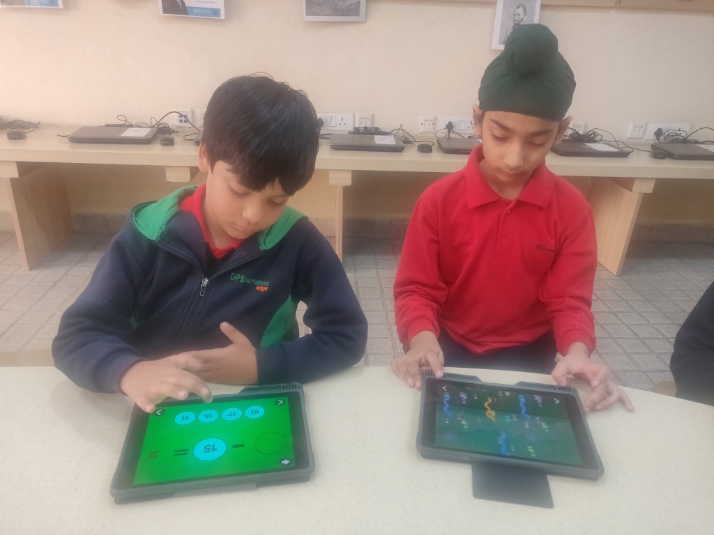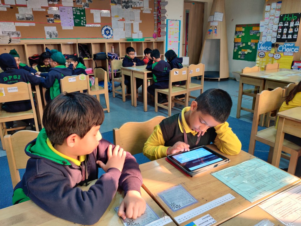 Students worked on their coding skills using an iPad app Bee-Bot.