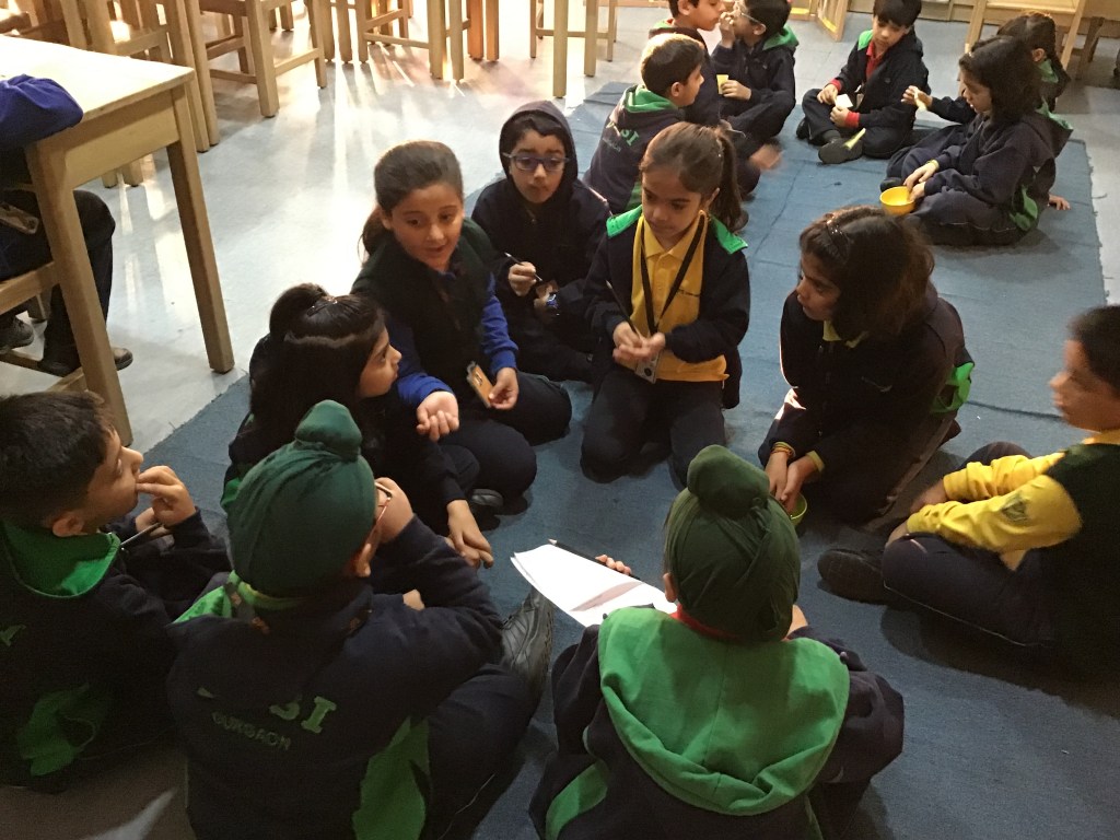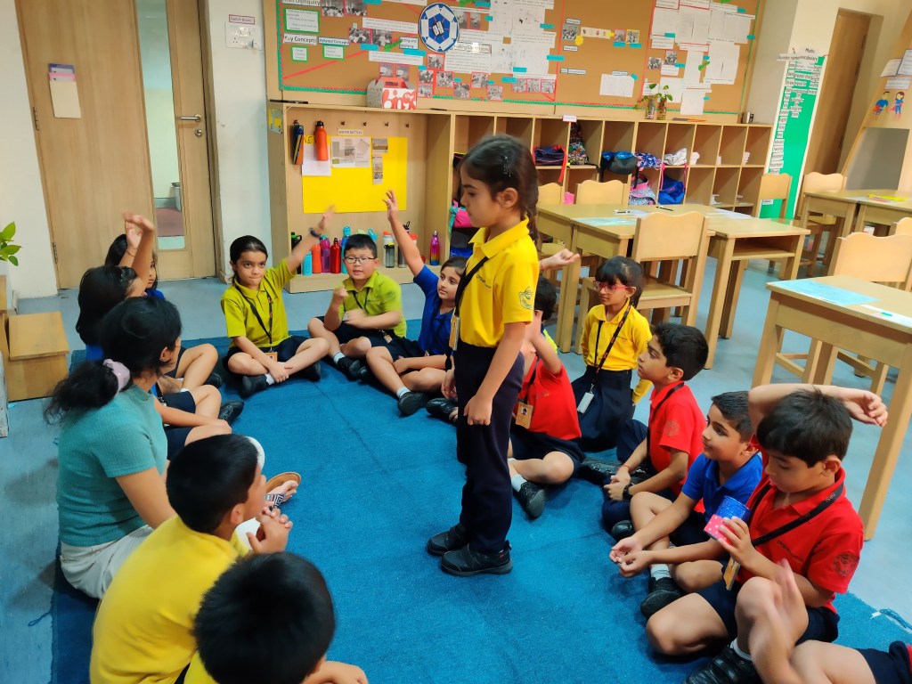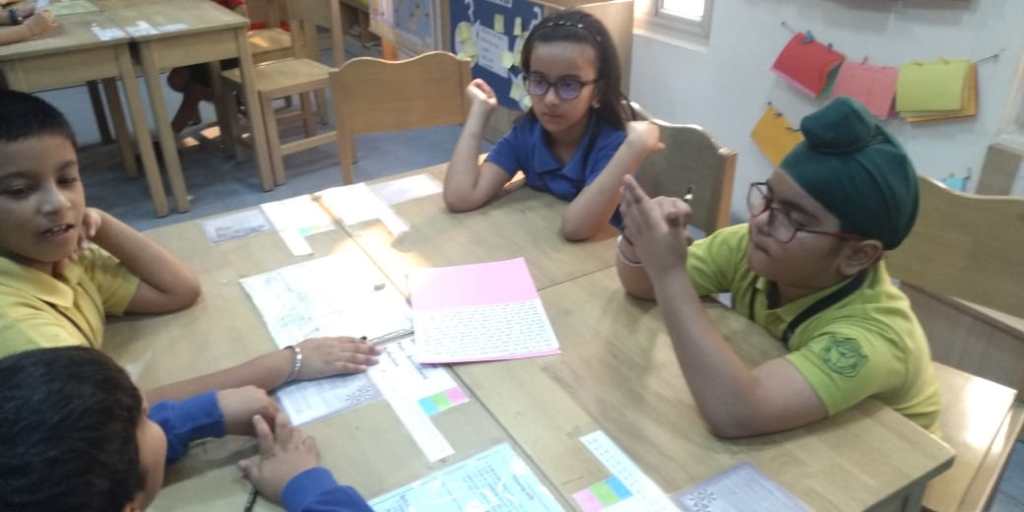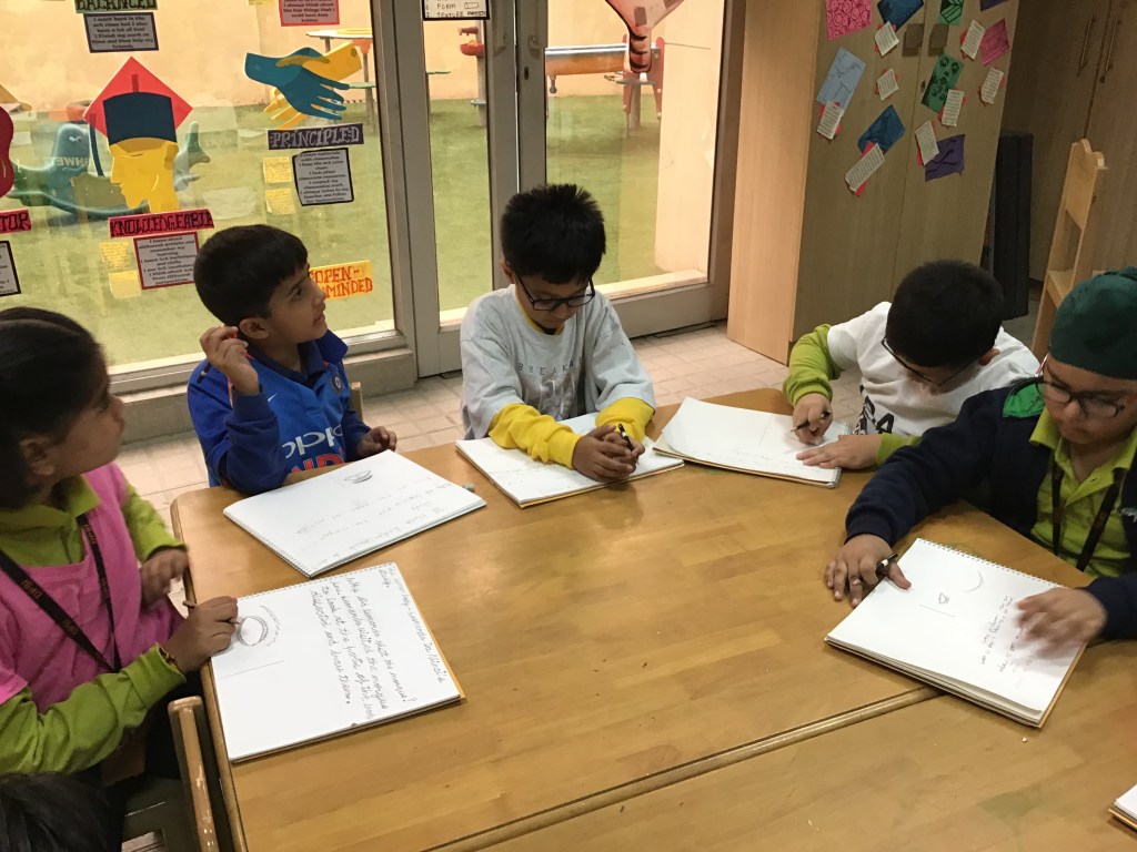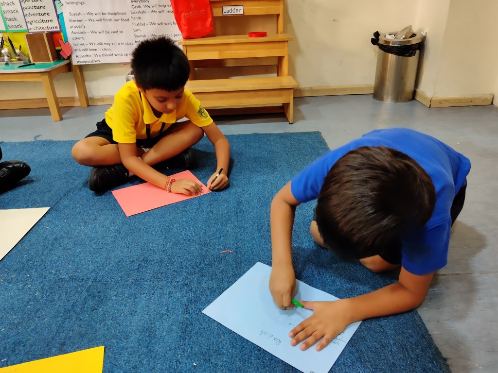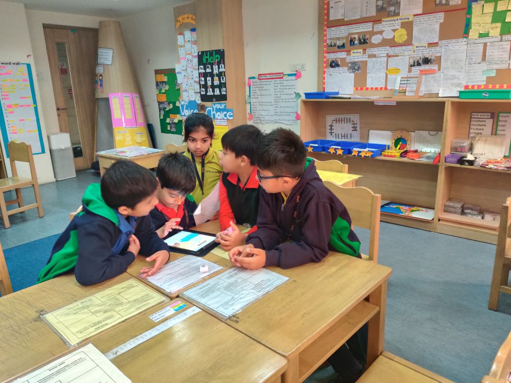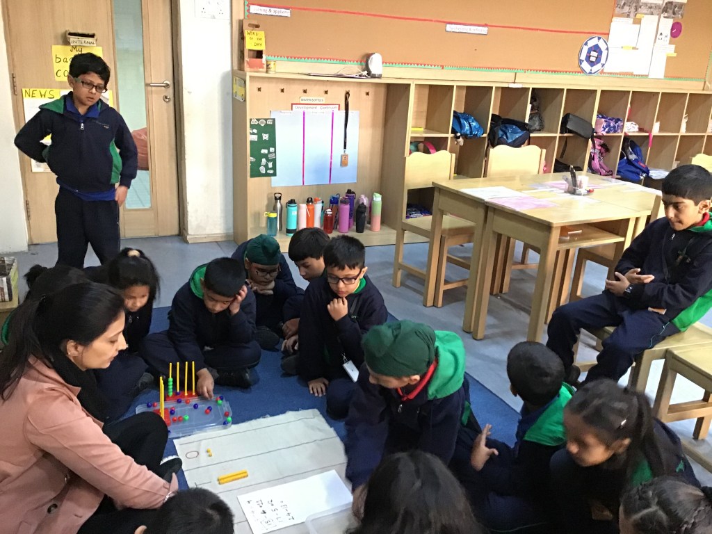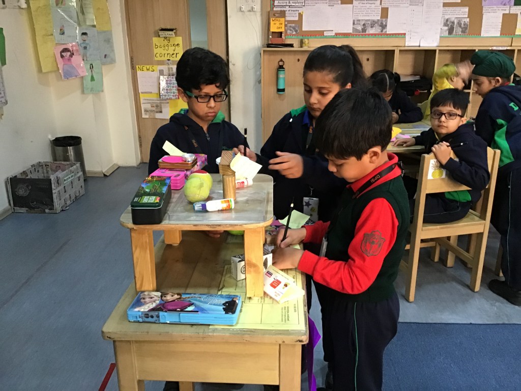 Students were introduced to shapes and their properties with the help of a mystery bag activity and they recorded their observations using ‘think-pair-share’ visible thinking routine.
