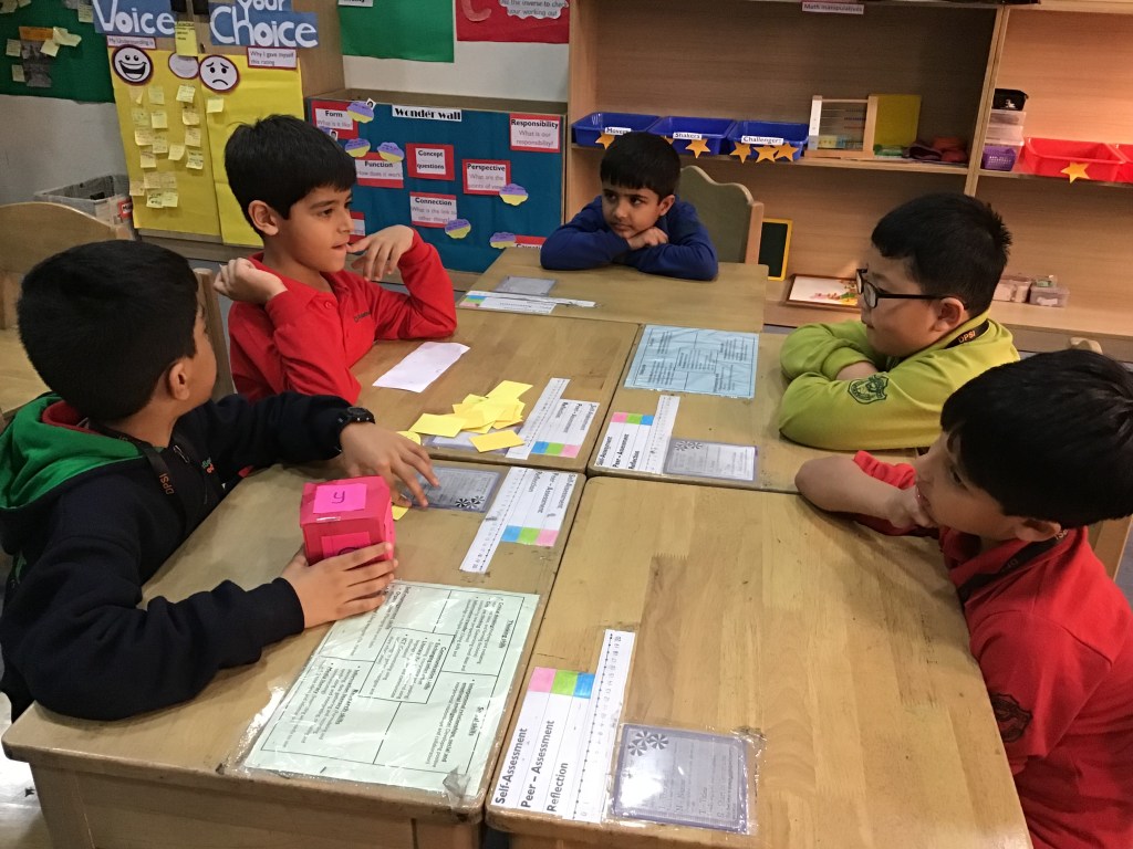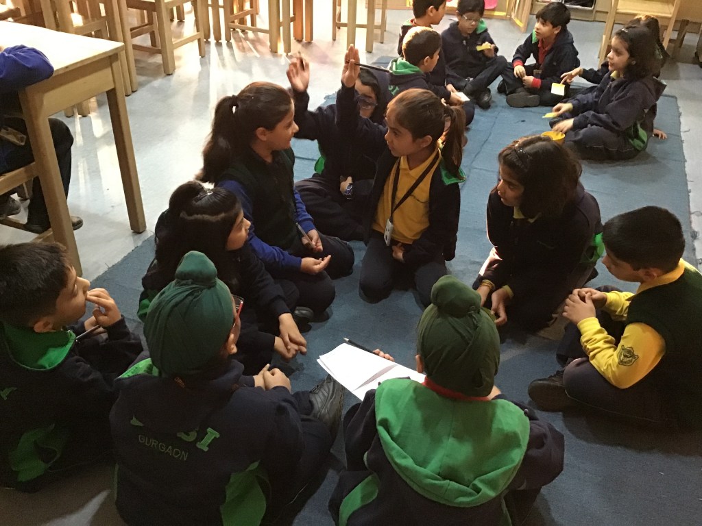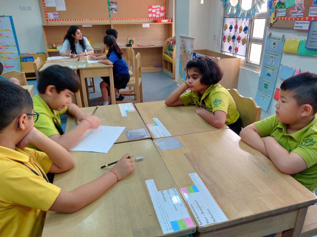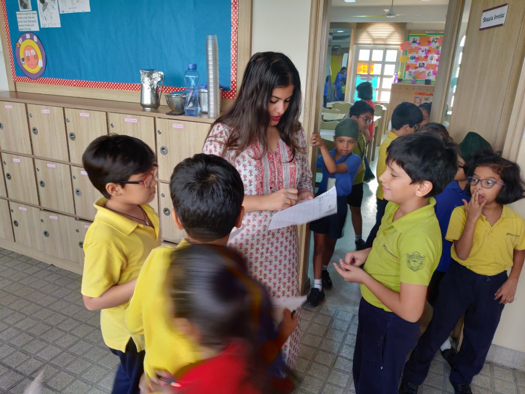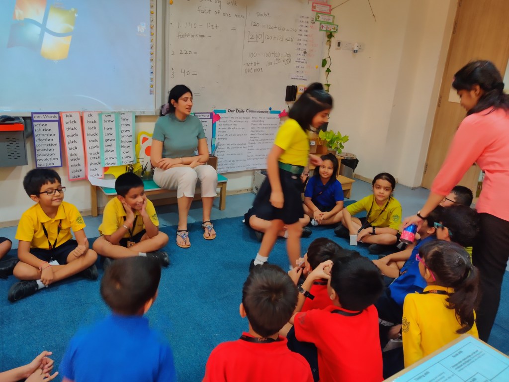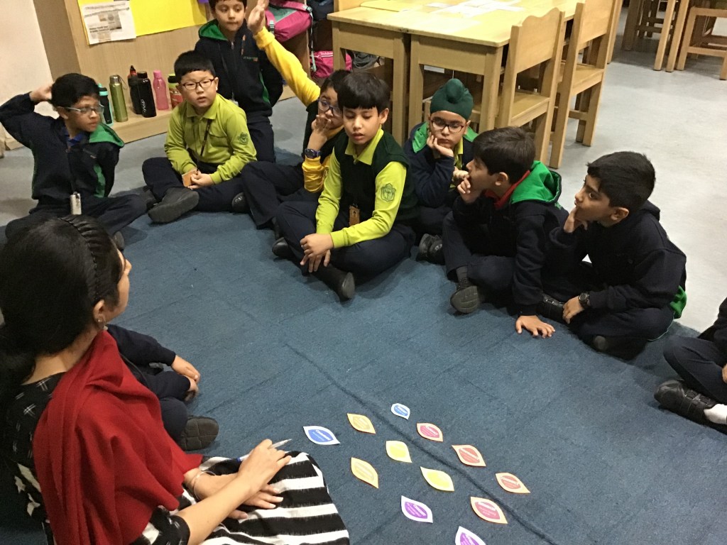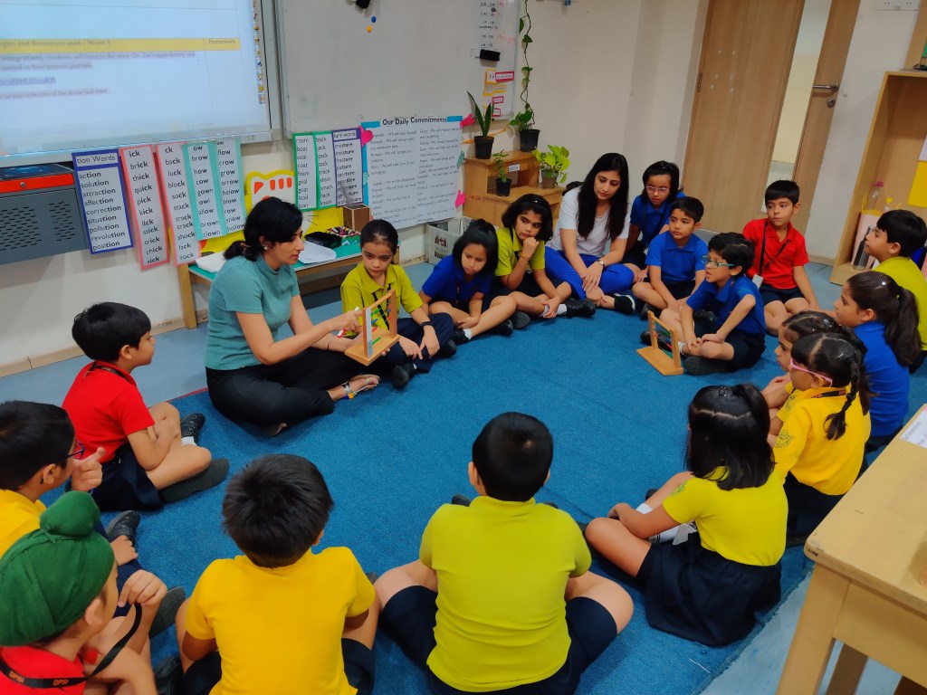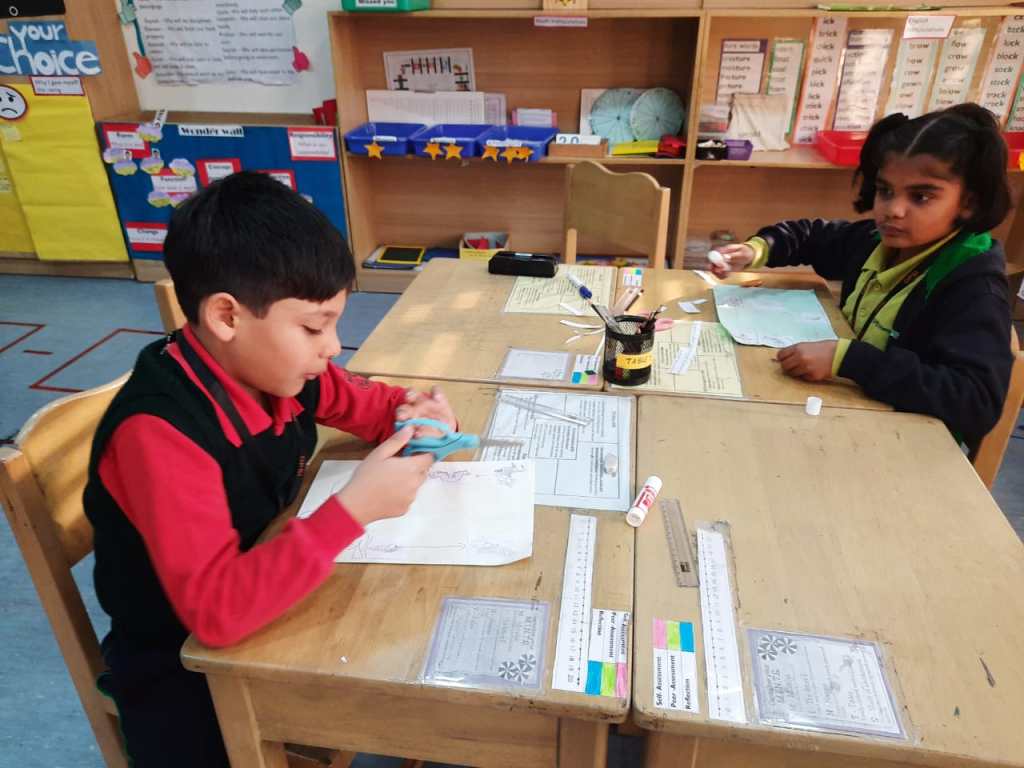 Students were introduced to shapes and their properties with the help of a mystery bag activity and they recorded their observations using ‘think-pair-share’ visible thinking routine.