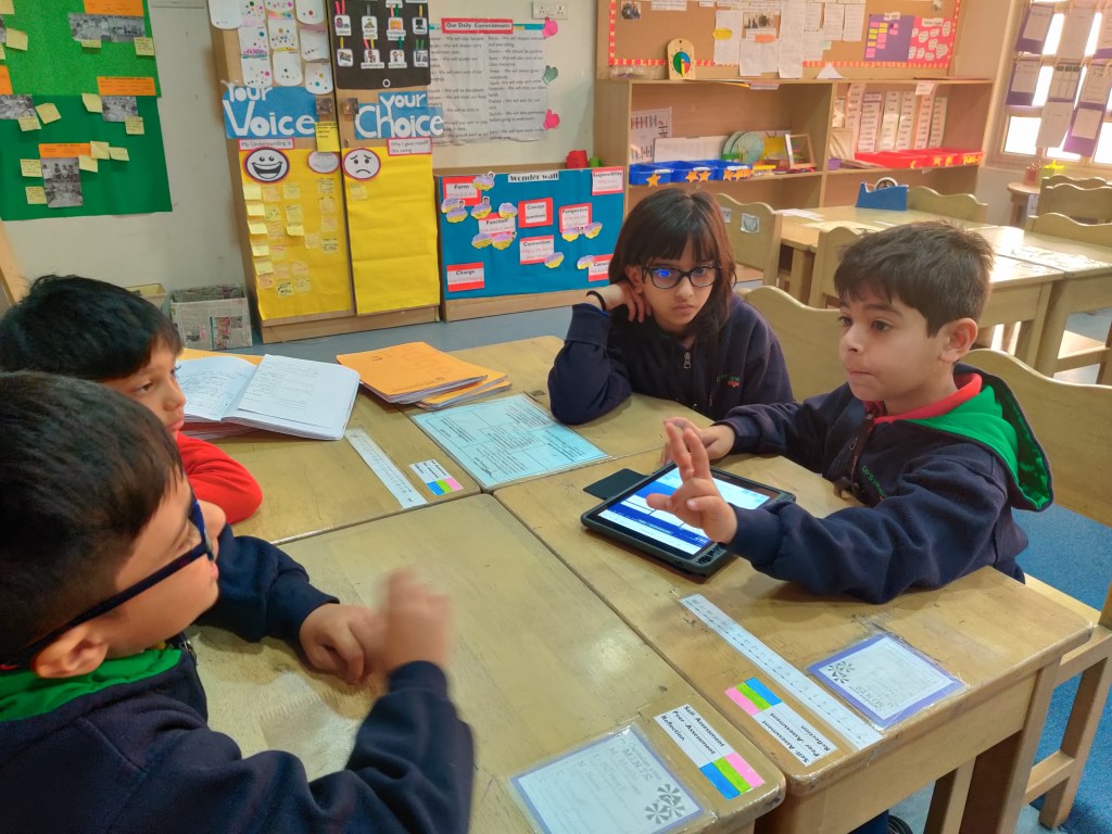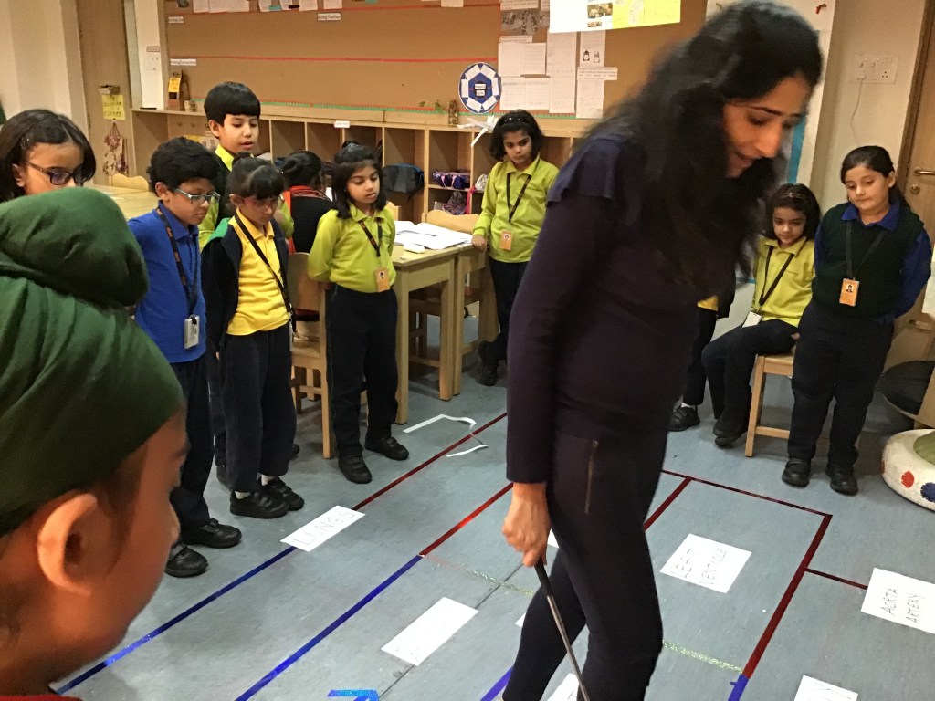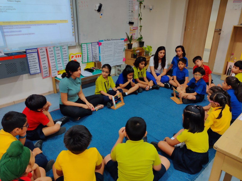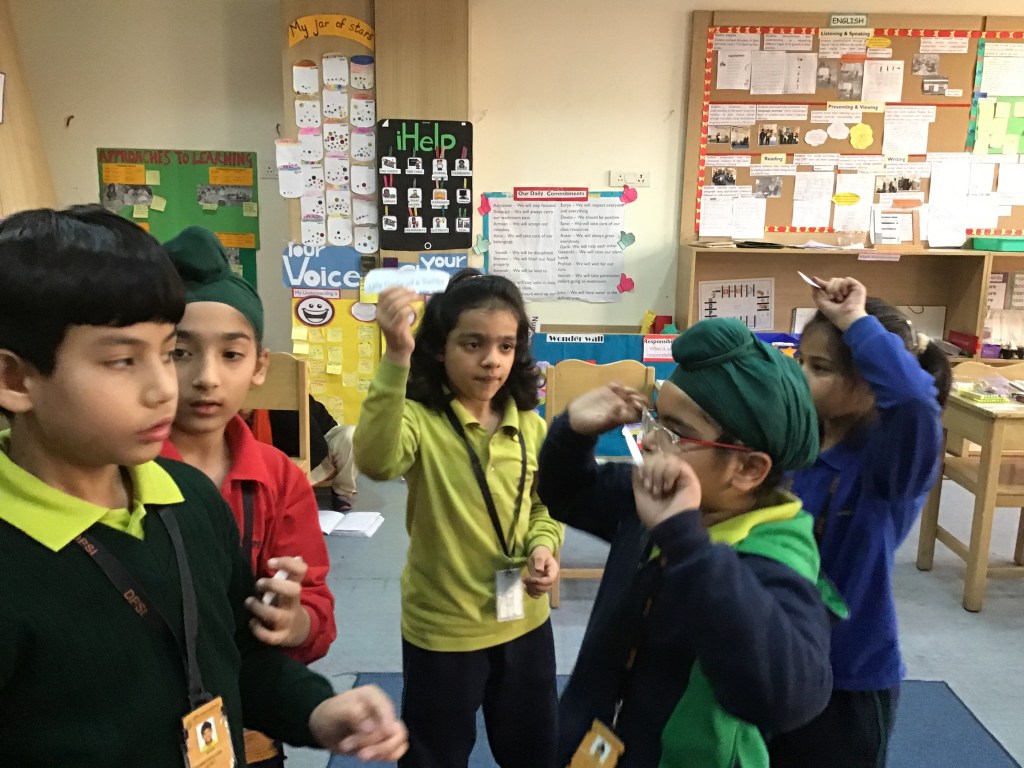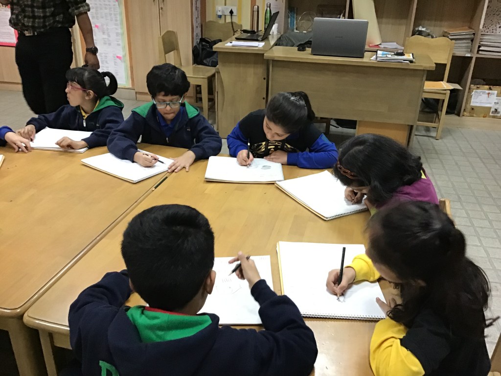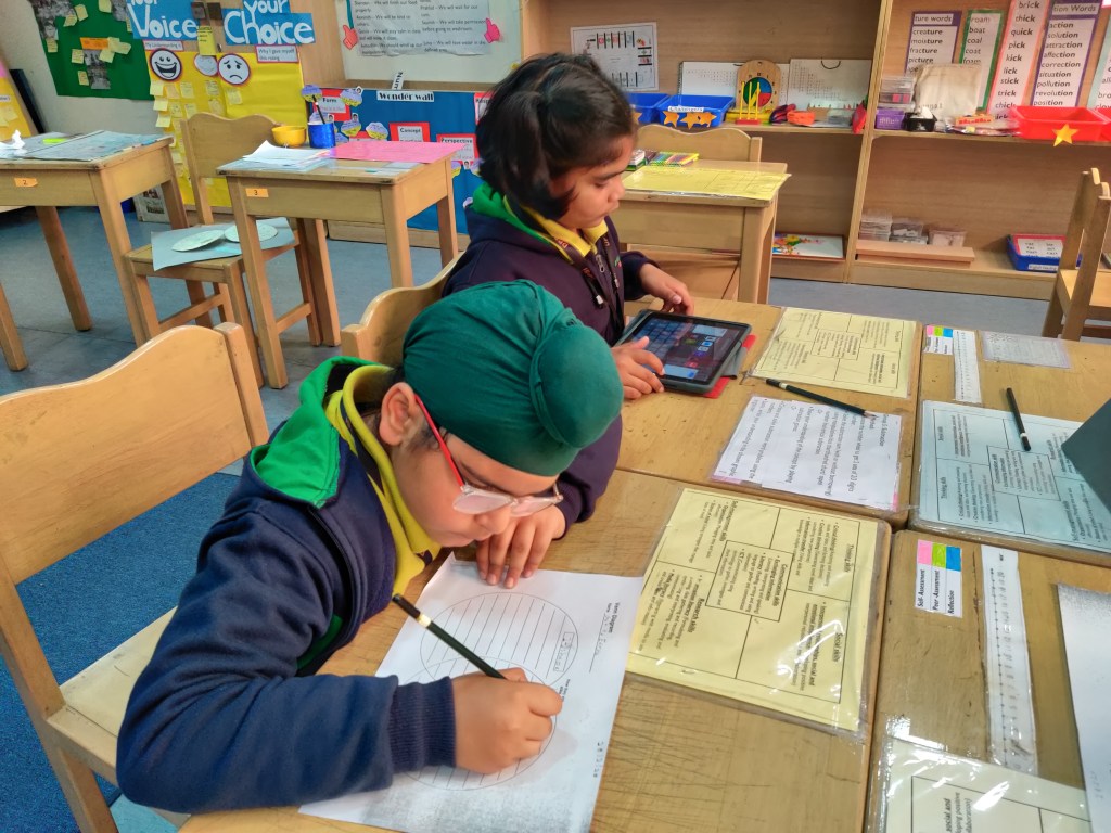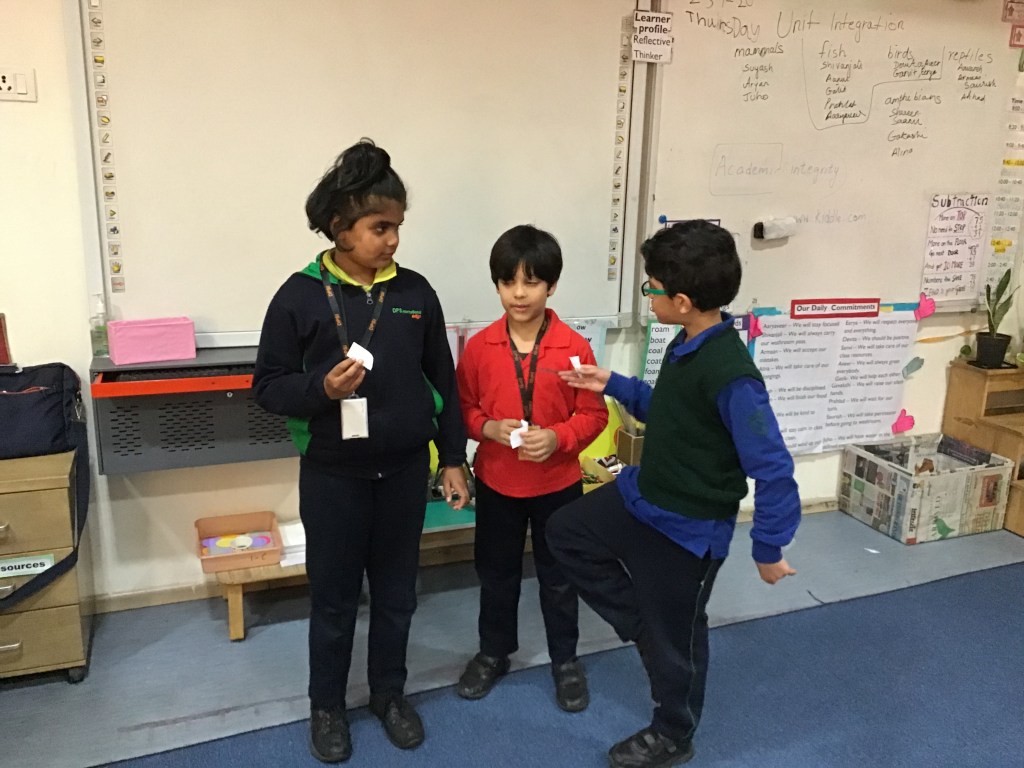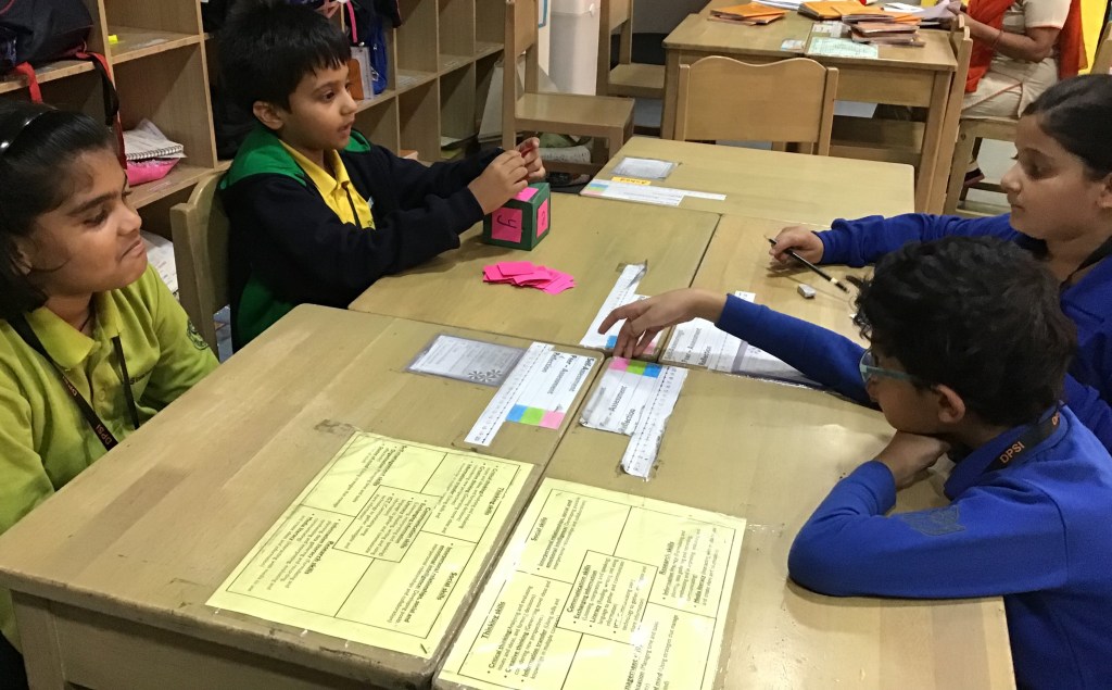 Students were introduced to shapes and their properties with the help of a mystery bag activity and they recorded their observations using ‘think-pair-share’ visible thinking routine.