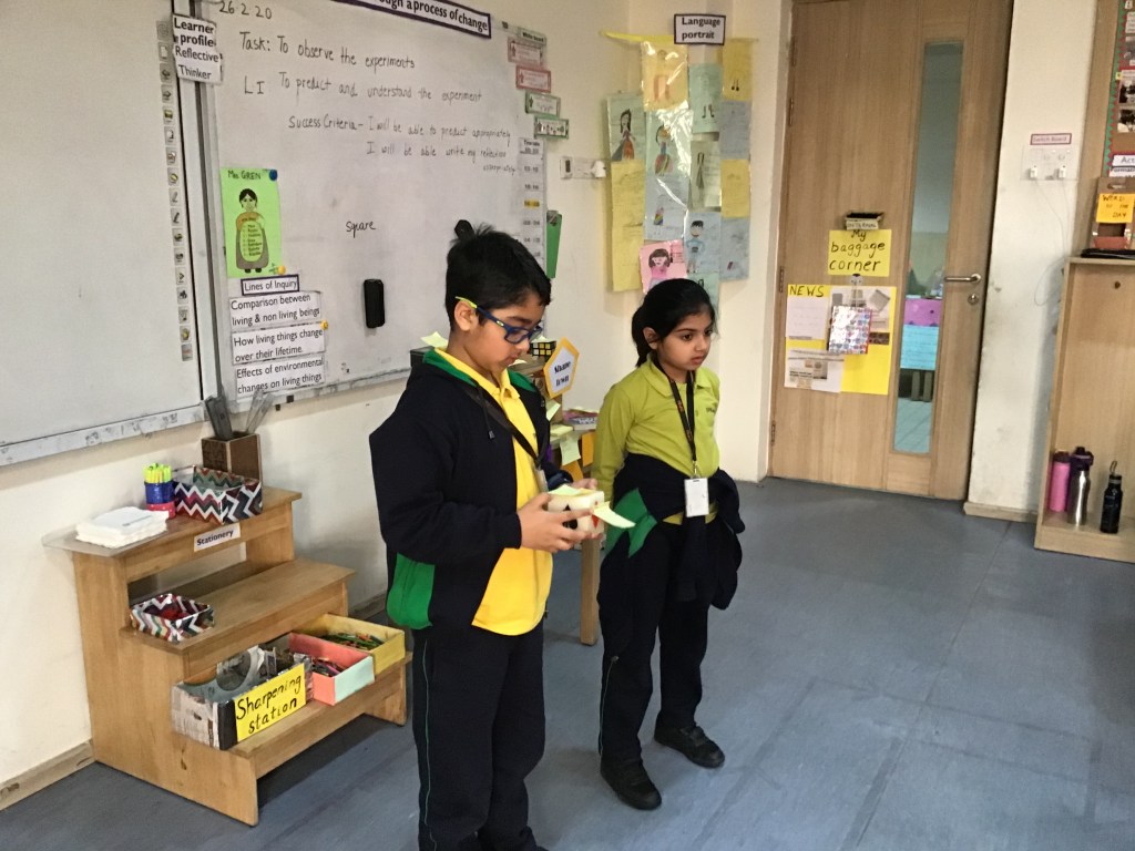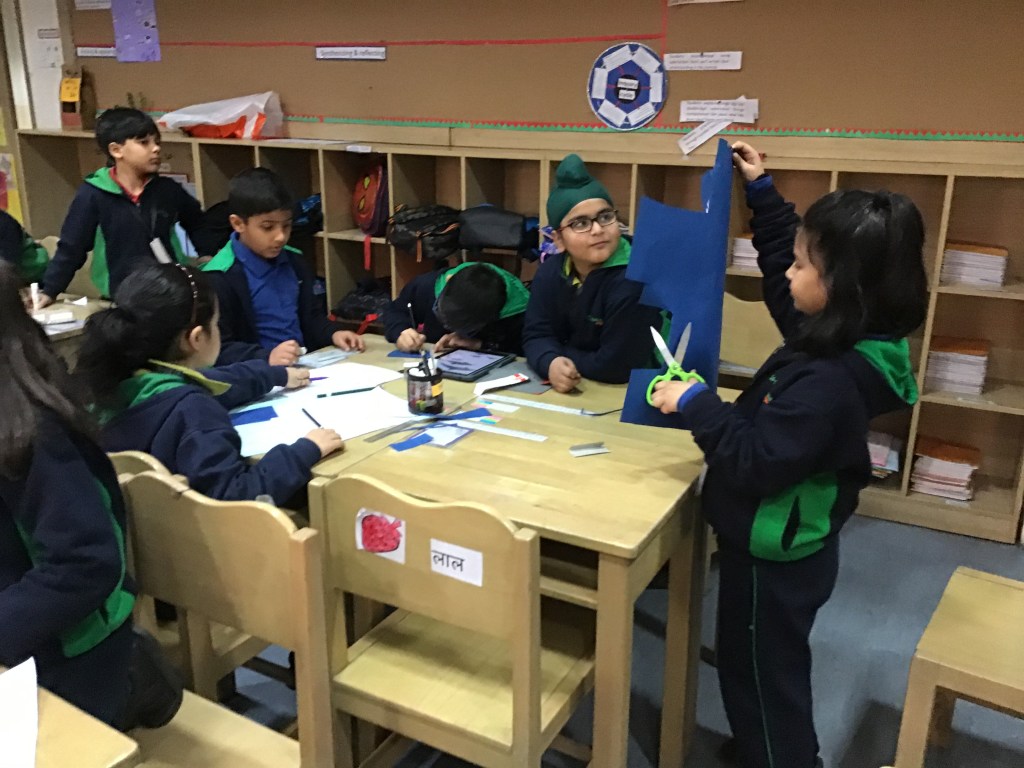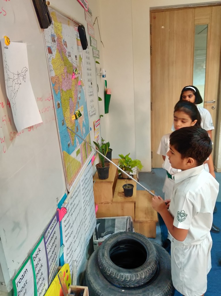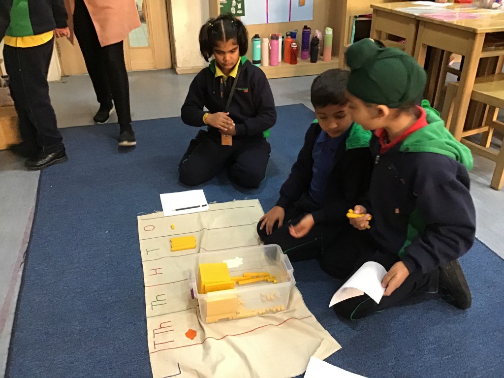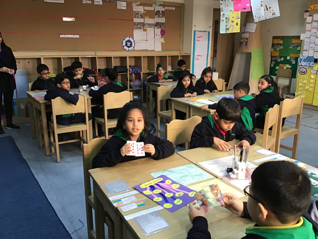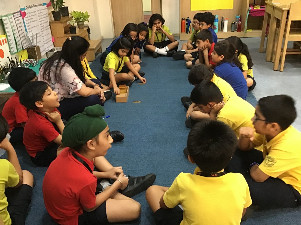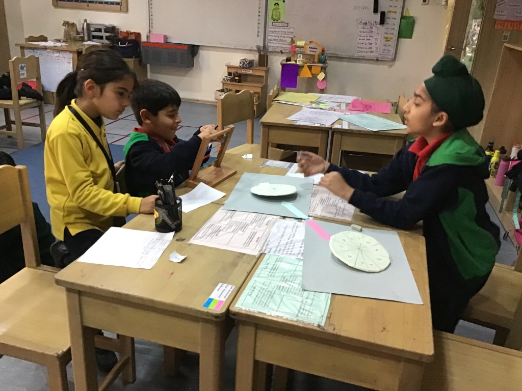 Students were introduced to shapes and their properties with the help of a mystery bag activity and they recorded their observations using ‘think-pair-share’ visible thinking routine.