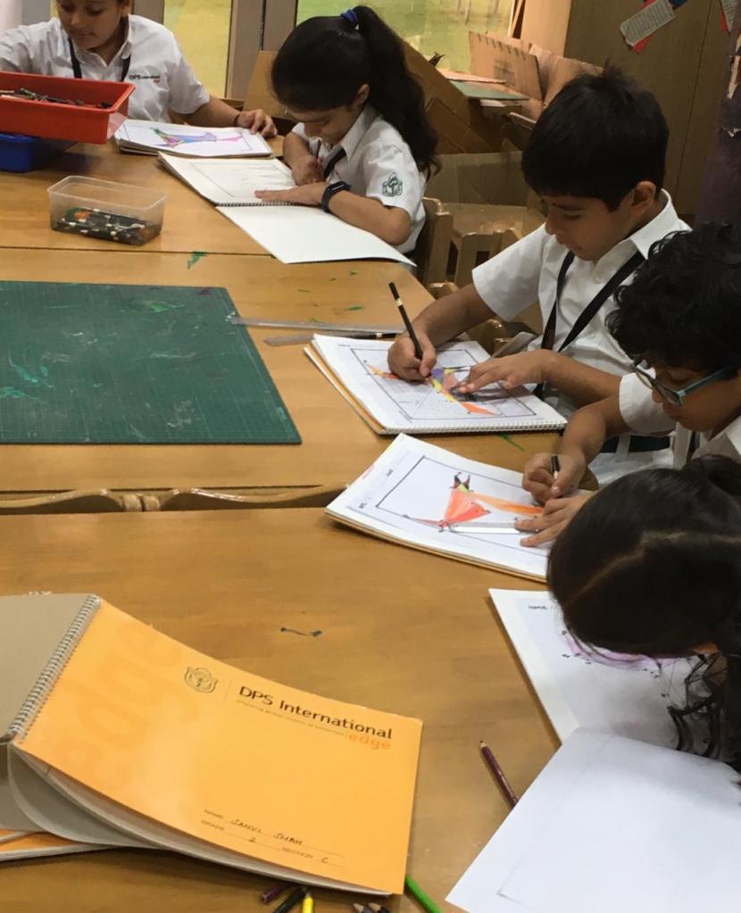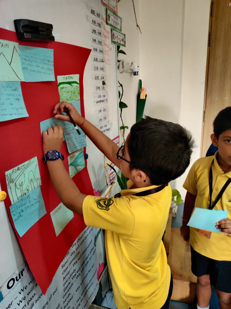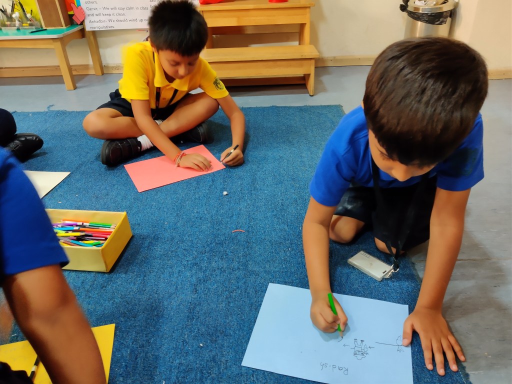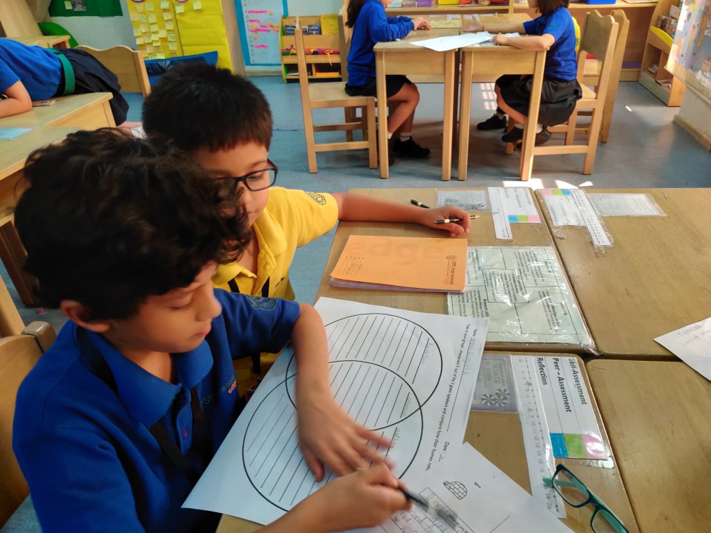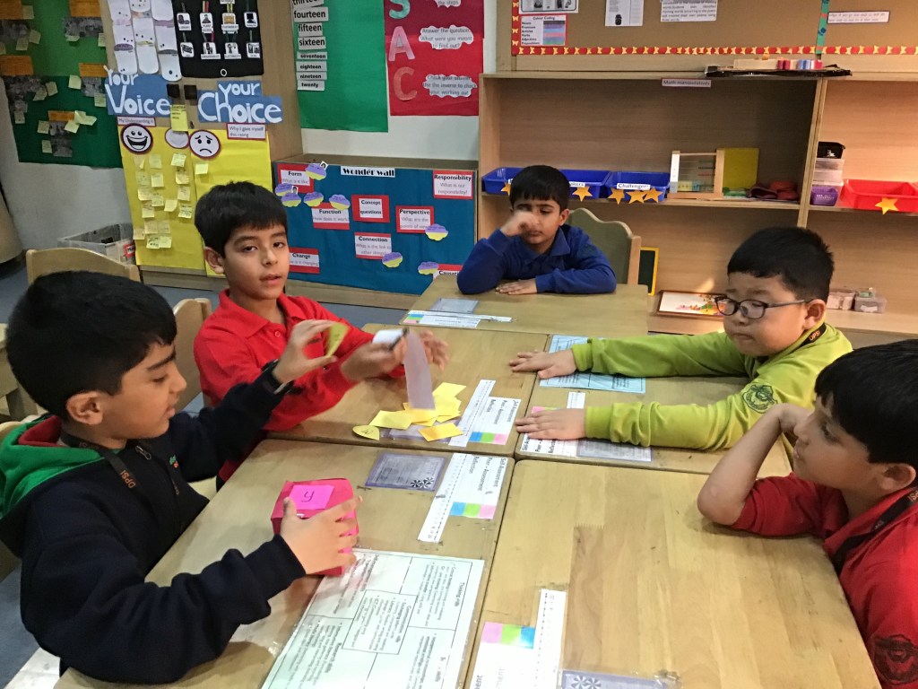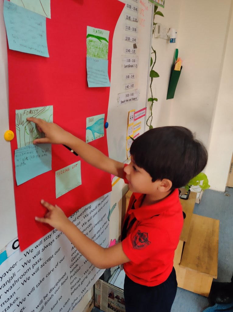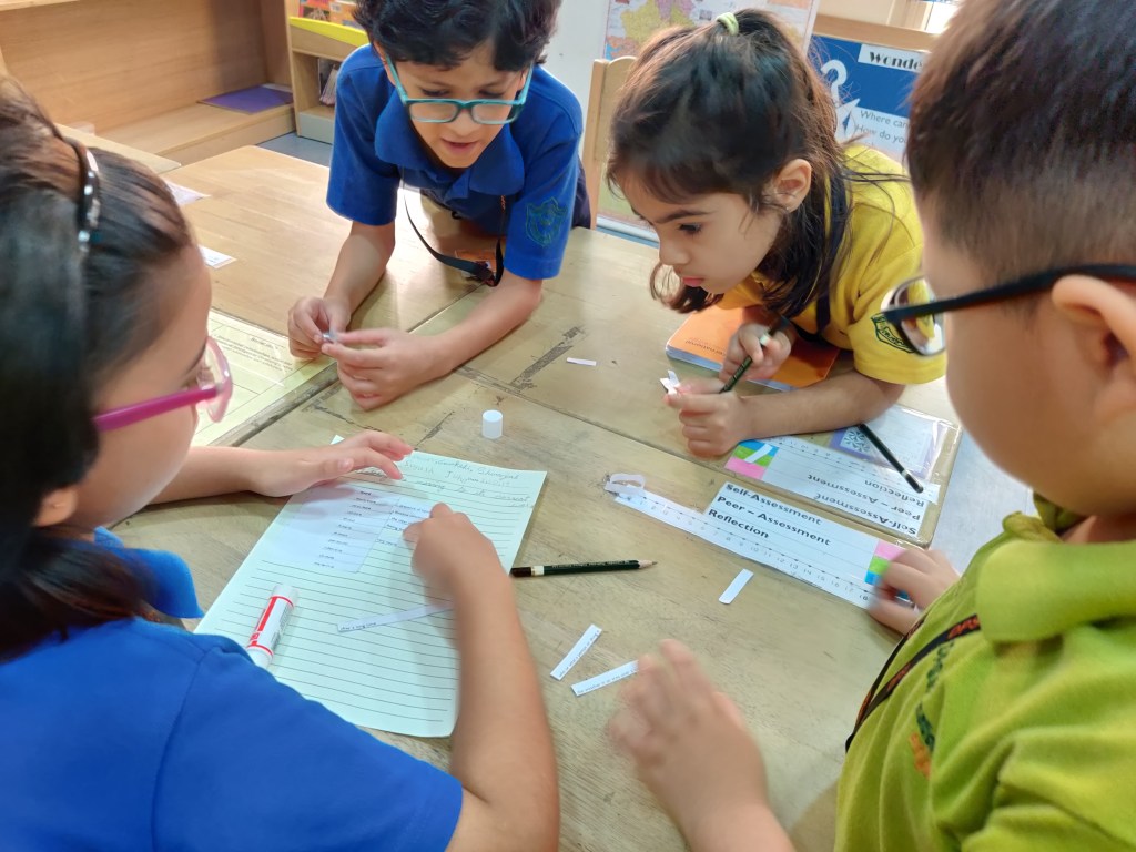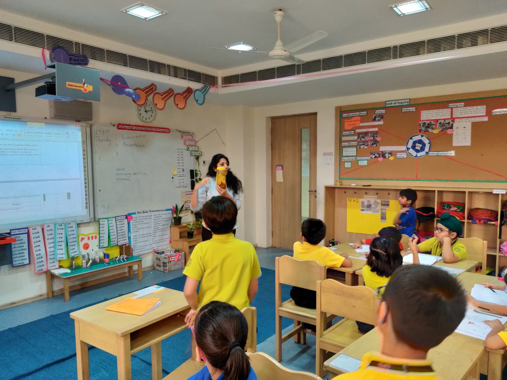 Students were introduced to shapes and their properties with the help of a mystery bag activity and they recorded their observations using ‘think-pair-share’ visible thinking routine.