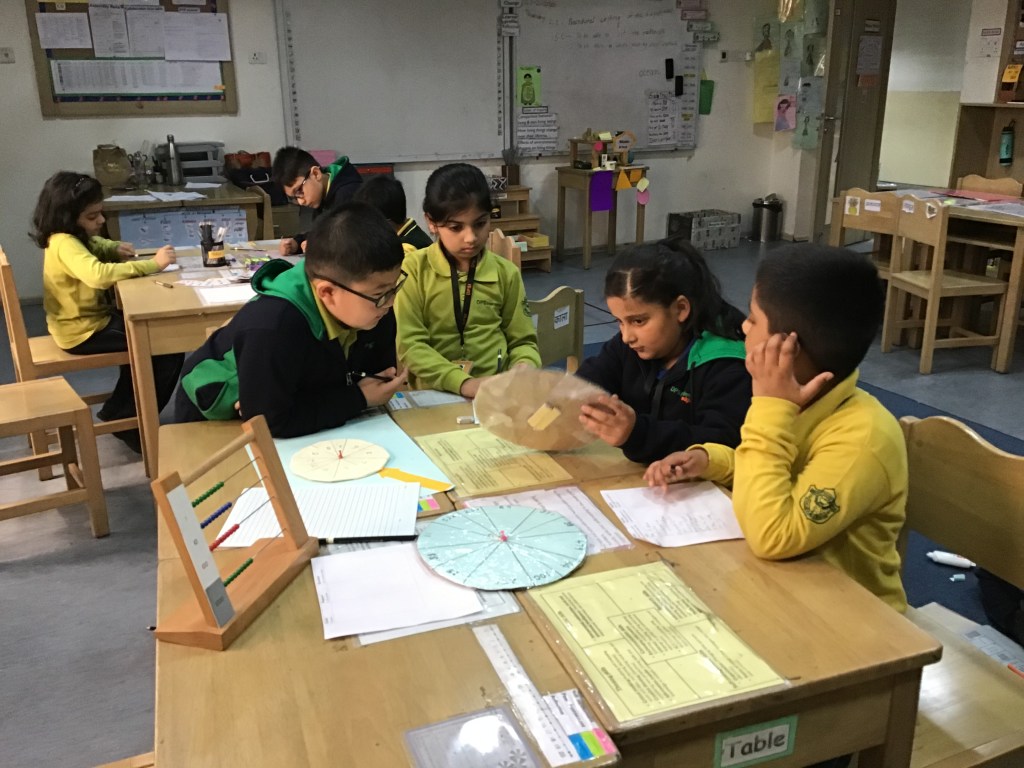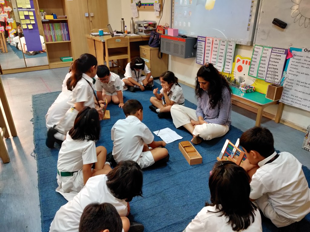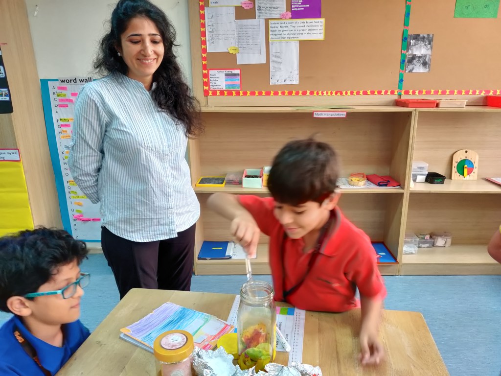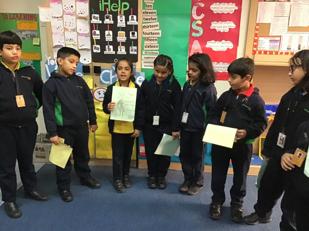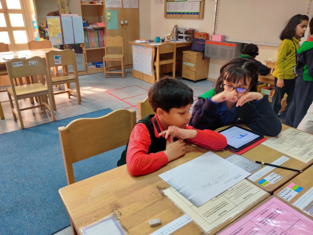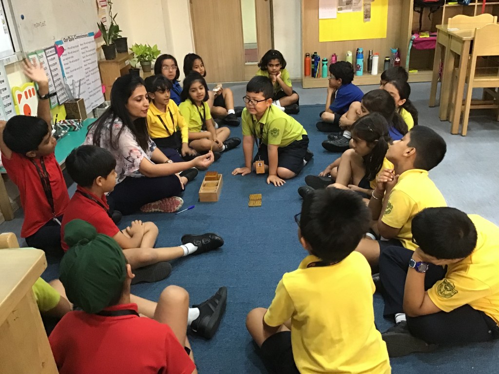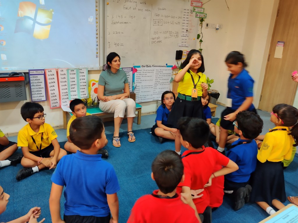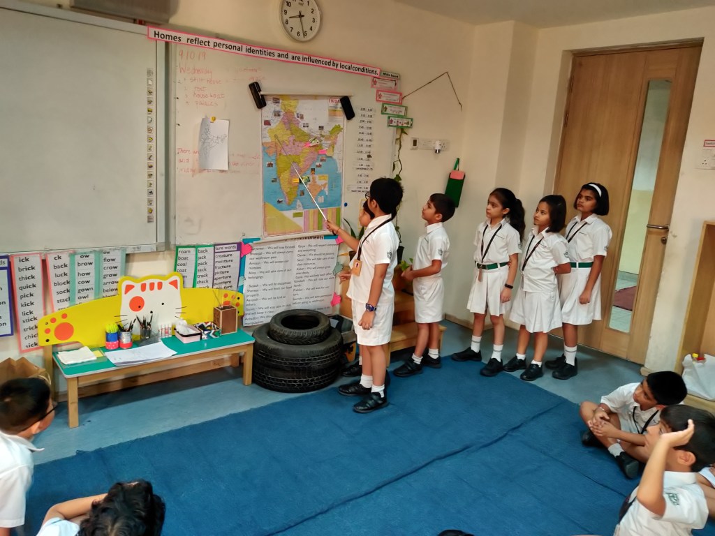 Students were introduced to shapes and their properties with the help of a mystery bag activity and they recorded their observations using ‘think-pair-share’ visible thinking routine.