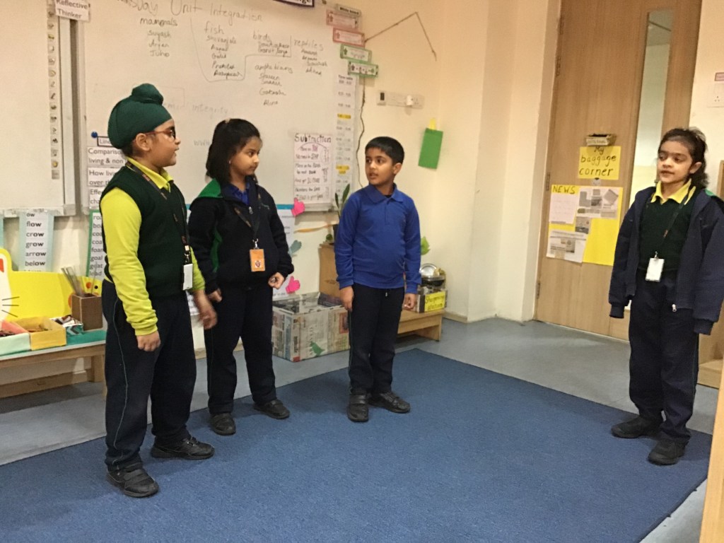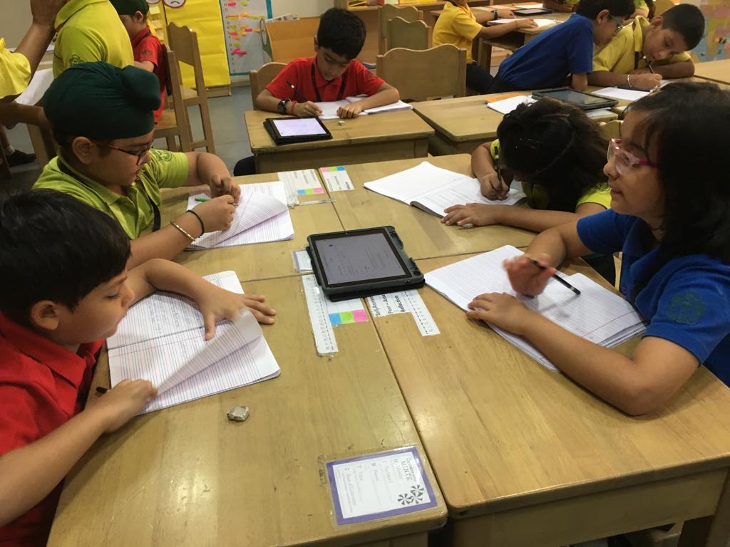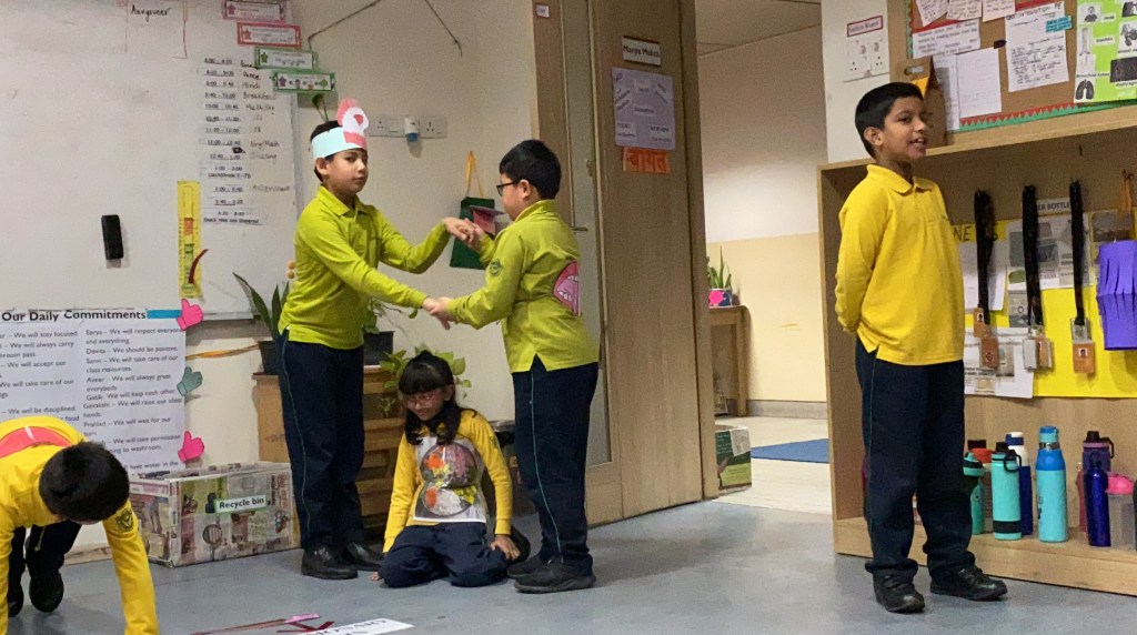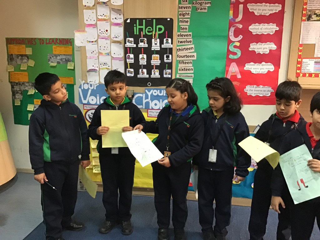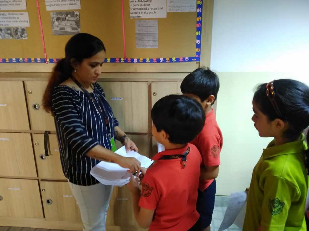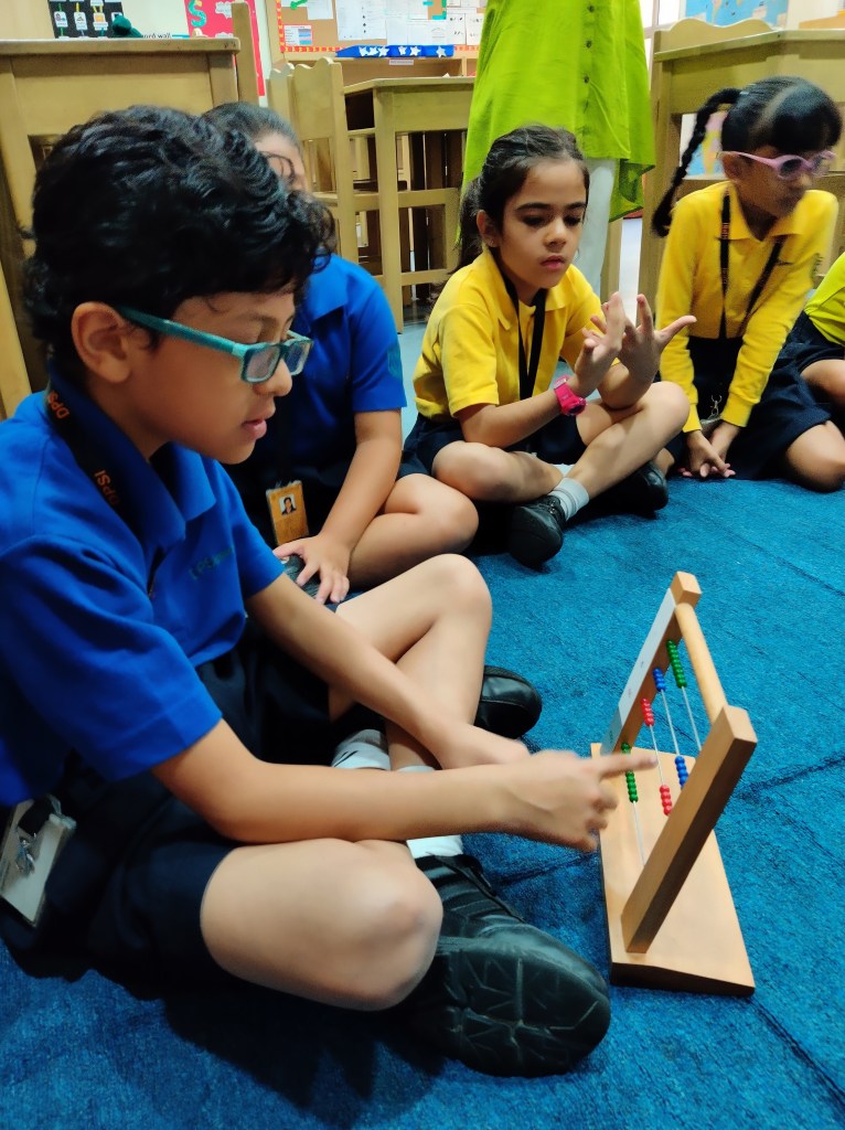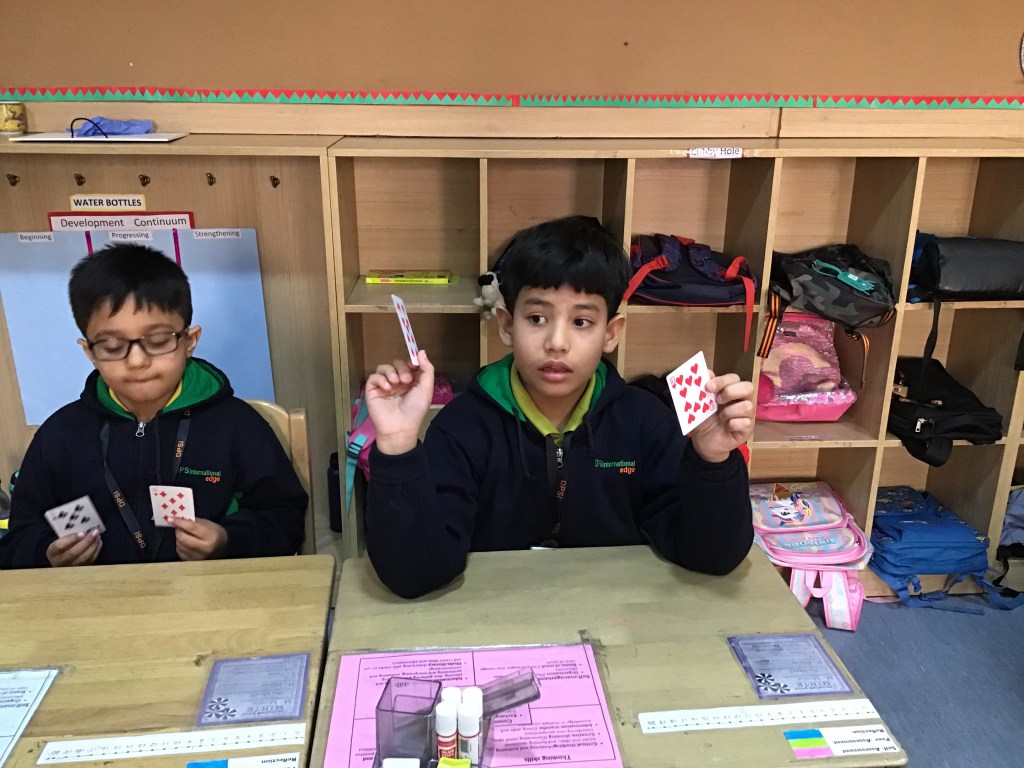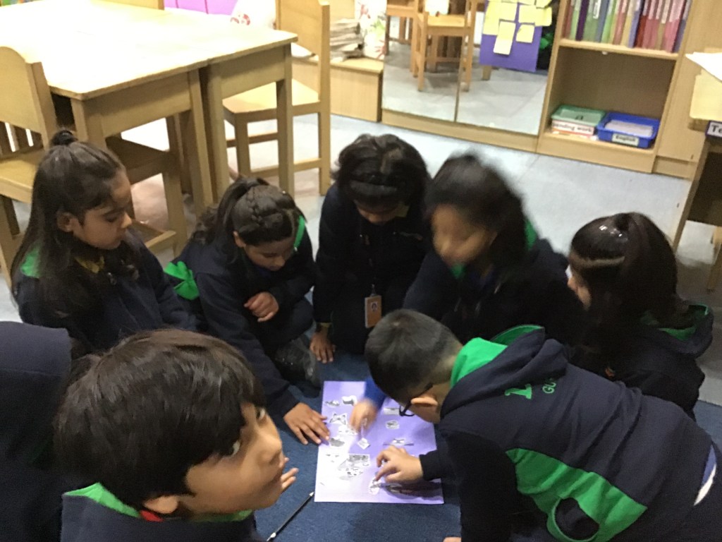 Students were introduced to shapes and their properties with the help of a mystery bag activity and they recorded their observations using ‘think-pair-share’ visible thinking routine.