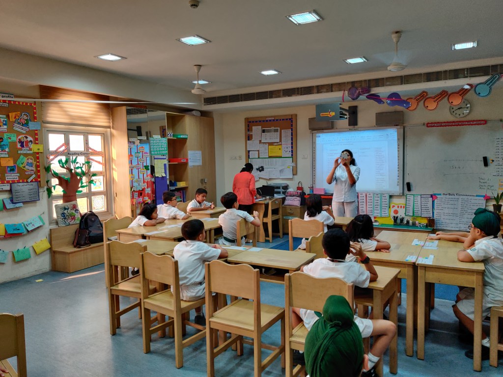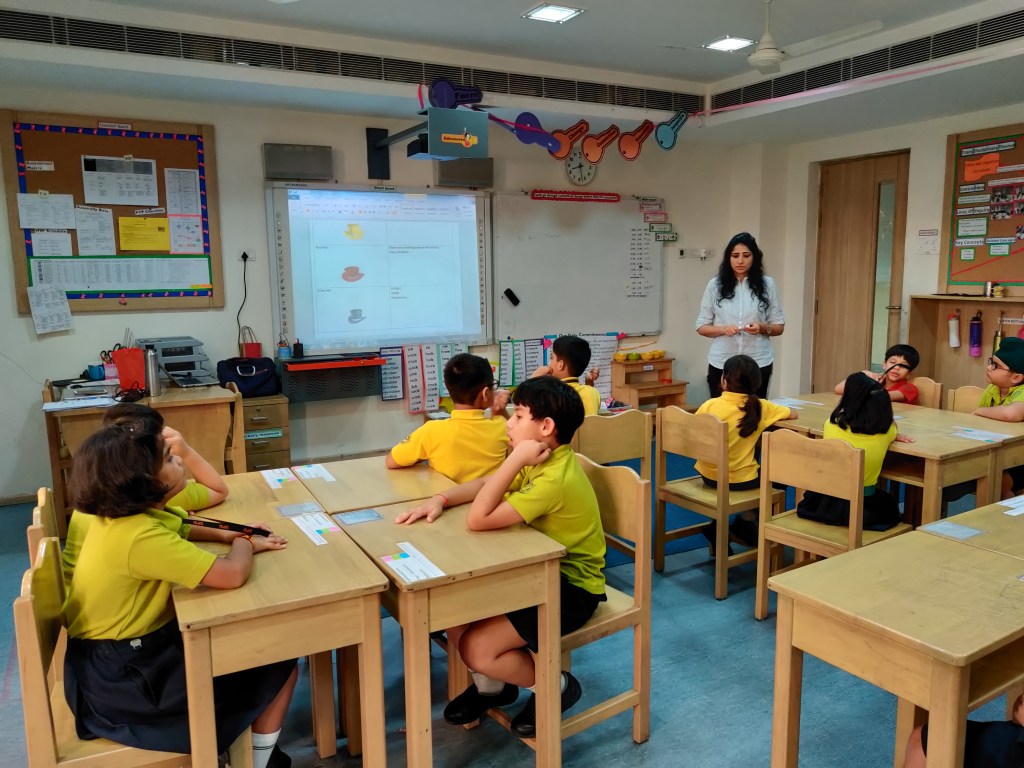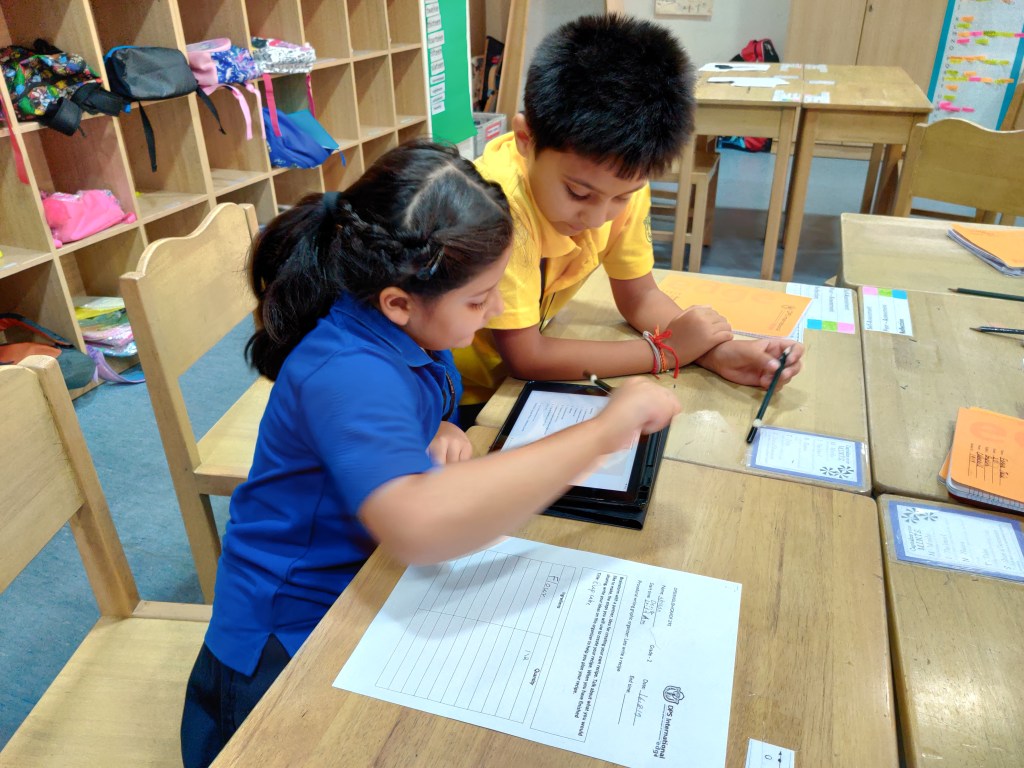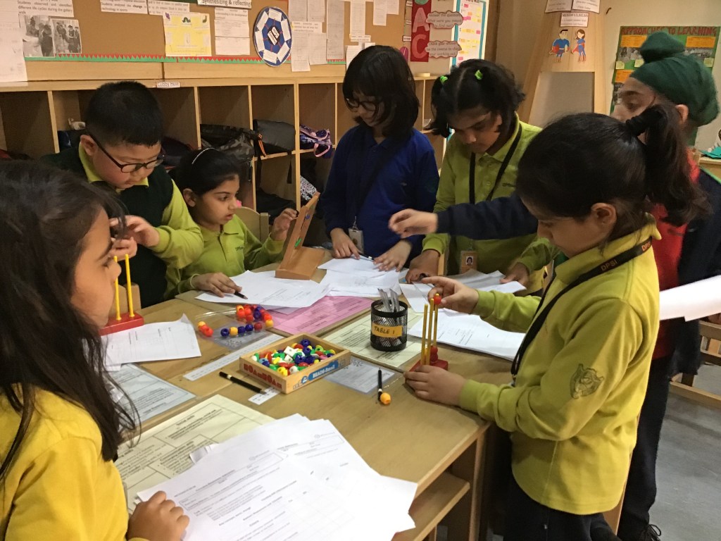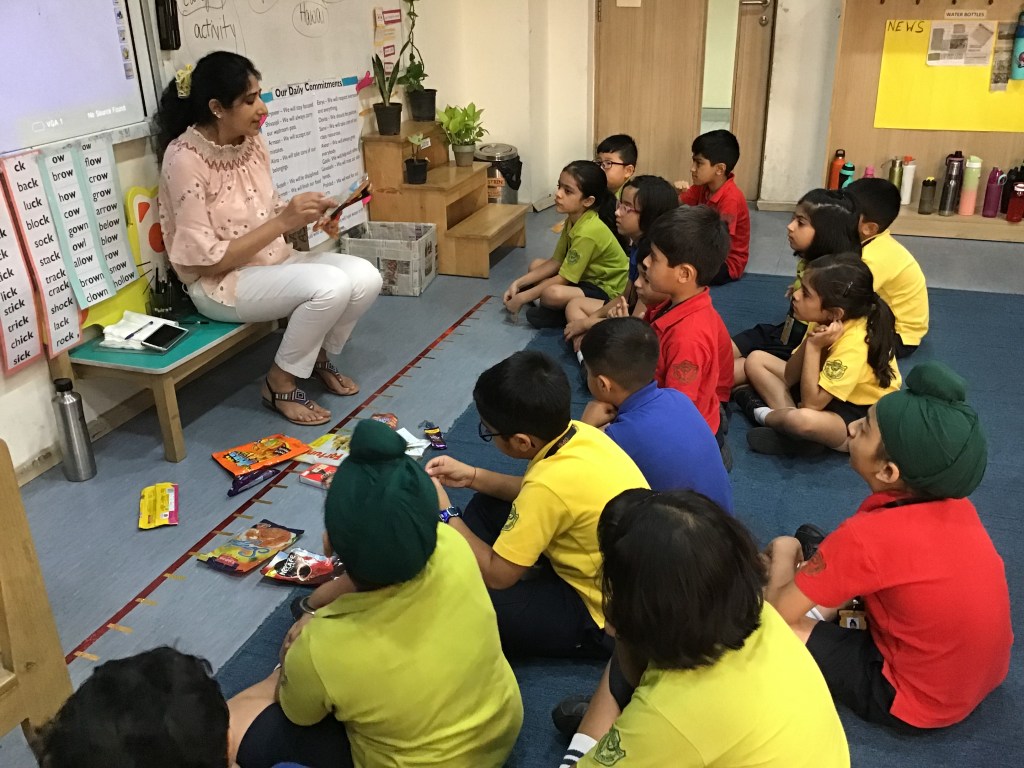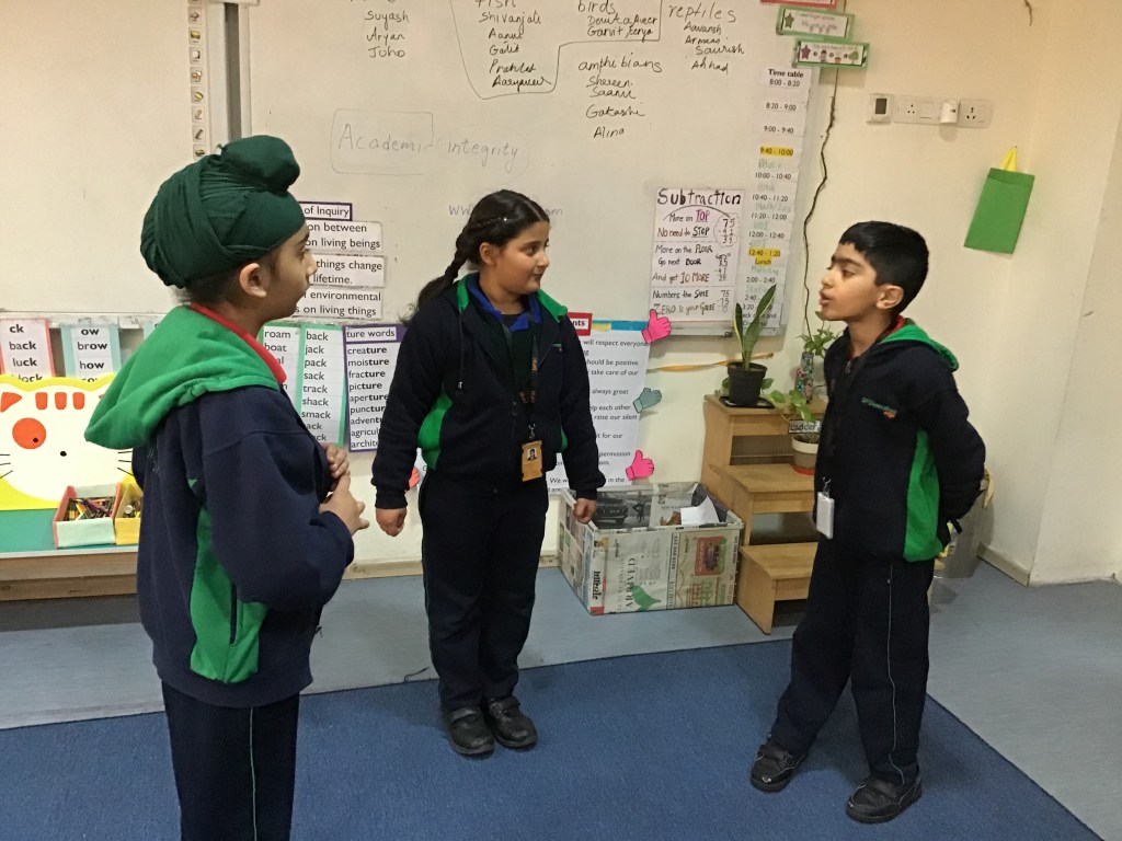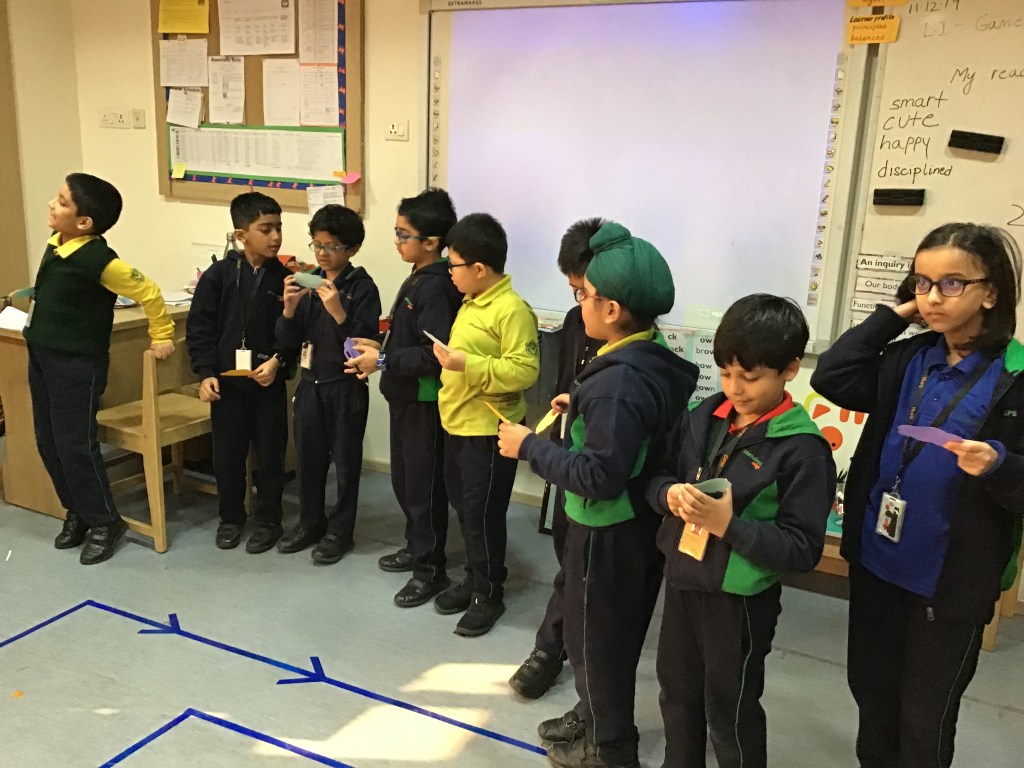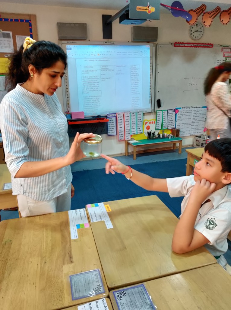 Students were introduced to shapes and their properties with the help of a mystery bag activity and they recorded their observations using ‘think-pair-share’ visible thinking routine.