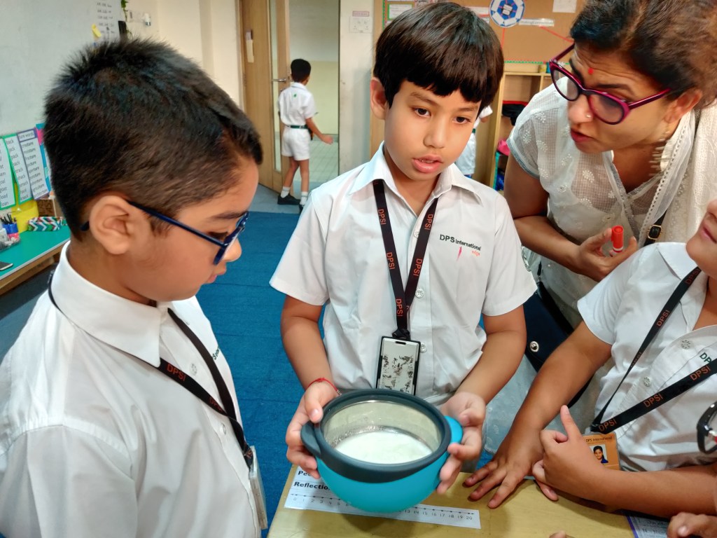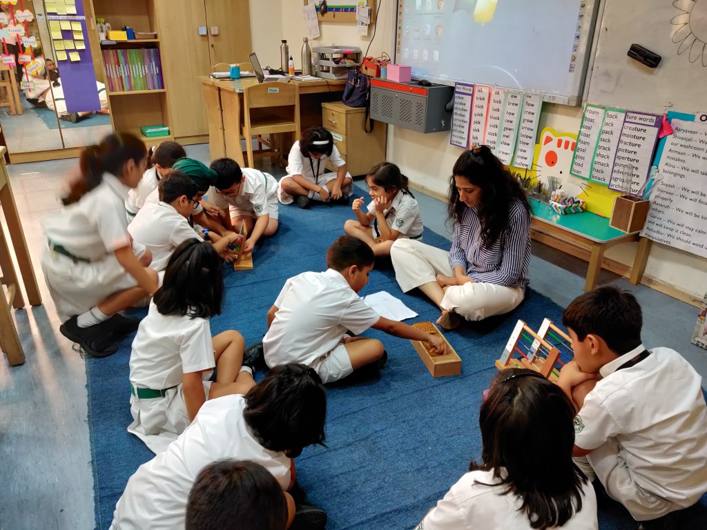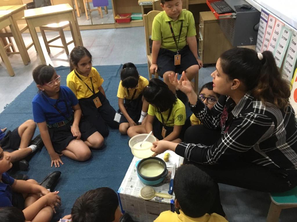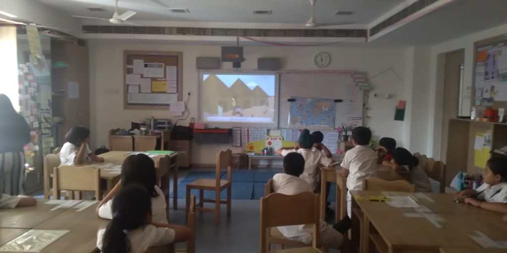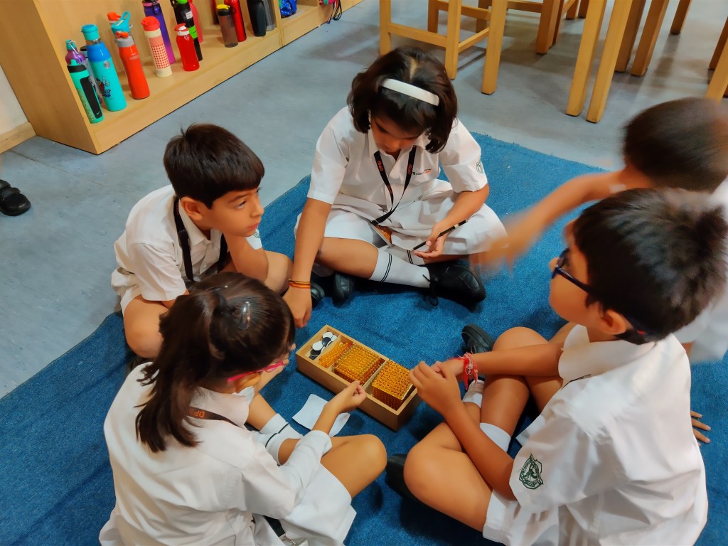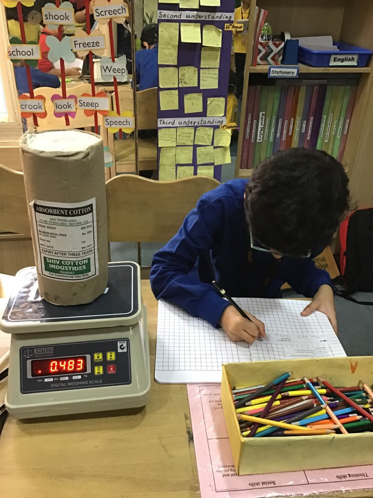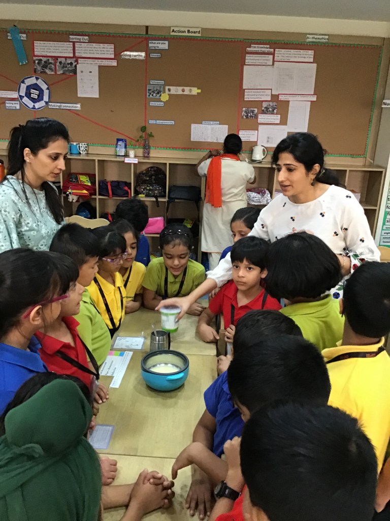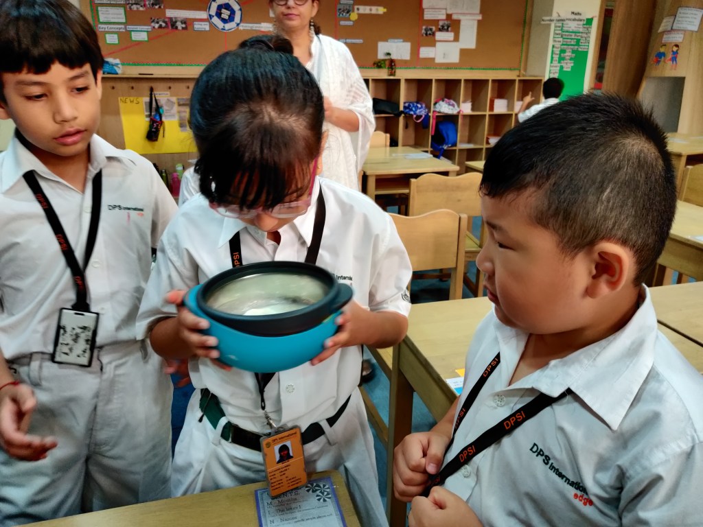 Students were introduced to shapes and their properties with the help of a mystery bag activity and they recorded their observations using ‘think-pair-share’ visible thinking routine.