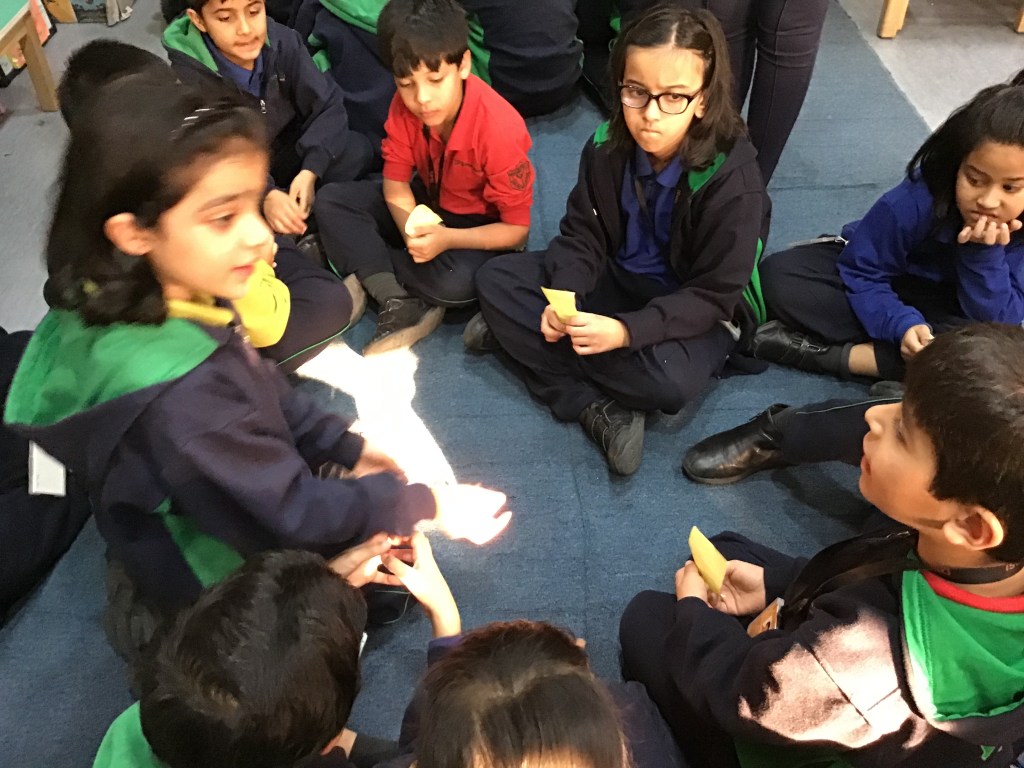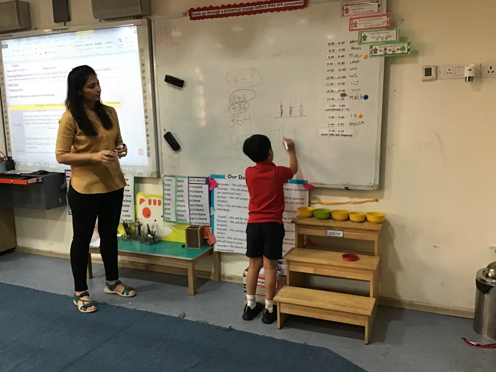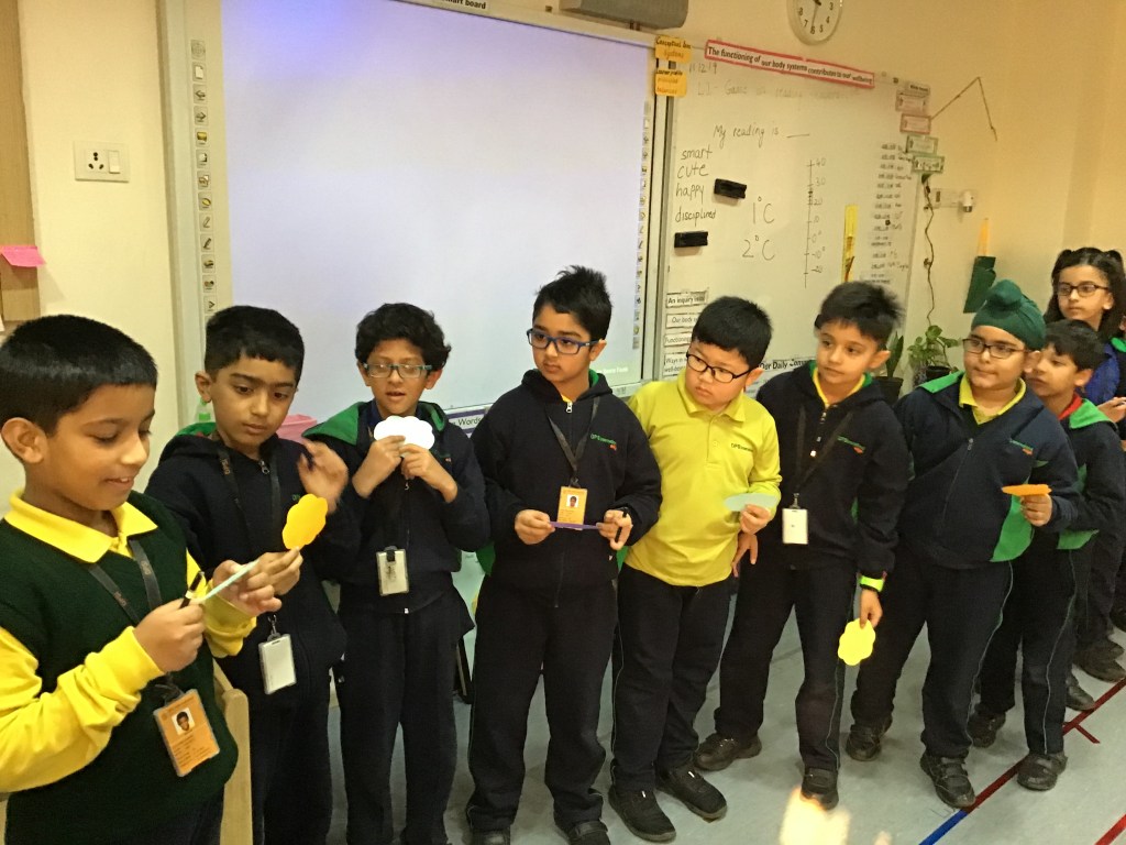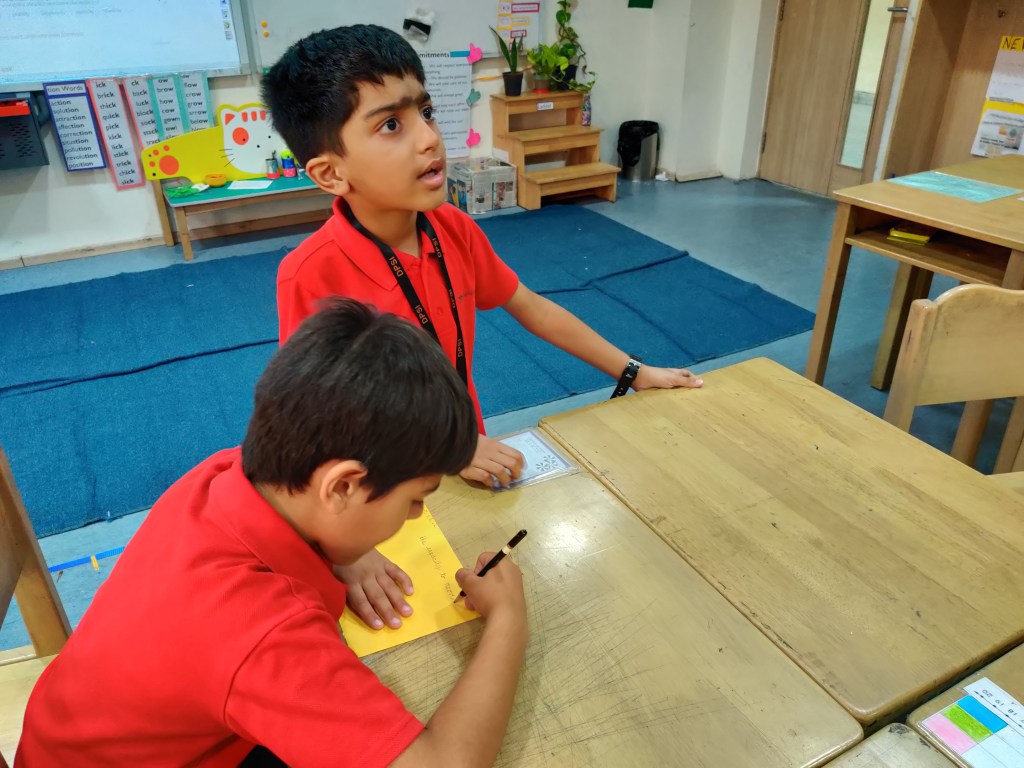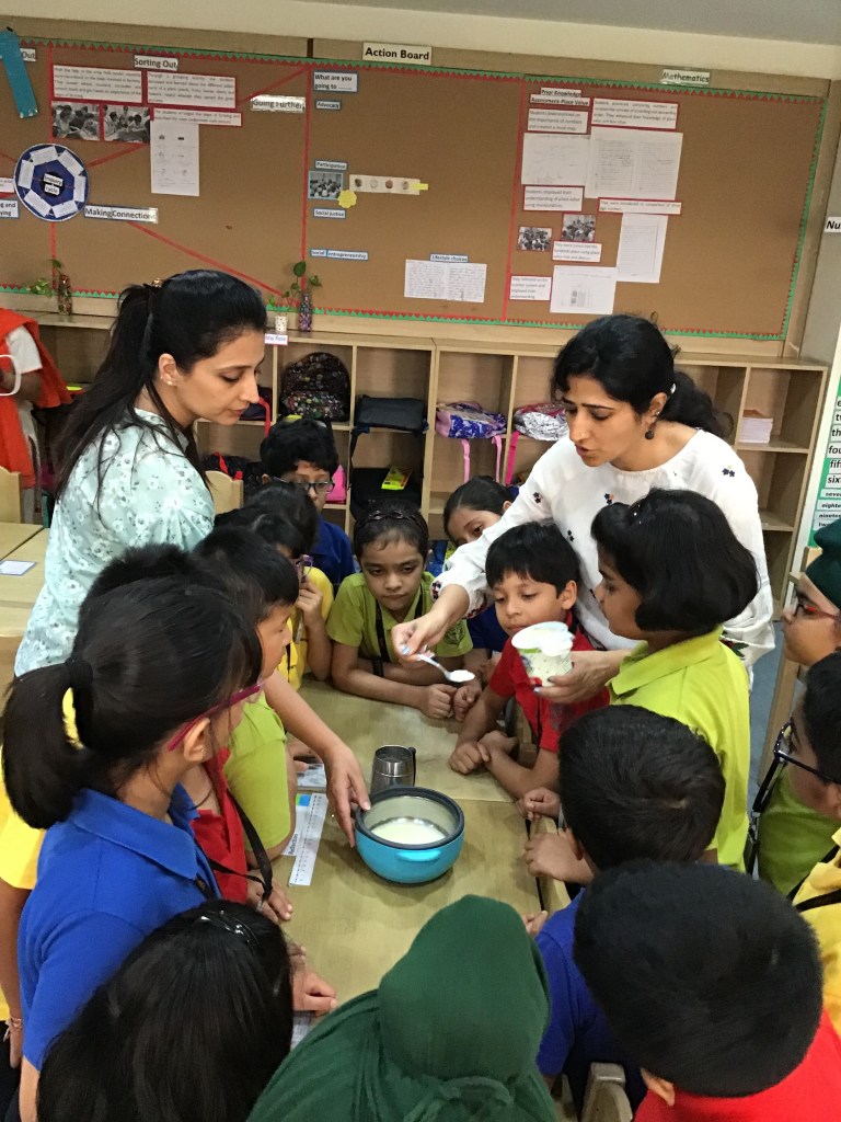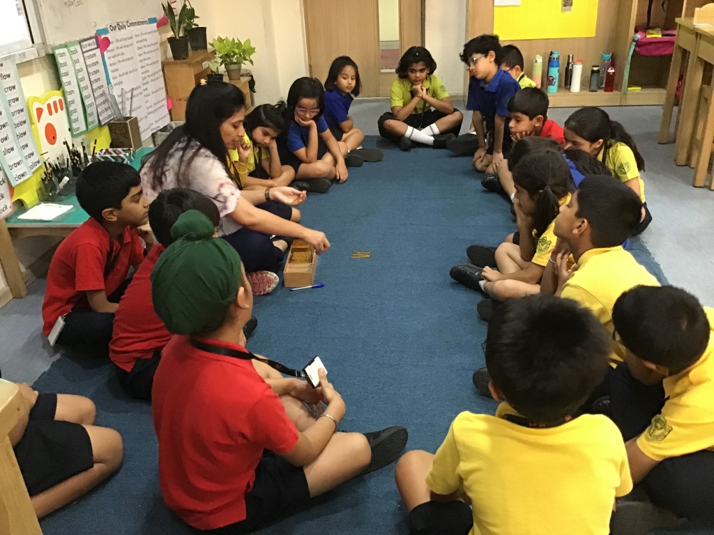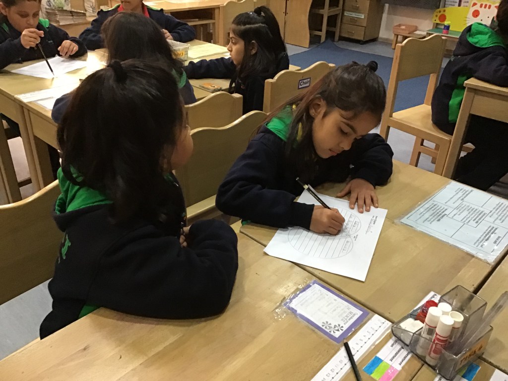 Students were introduced to shapes and their properties with the help of a mystery bag activity and they recorded their observations using ‘think-pair-share’ visible thinking routine.
