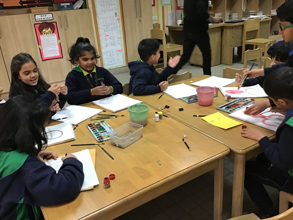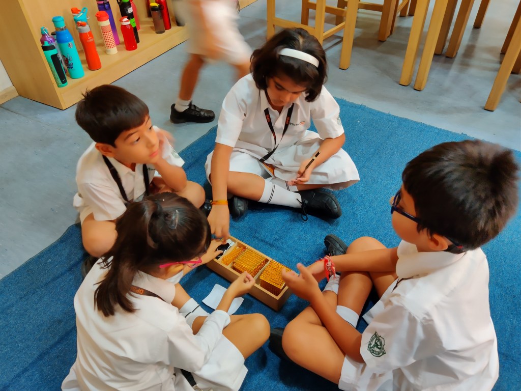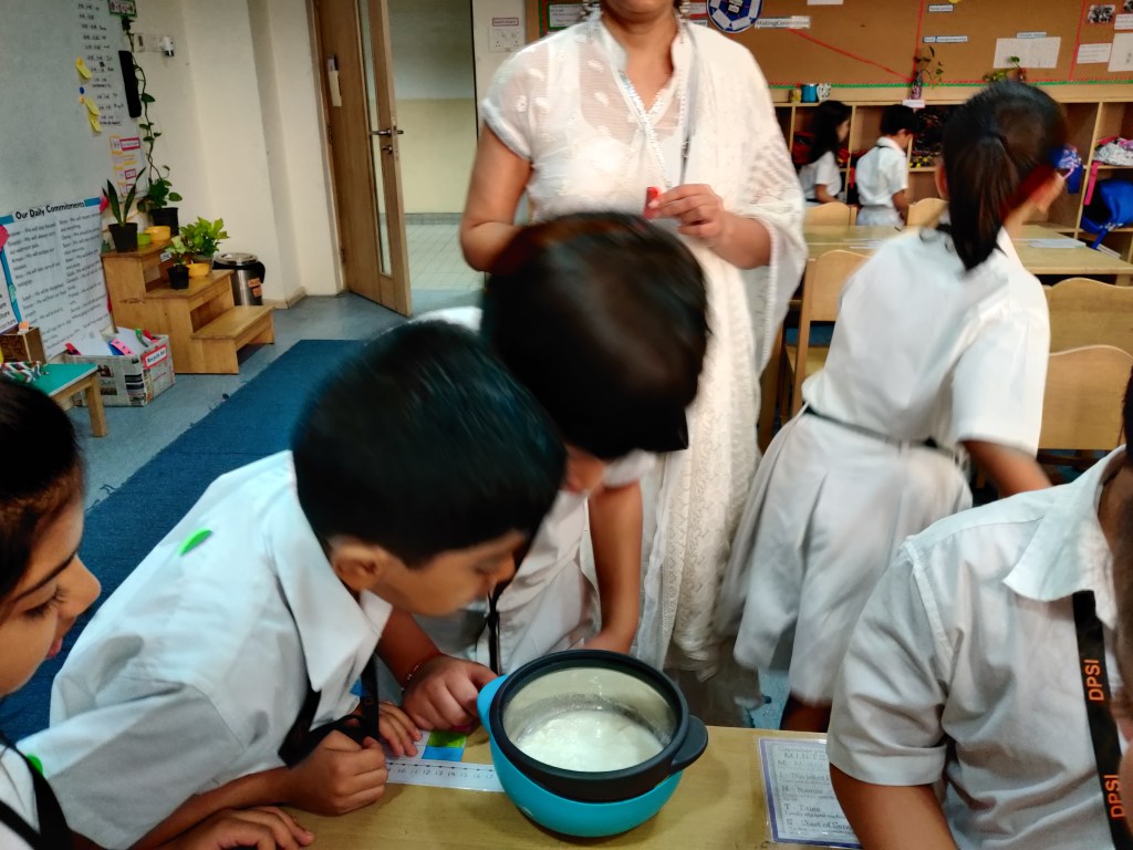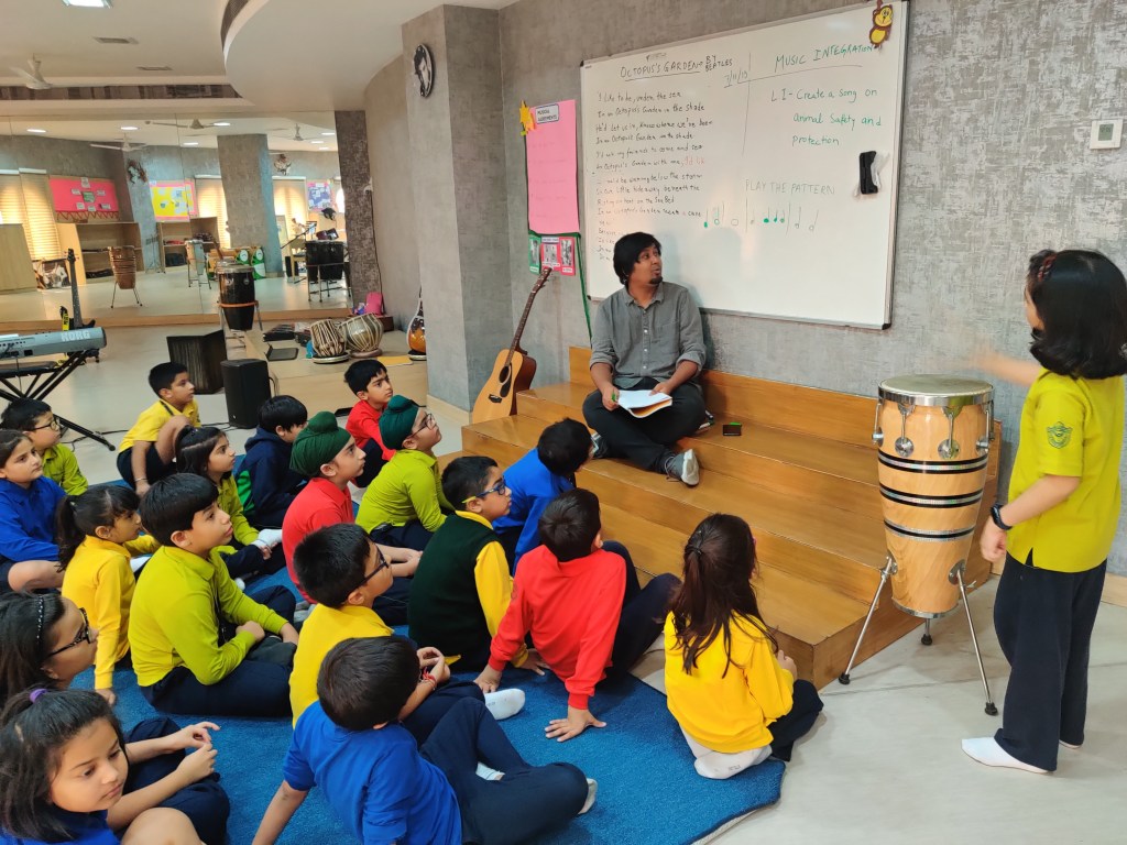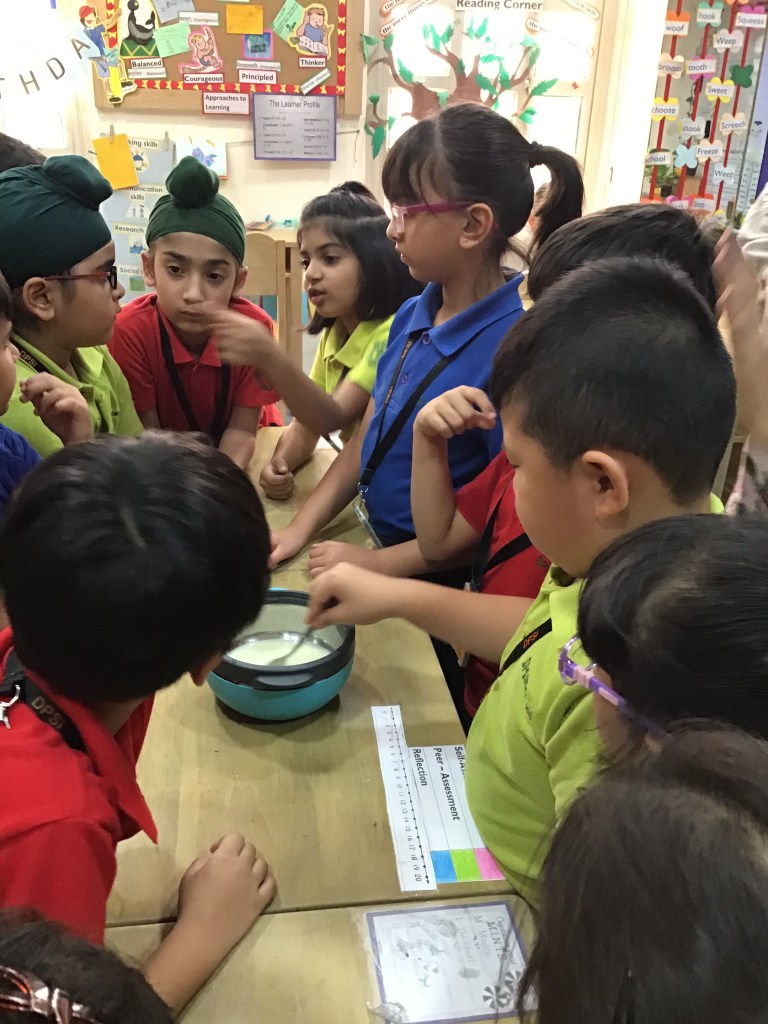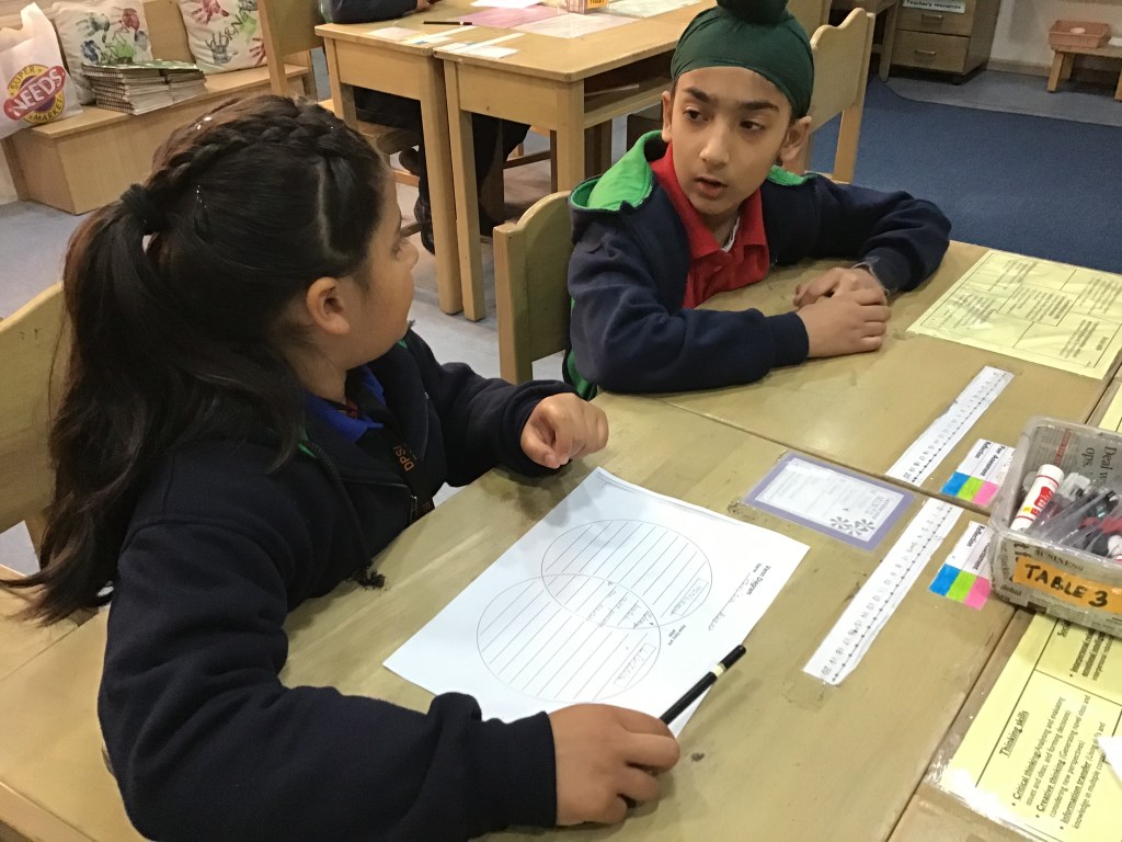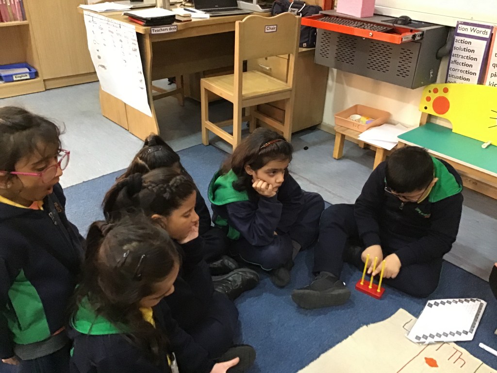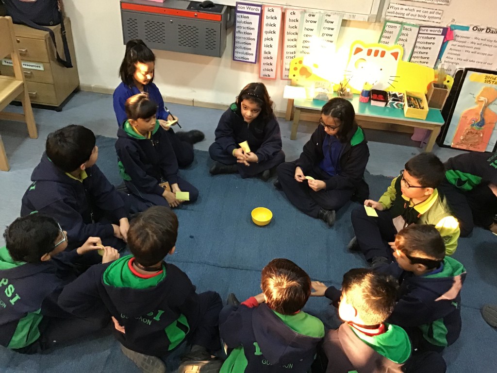 Students were introduced to shapes and their properties with the help of a mystery bag activity and they recorded their observations using ‘think-pair-share’ visible thinking routine.