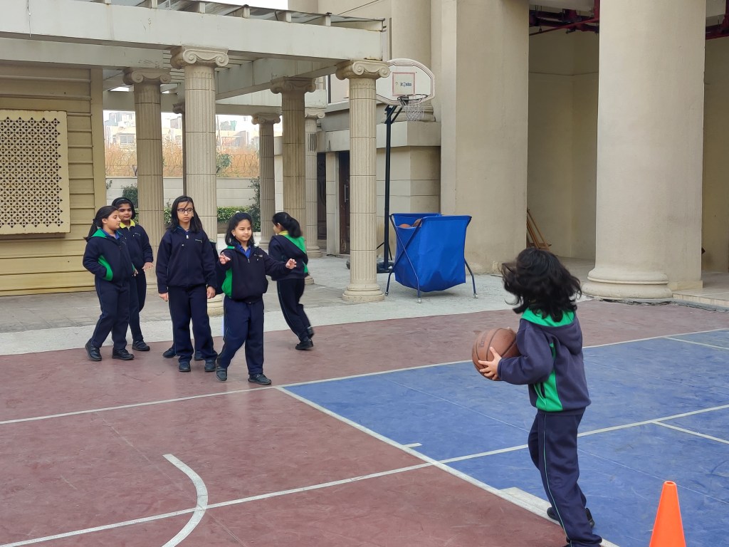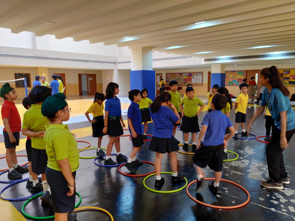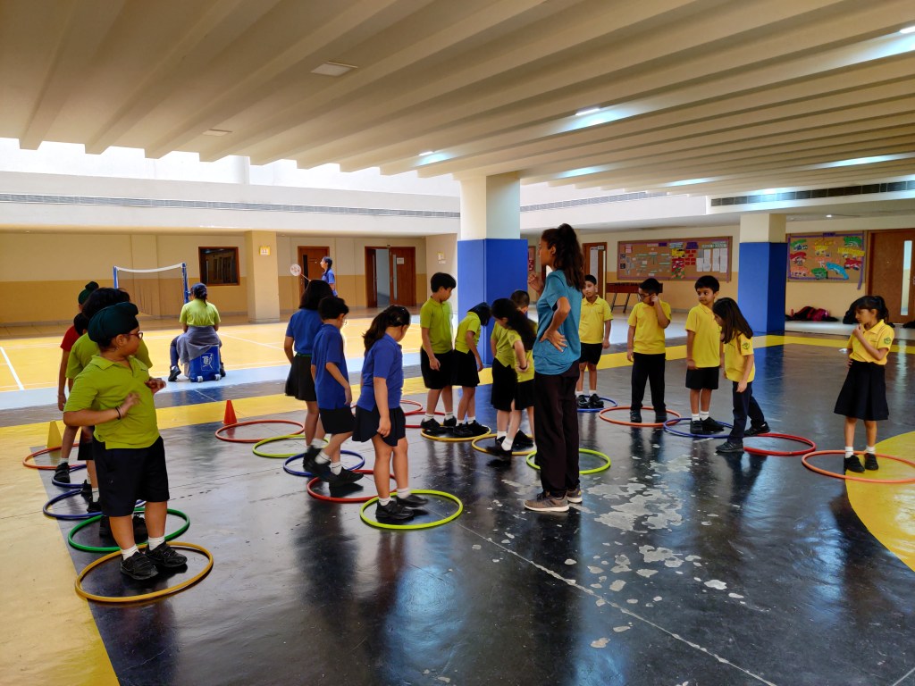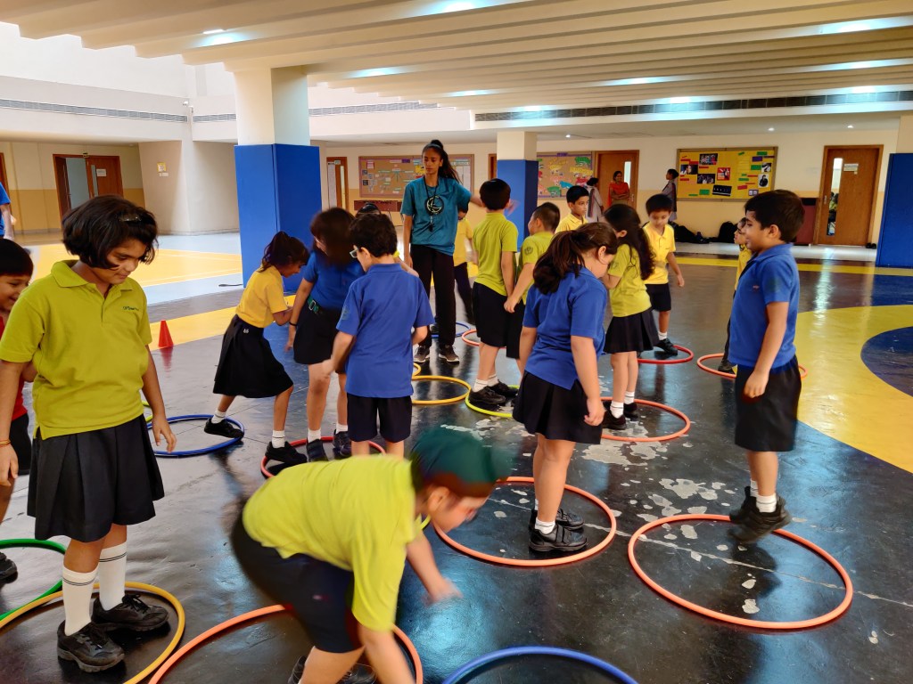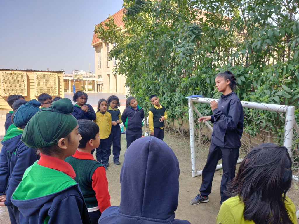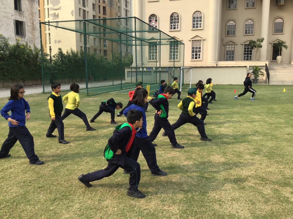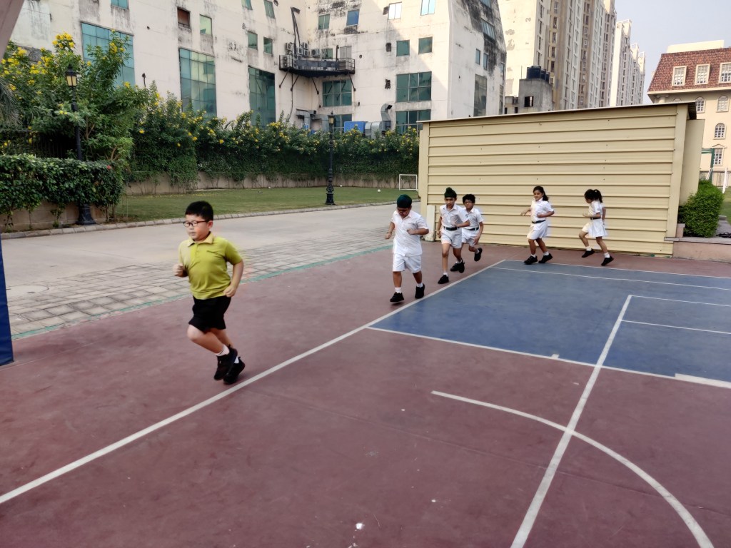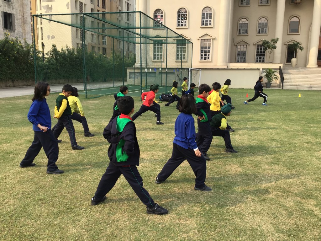 Students developed their basic motor skills with the help of different lead-up activities and recreational games, which included jumping, running and hopping. Students have begun to learn new skills of push pass in soccer.