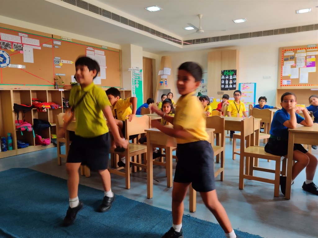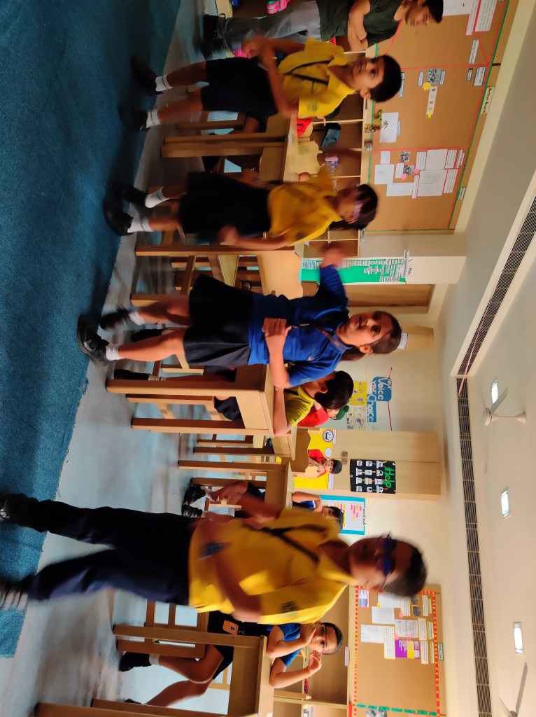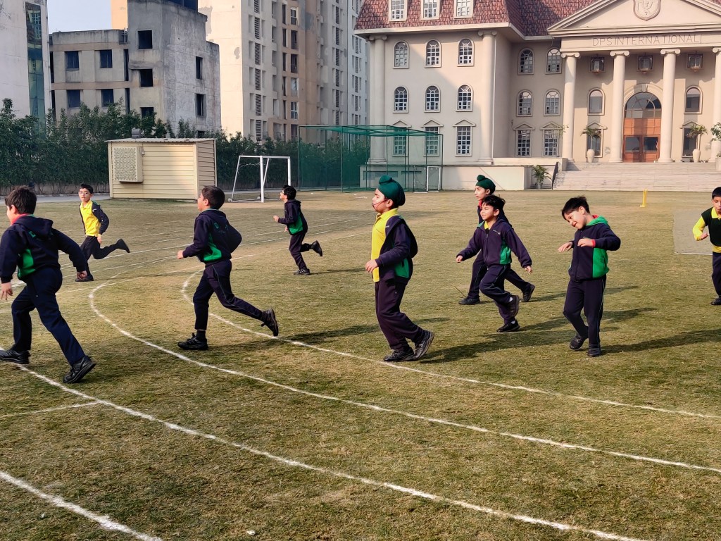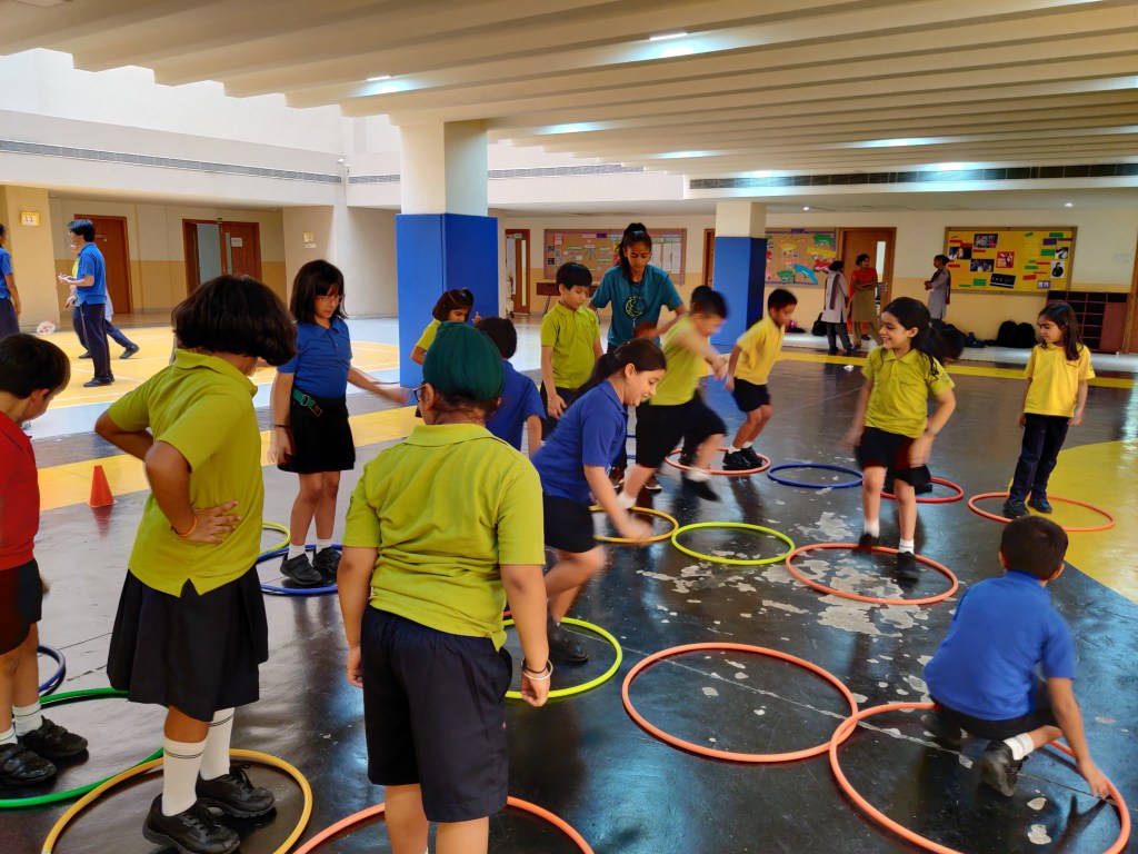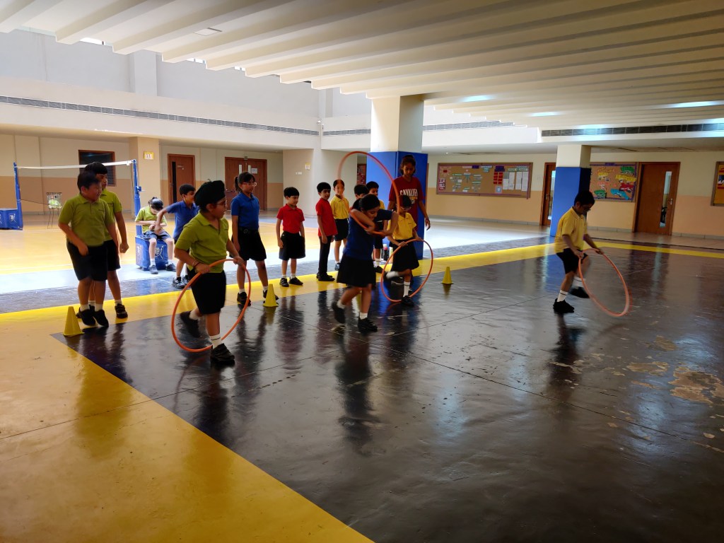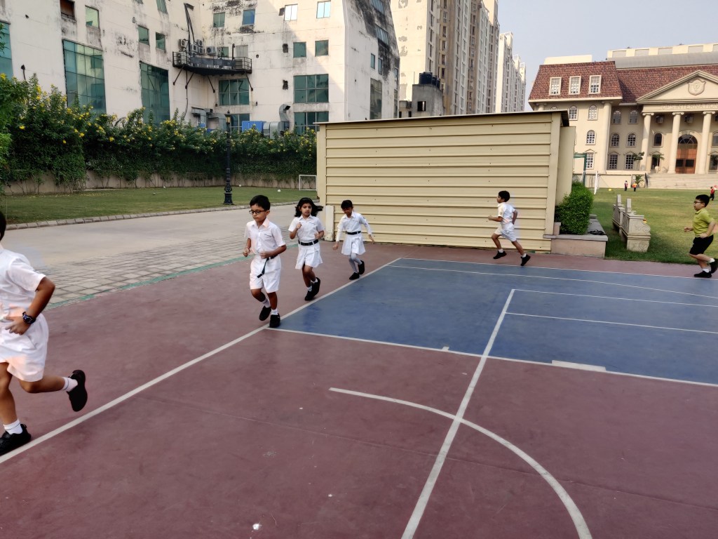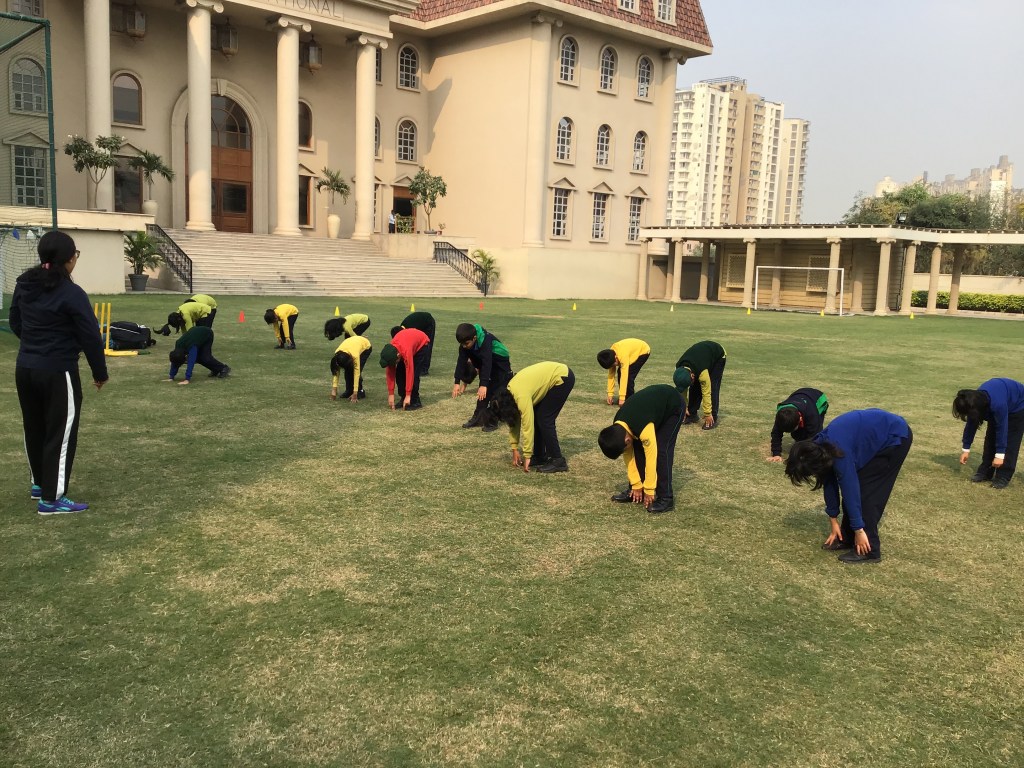Students developed their basic motor skills with the help of different lead-up activities and recreational games, which included jumping, running and hopping. Students have begun to learn new skills of push pass in soccer.