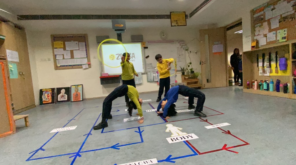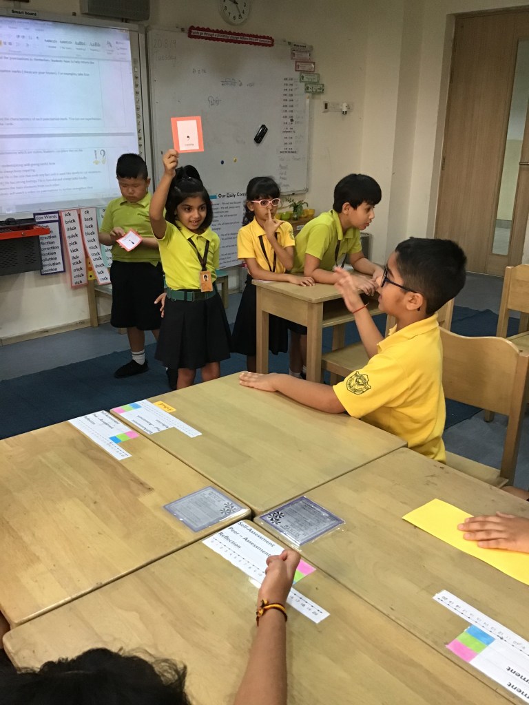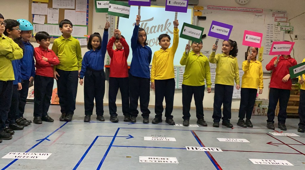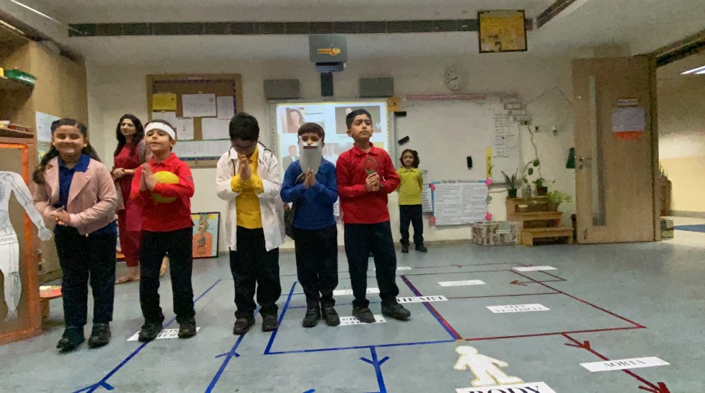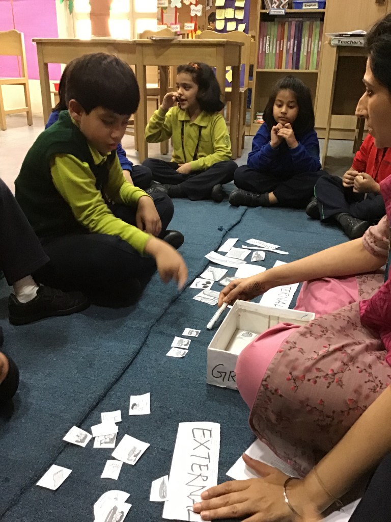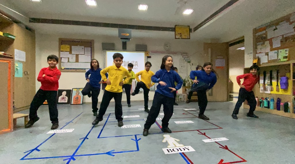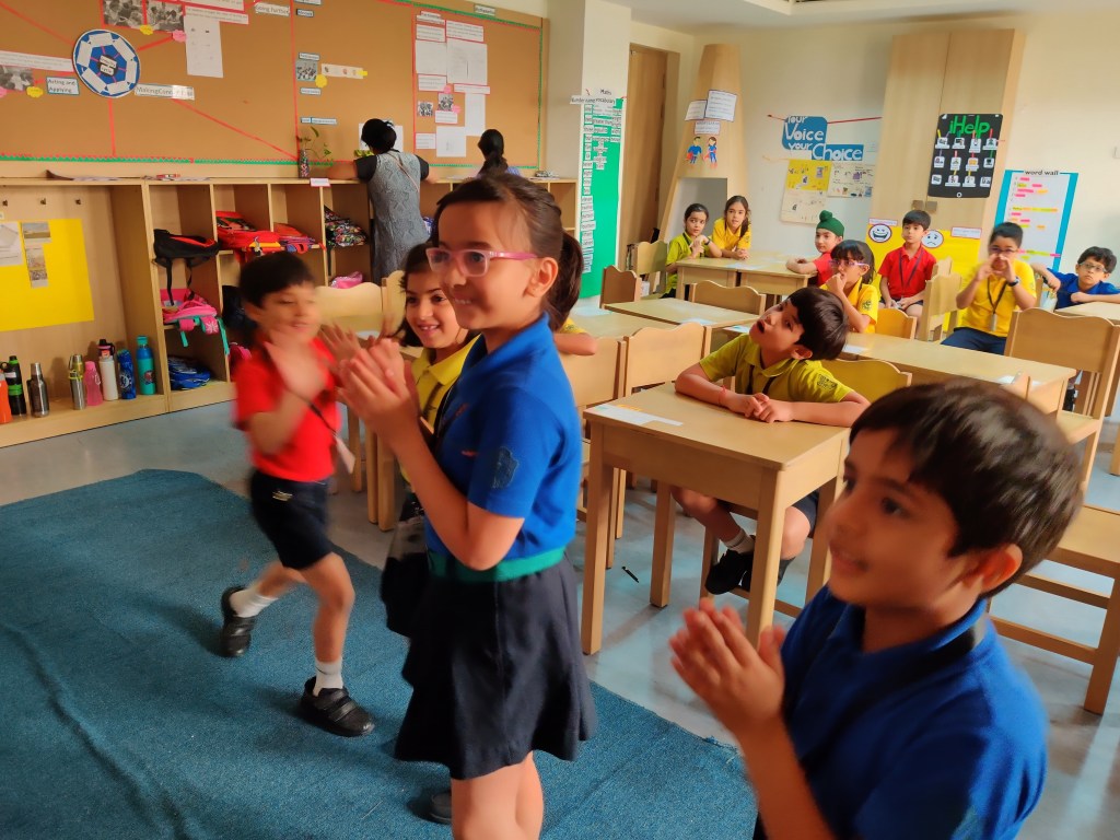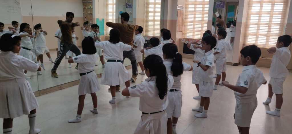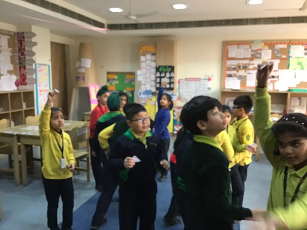 Students developed their basic motor skills with the help of different lead-up activities and recreational games, which included jumping, running and hopping. Students have begun to learn new skills of push pass in soccer.