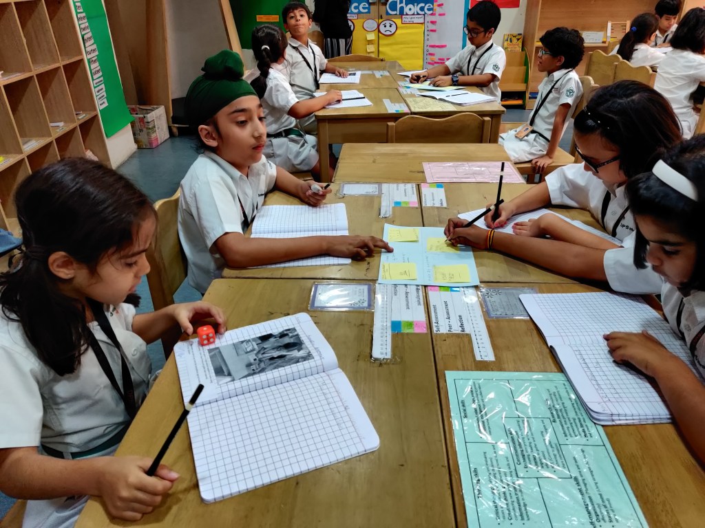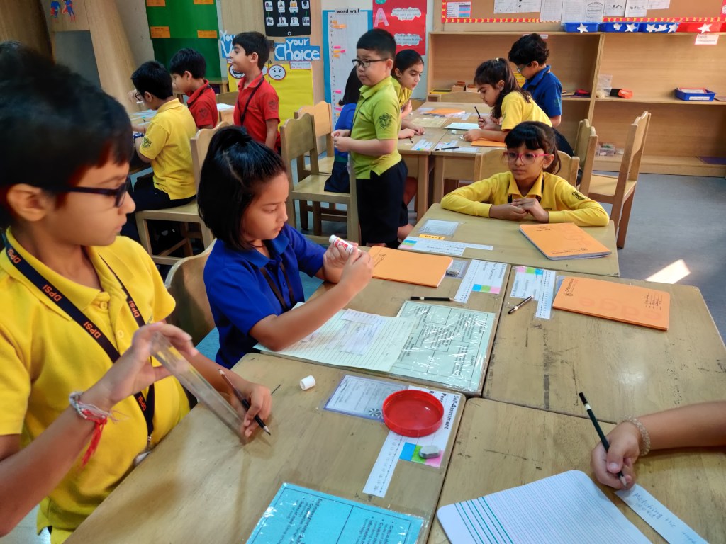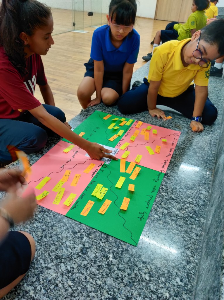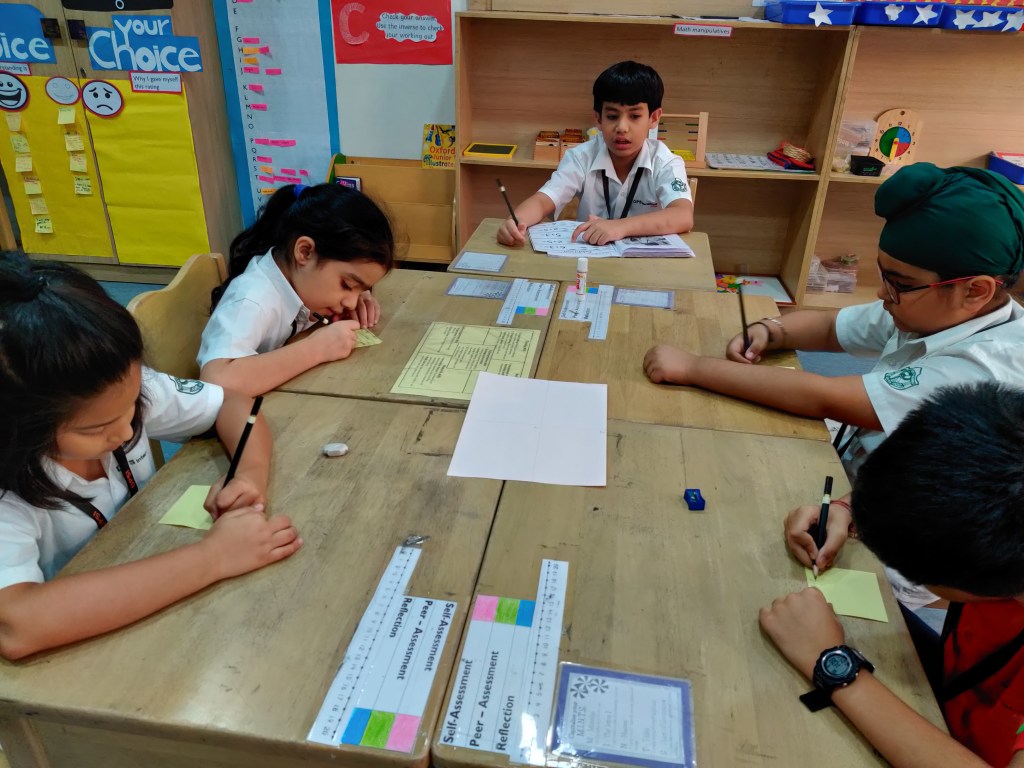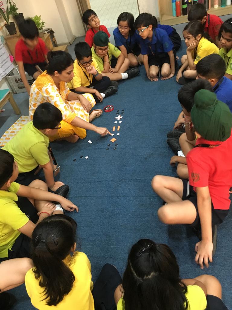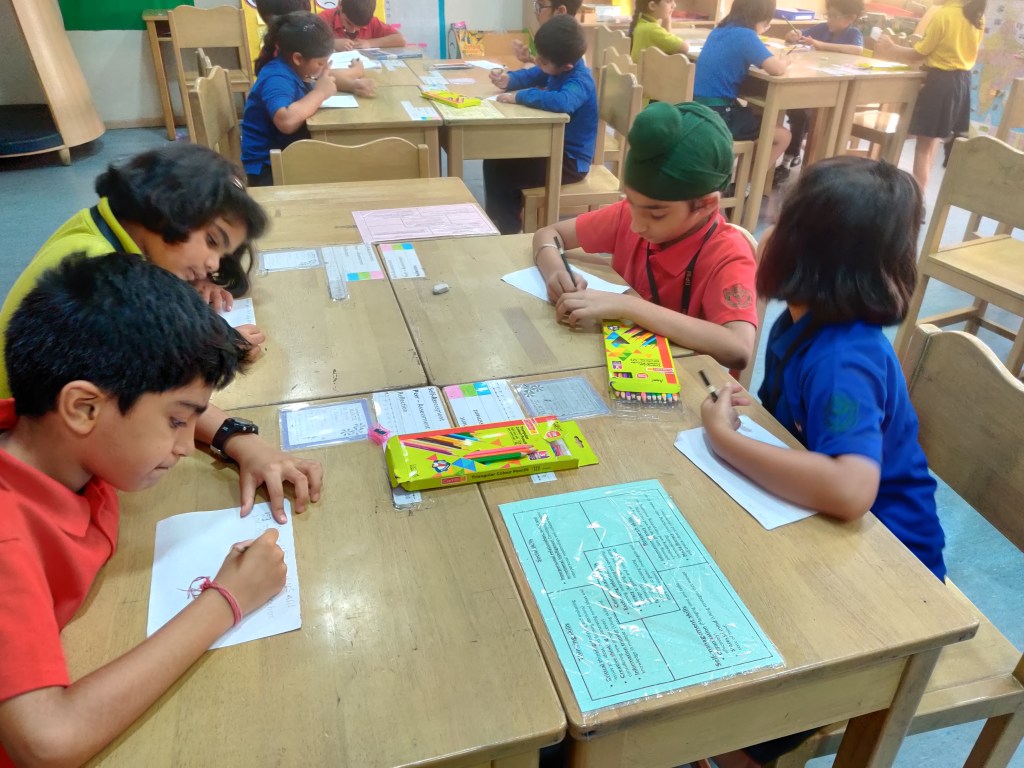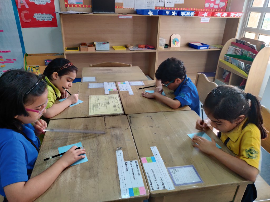 To facilitate the recap of previously covered math concepts on number system, addition, subtraction, measurement, shapes and patterns; stations were set up having multiple resources and manipulatives for each concept. Students were given a choice to select the concept(s) and attempt the given tasks using displayed resources. Later, they extended their understanding with the help of a graphic organiser.