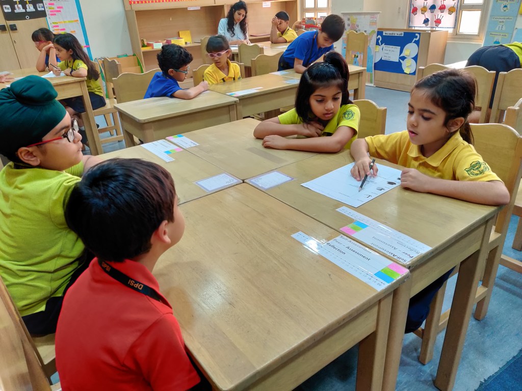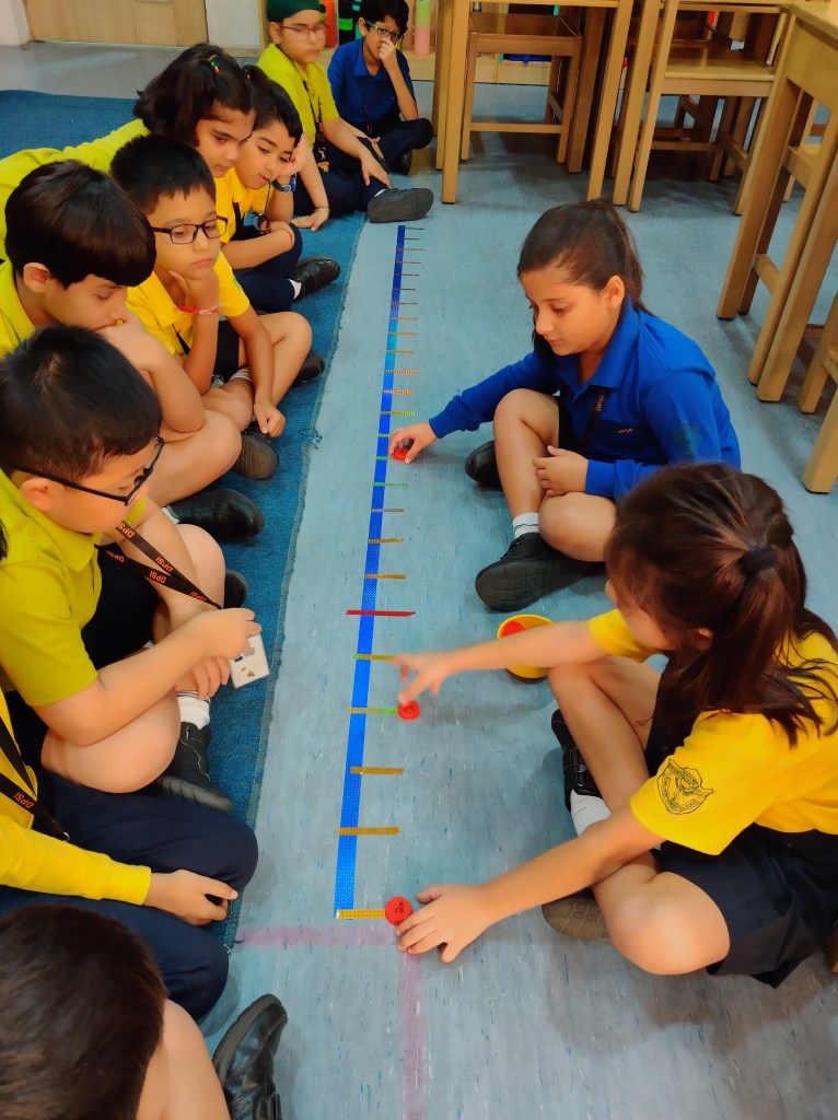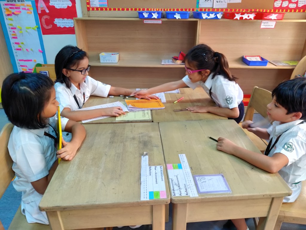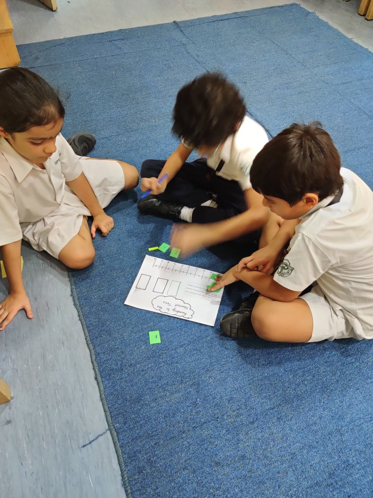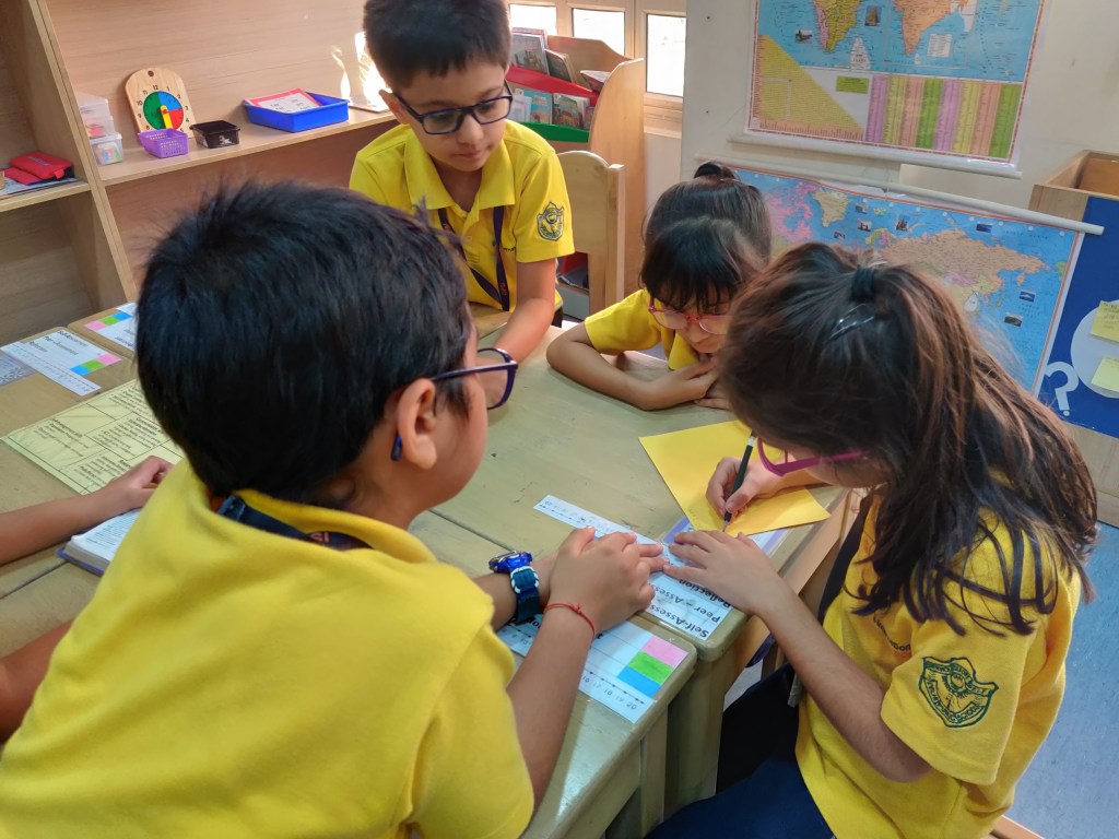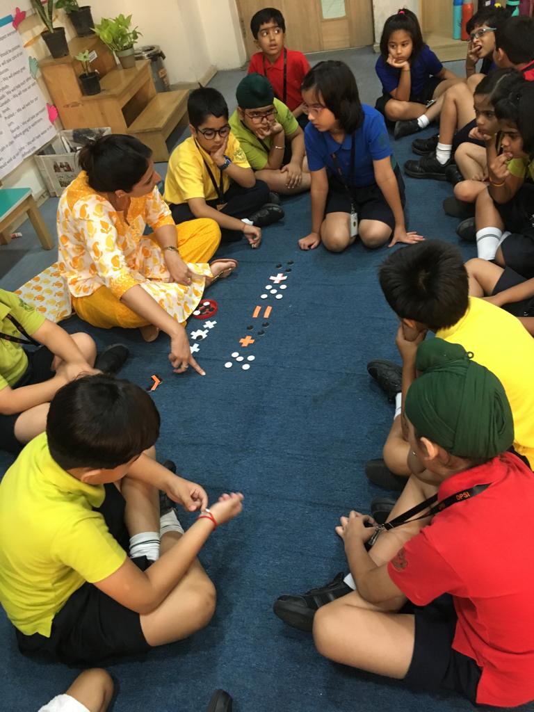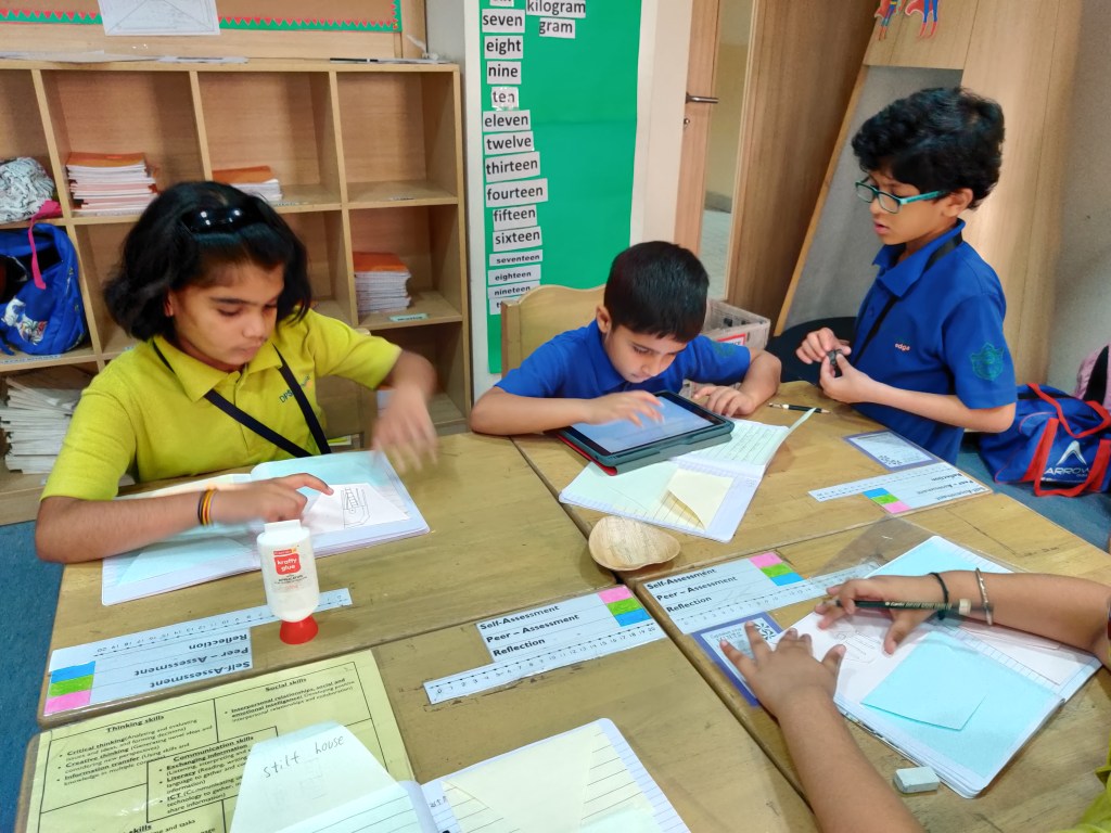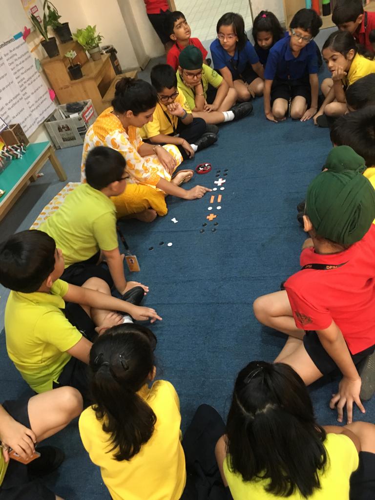 To facilitate the recap of previously covered math concepts on number system, addition, subtraction, measurement, shapes and patterns; stations were set up having multiple resources and manipulatives for each concept. Students were given a choice to select the concept(s) and attempt the given tasks using displayed resources. Later, they extended their understanding with the help of a graphic organiser.