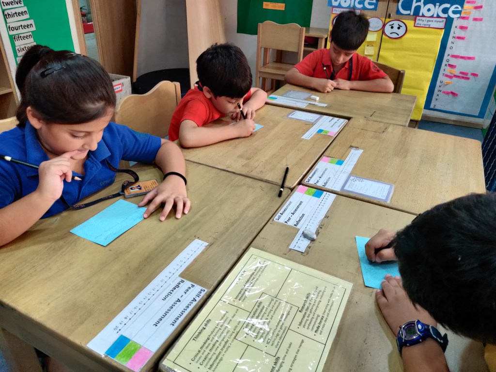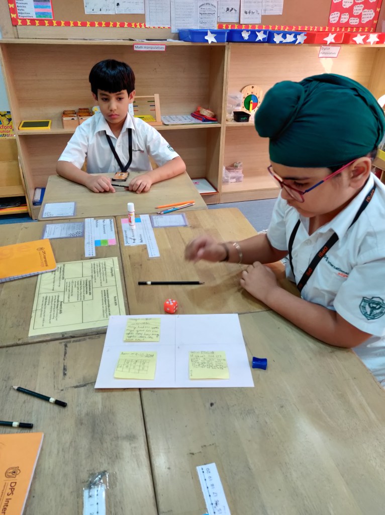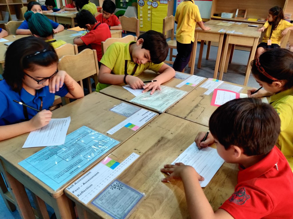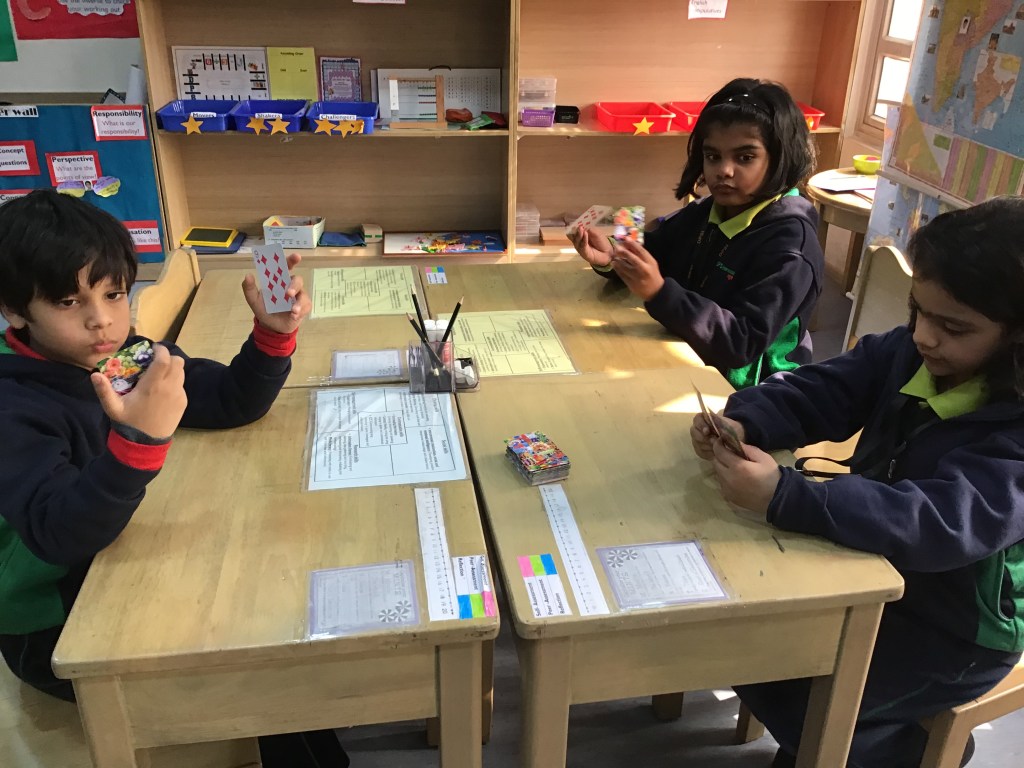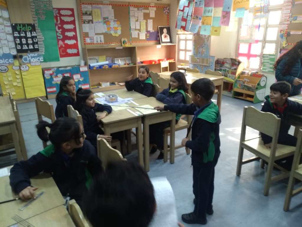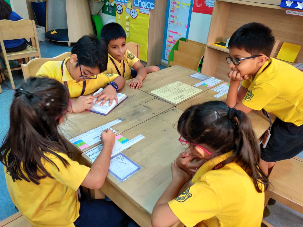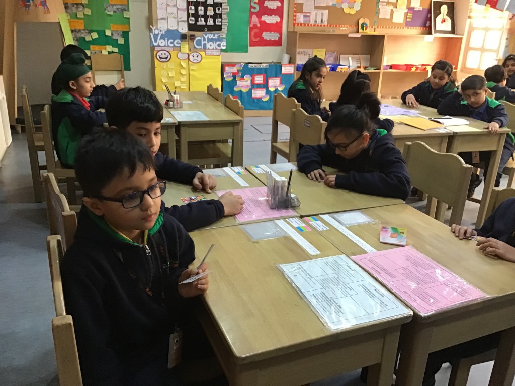 To facilitate the recap of previously covered math concepts on number system, addition, subtraction, measurement, shapes and patterns; stations were set up having multiple resources and manipulatives for each concept. Students were given a choice to select the concept(s) and attempt the given tasks using displayed resources. Later, they extended their understanding with the help of a graphic organiser.