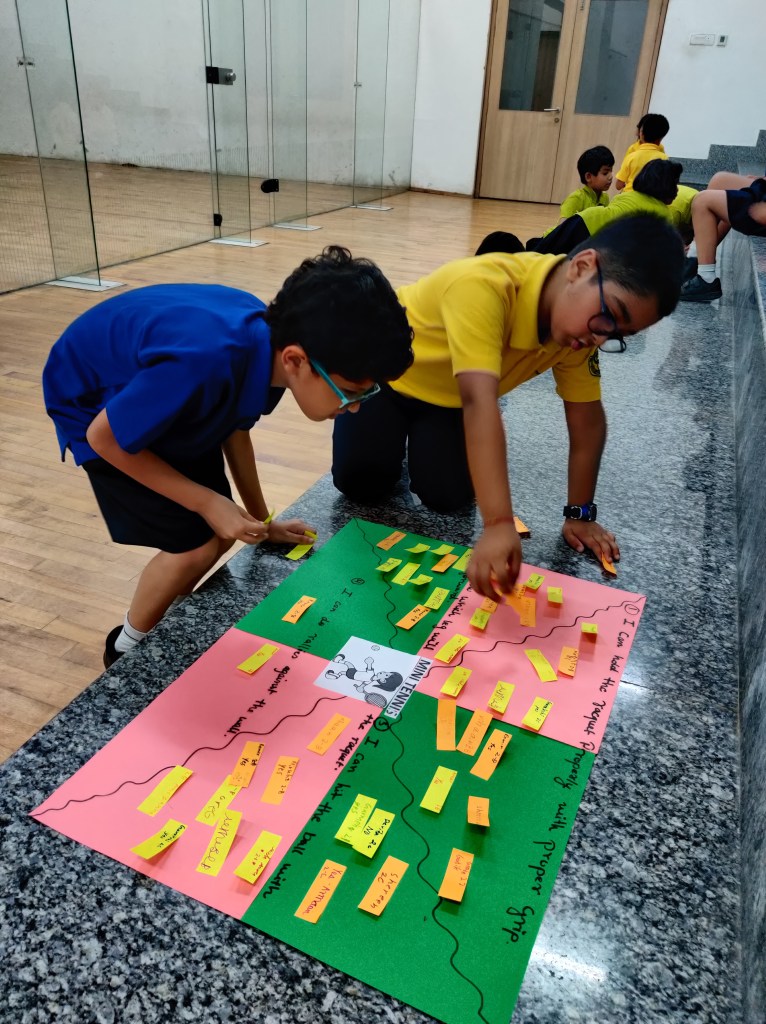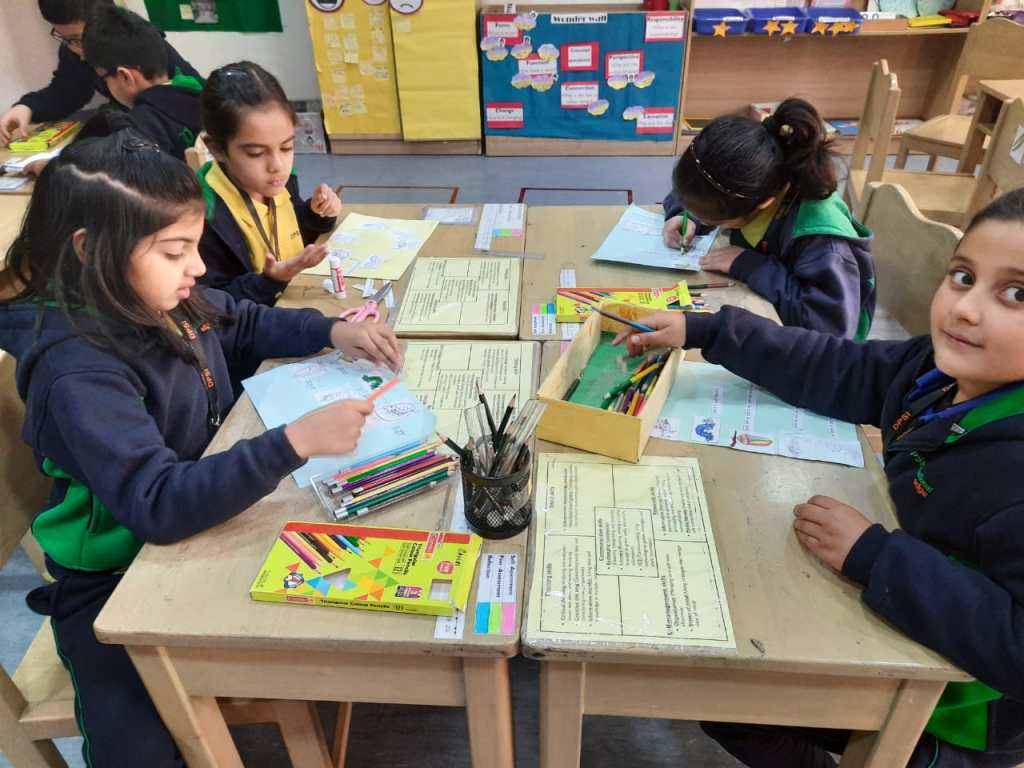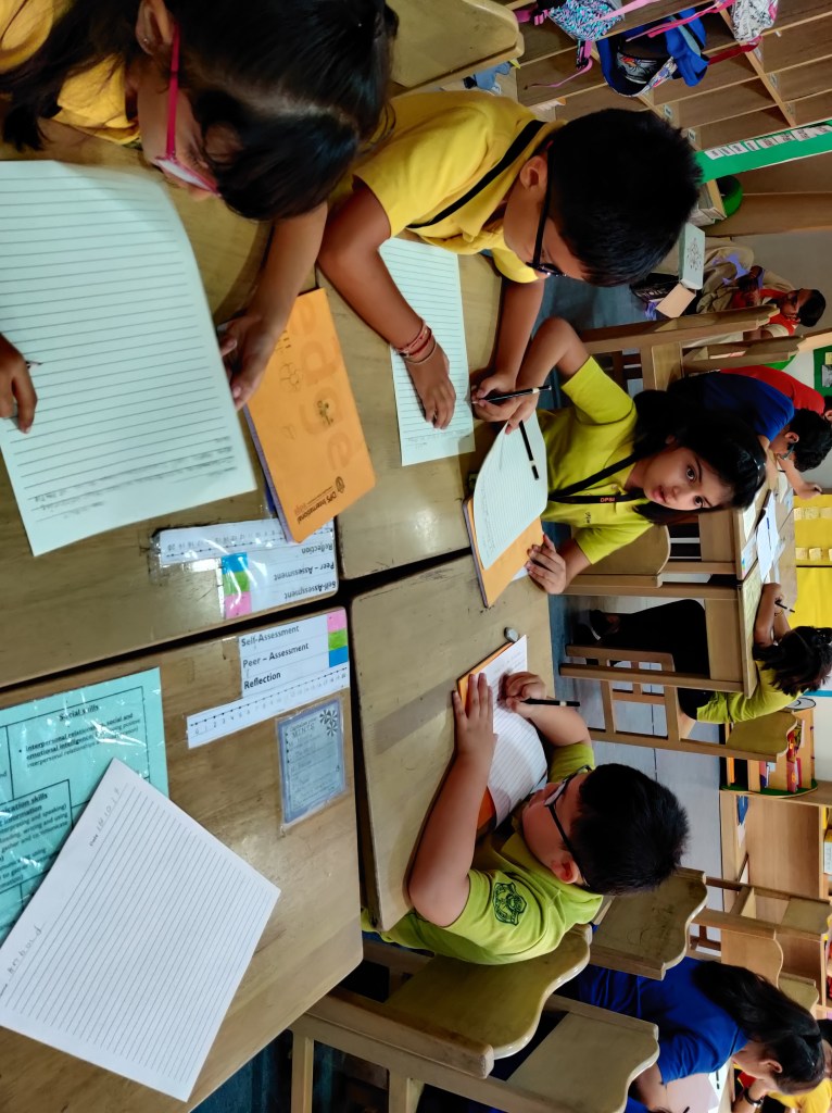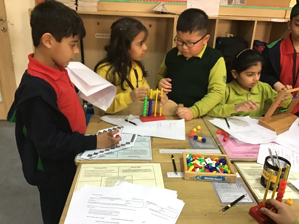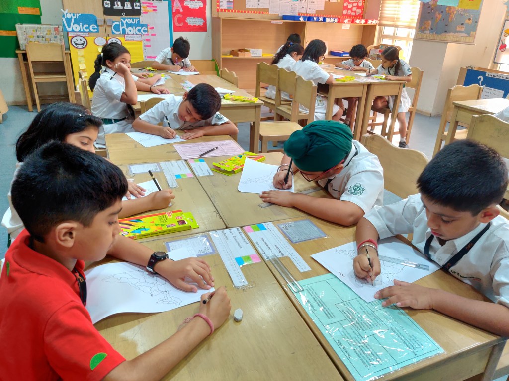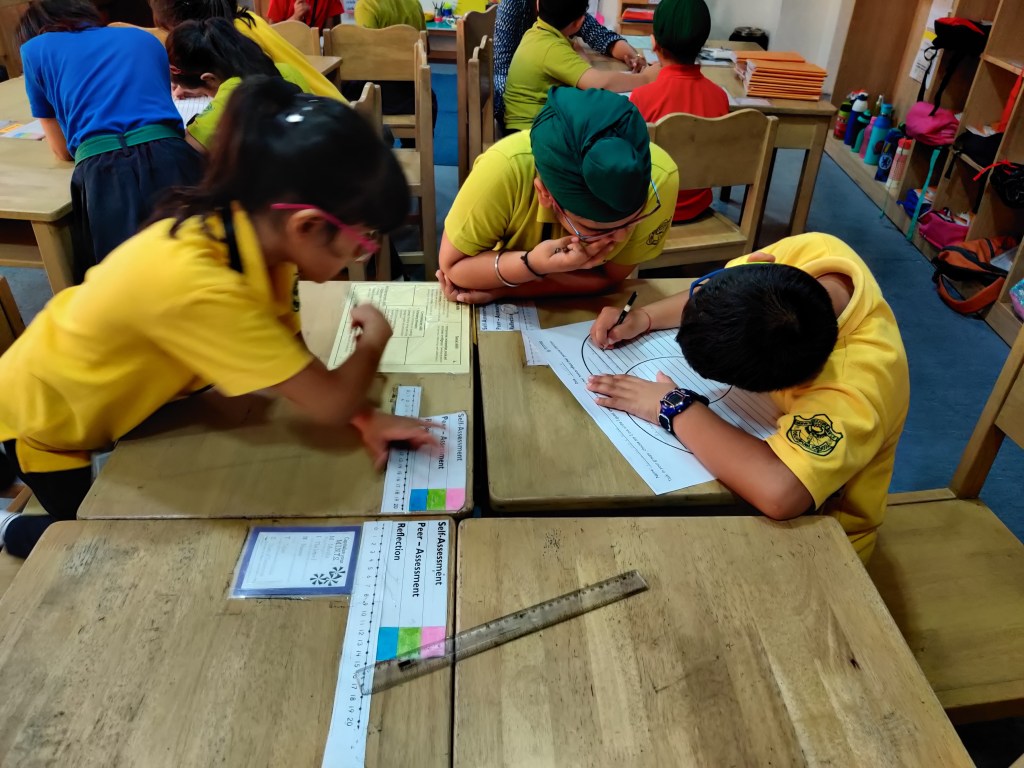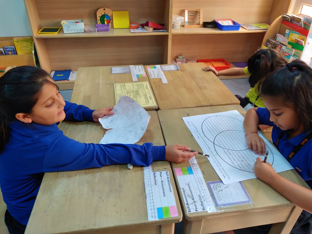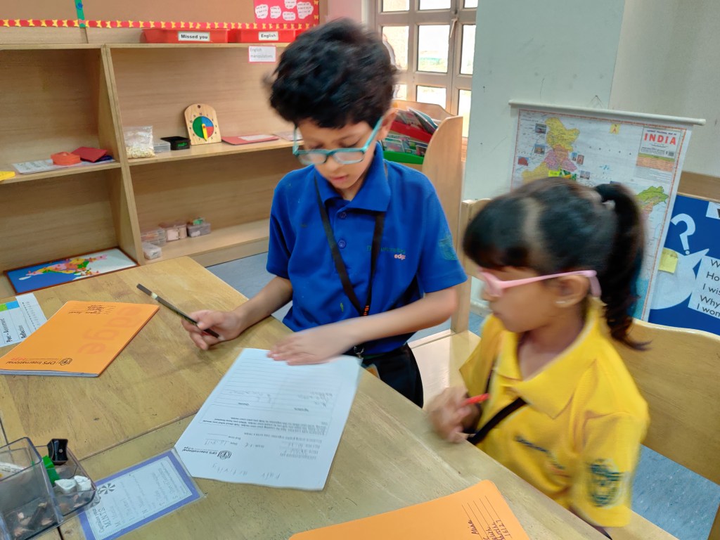 To facilitate the recap of previously covered math concepts on number system, addition, subtraction, measurement, shapes and patterns; stations were set up having multiple resources and manipulatives for each concept. Students were given a choice to select the concept(s) and attempt the given tasks using displayed resources. Later, they extended their understanding with the help of a graphic organiser.