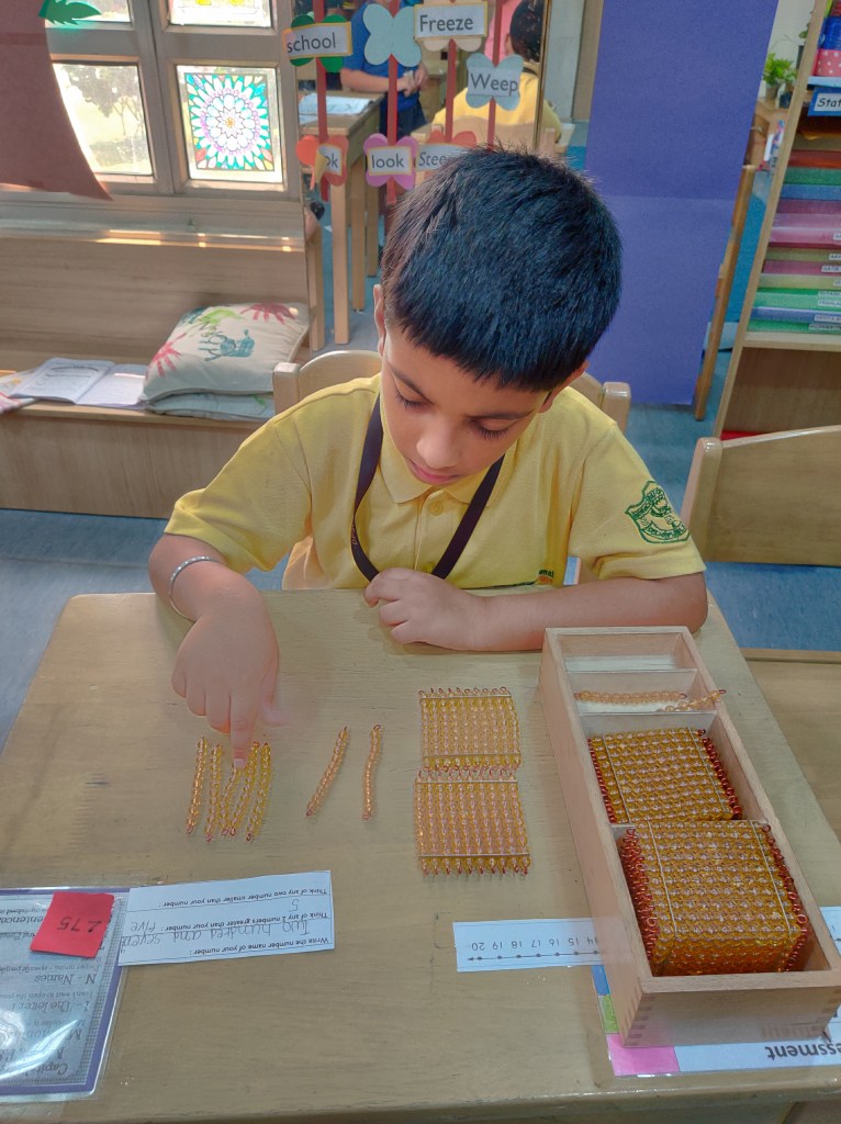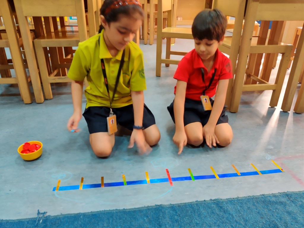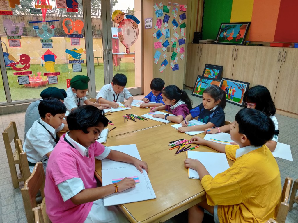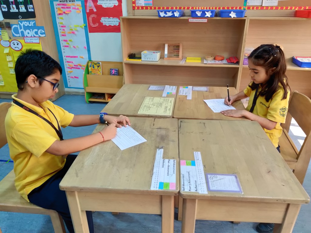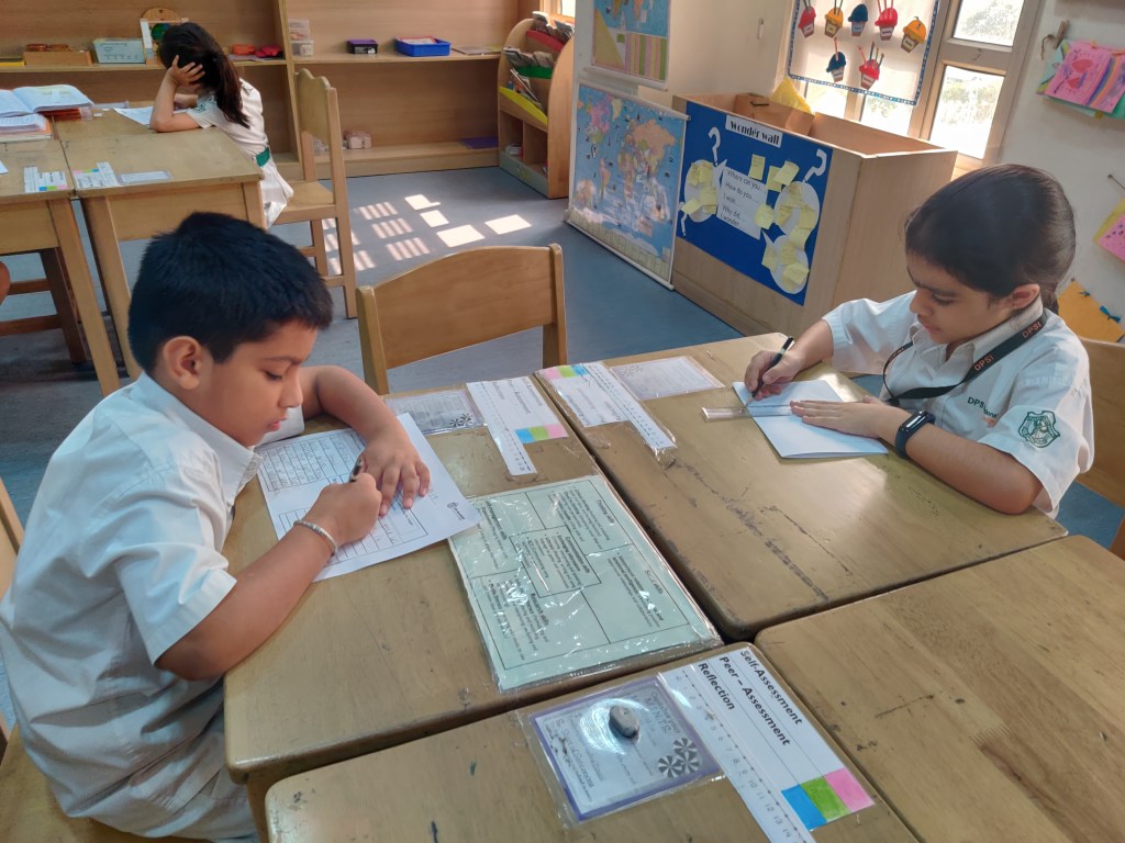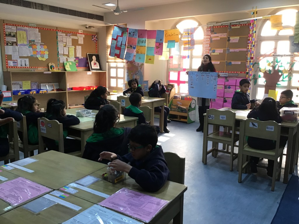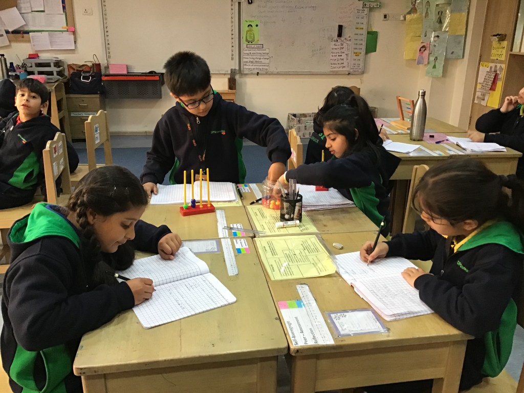 To facilitate the recap of previously covered math concepts on number system, addition, subtraction, measurement, shapes and patterns; stations were set up having multiple resources and manipulatives for each concept. Students were given a choice to select the concept(s) and attempt the given tasks using displayed resources. Later, they extended their understanding with the help of a graphic organiser.