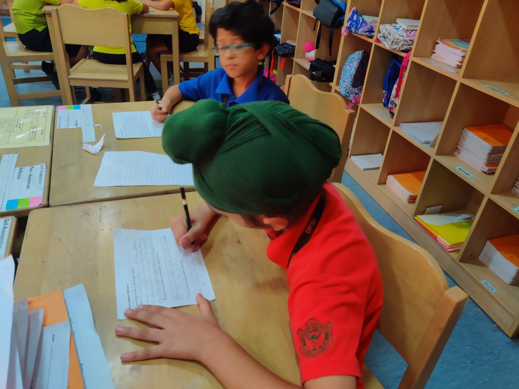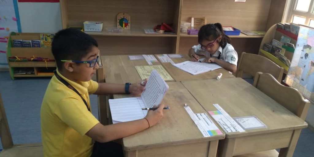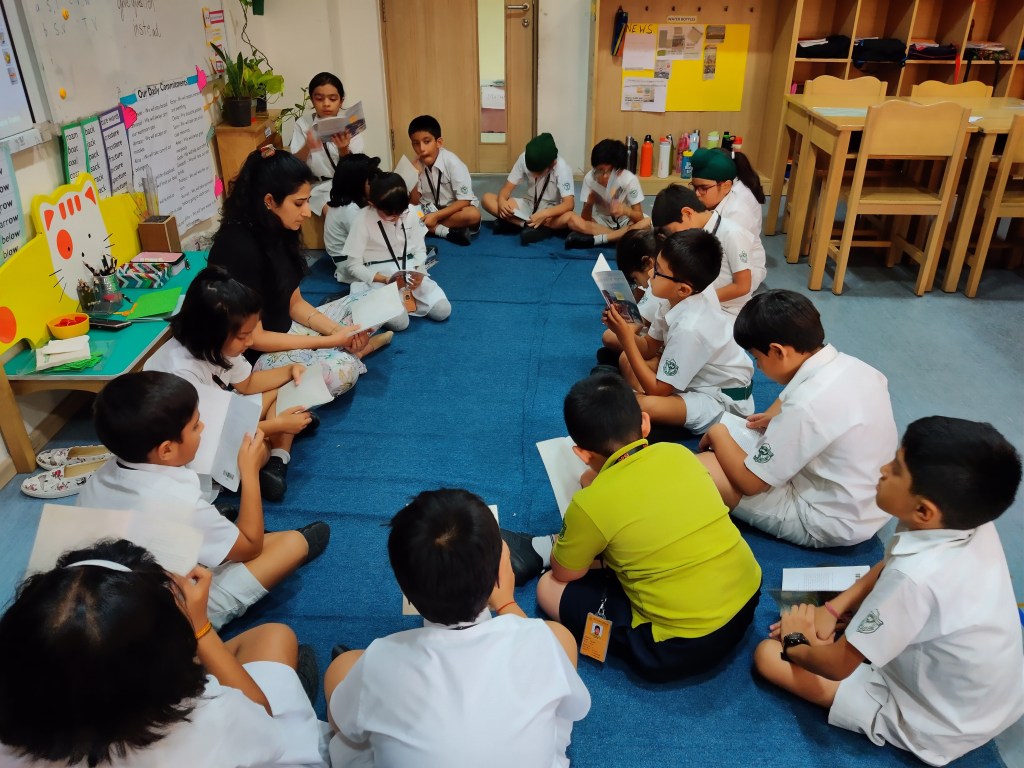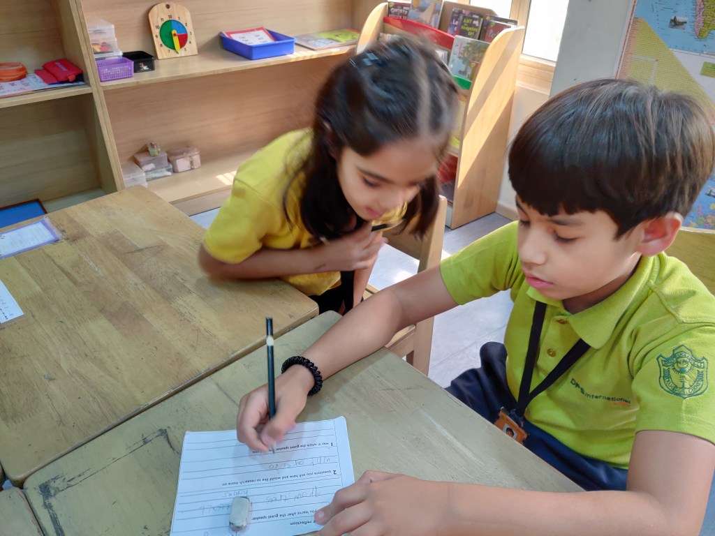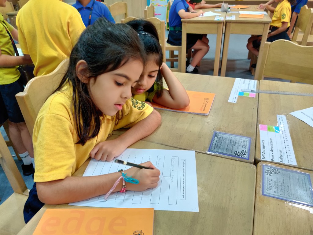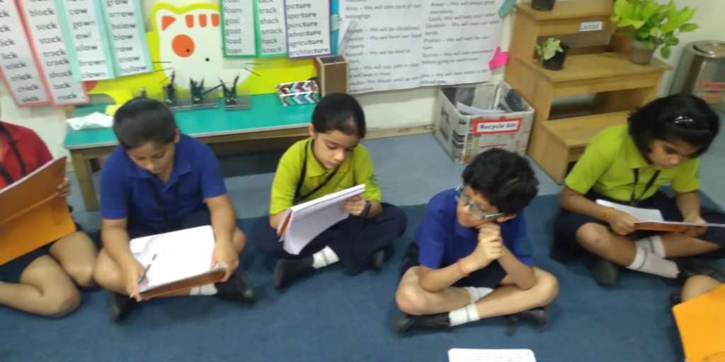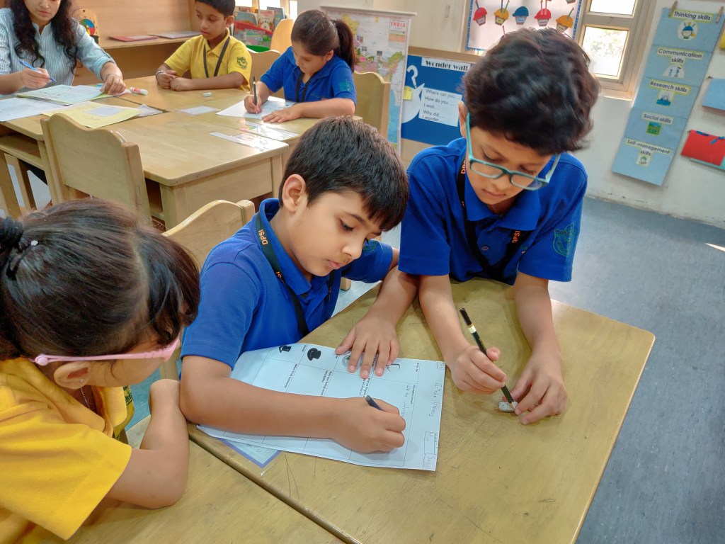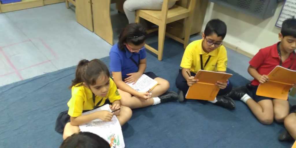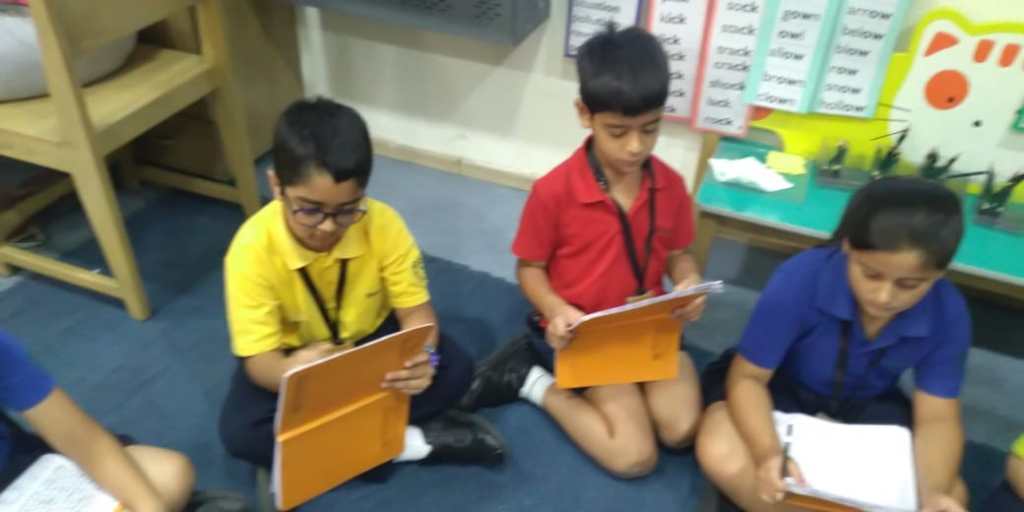 Students further developed their writing skills by creating words and sentences with the same. They read ‘Meetha pahad’ aloud to enhance their reading skills.