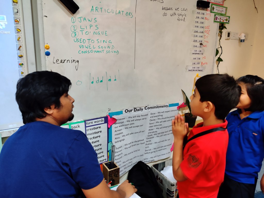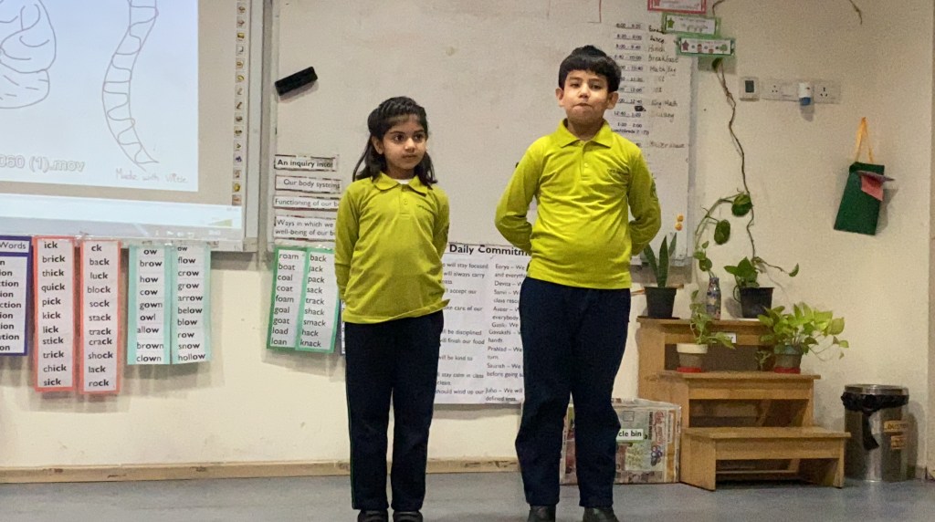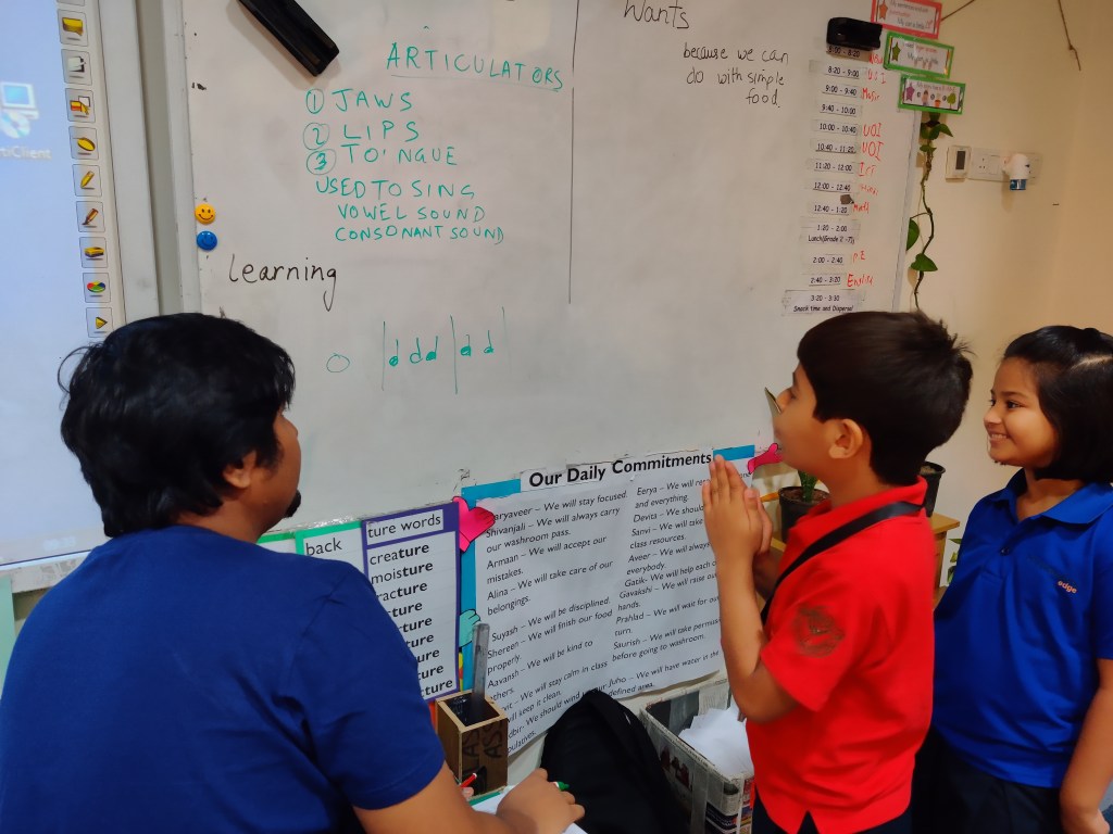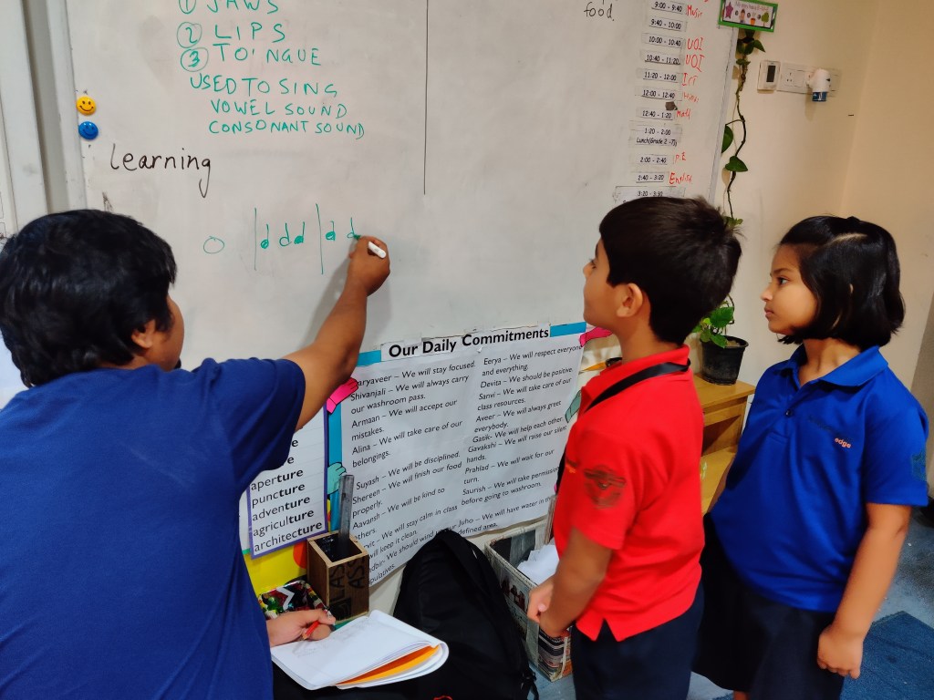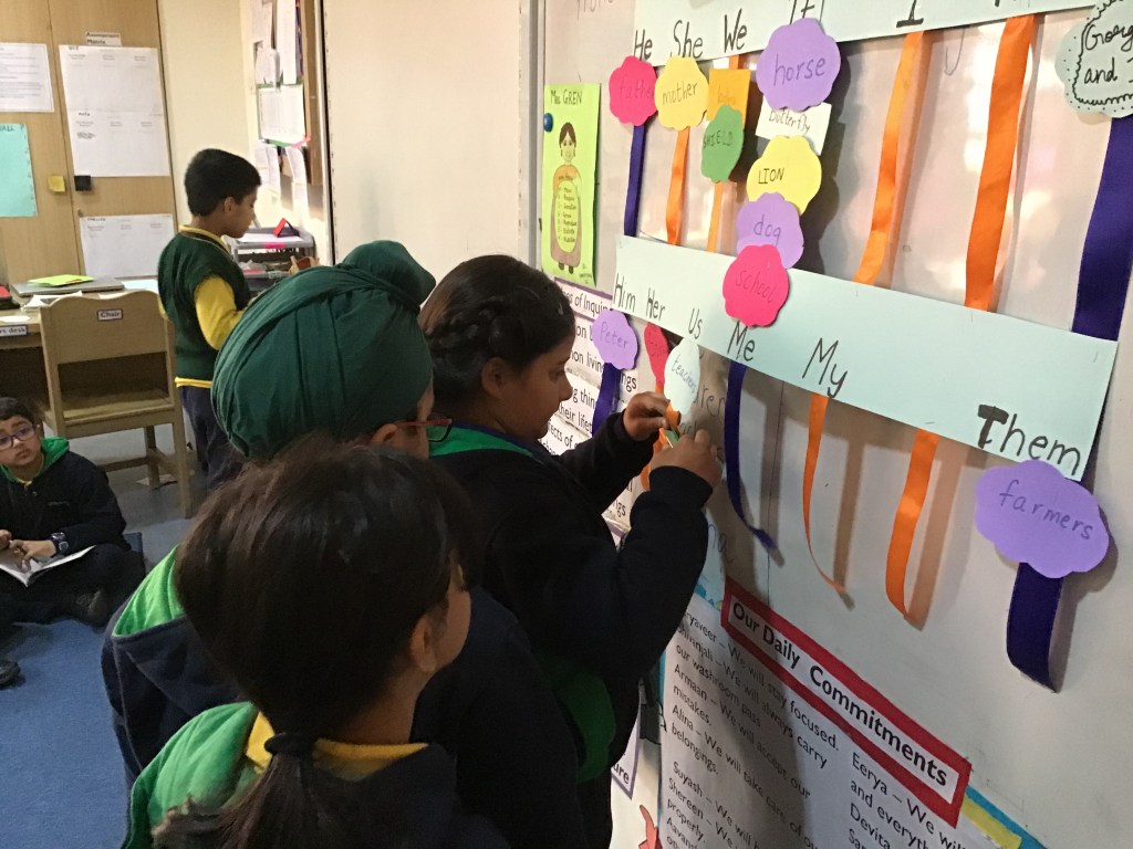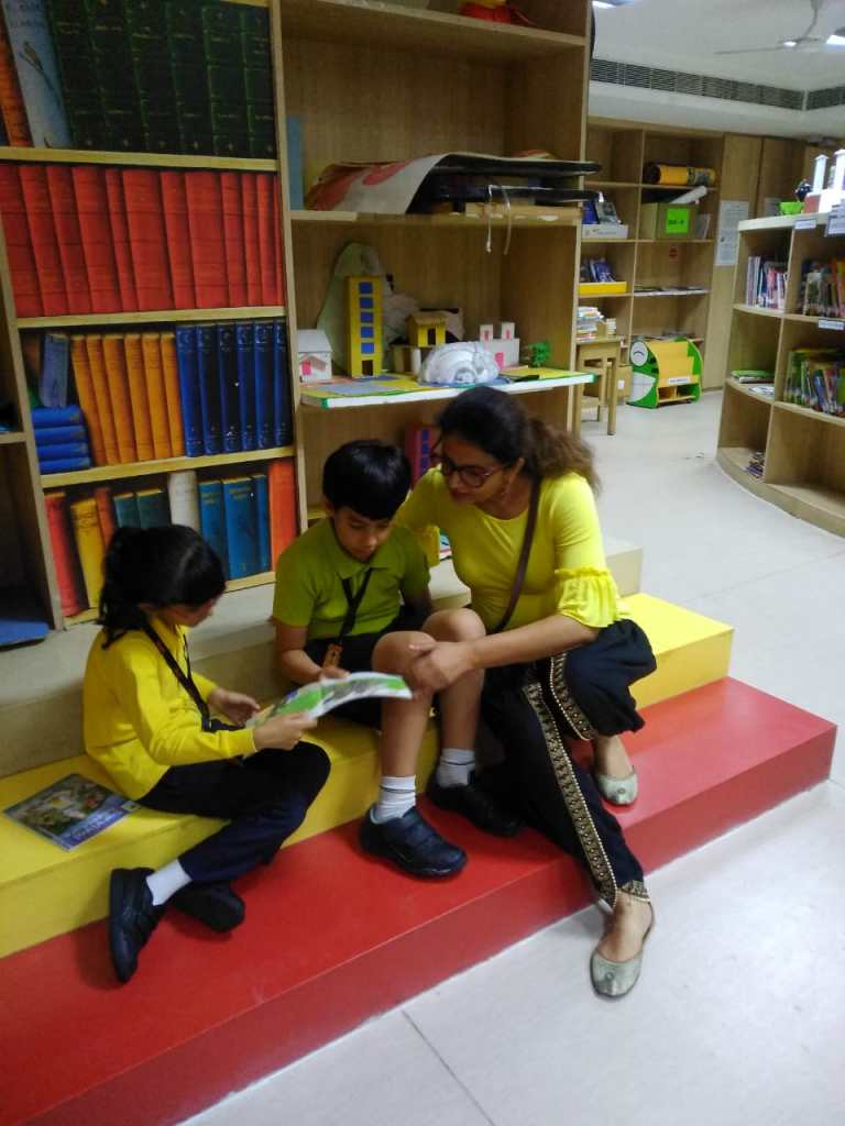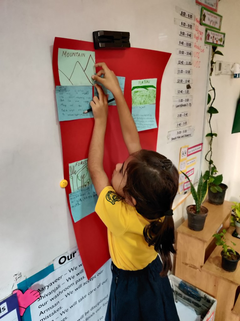 Students further developed their writing skills by creating words and sentences with the same. They read ‘Meetha pahad’ aloud to enhance their reading skills.