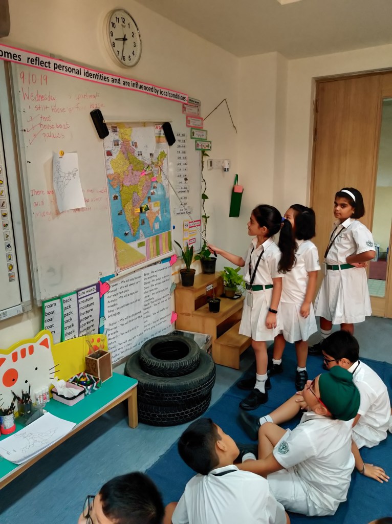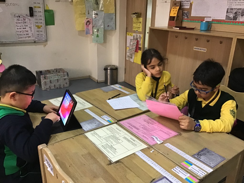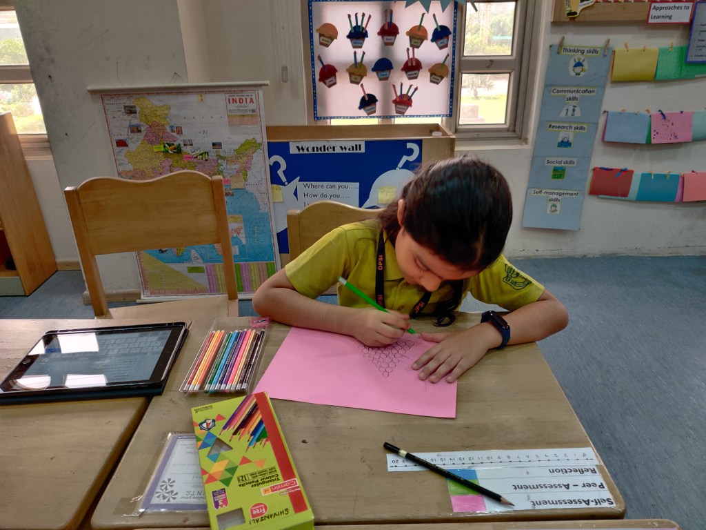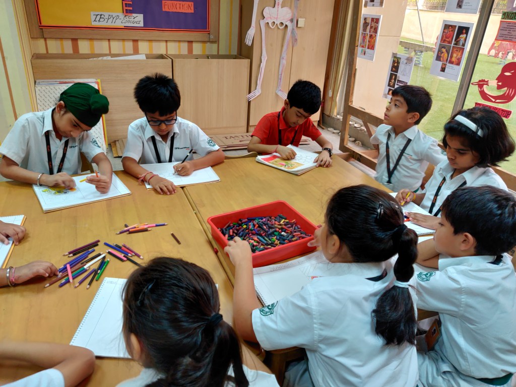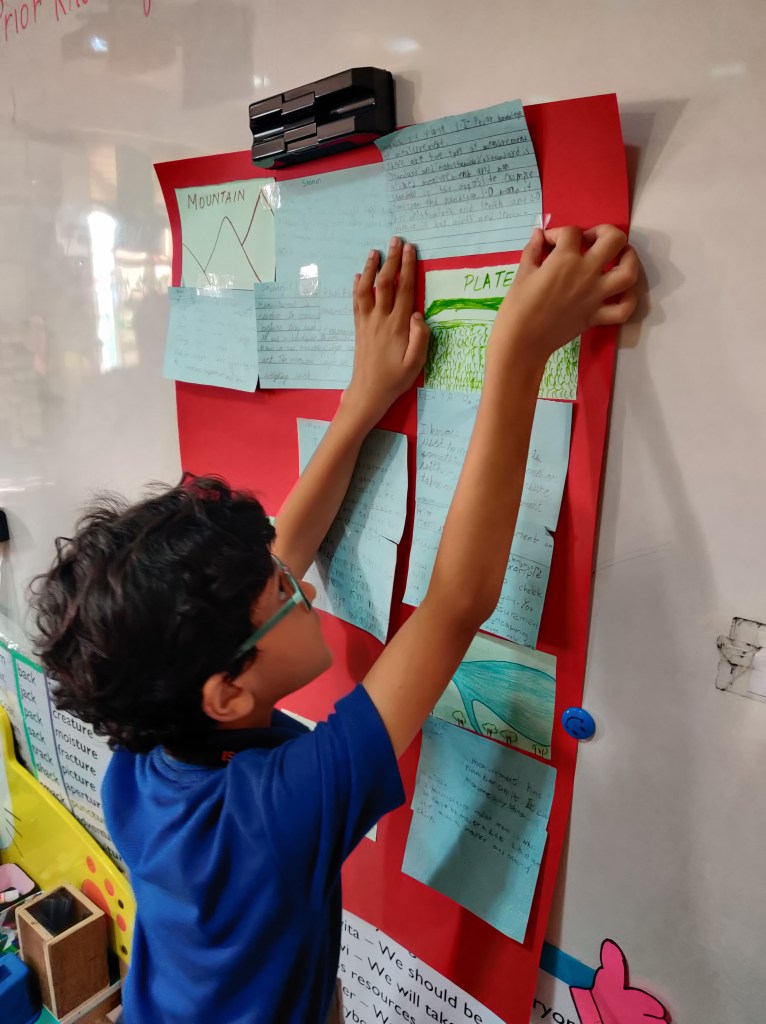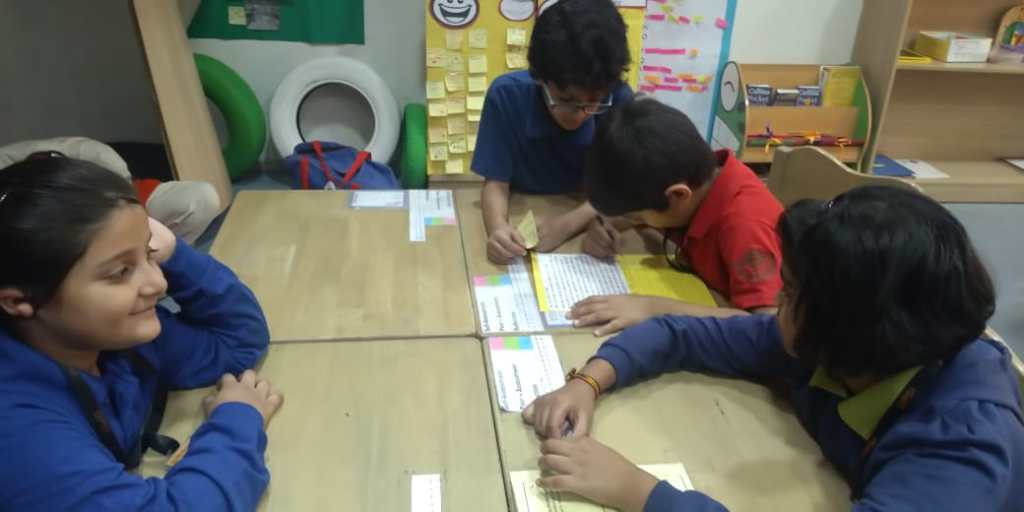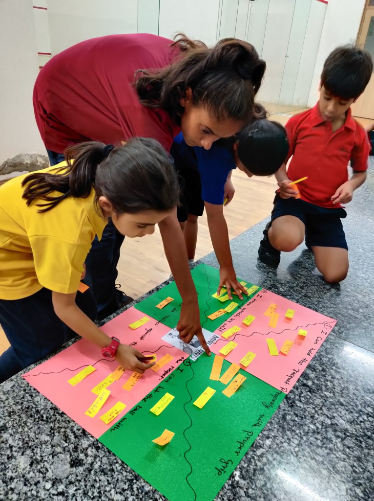Teamwork being a crucial aspect for developing social skills, students were encouraged to work in groups to research about the loss of habitat of different animals. Their research work was backed by multiple resources like iPads, books and factsheets. Students organised their work by choosing different Visible Thinking Routines thereby facilitating opportunities to exercise student agency and take ownership of their learning and action.