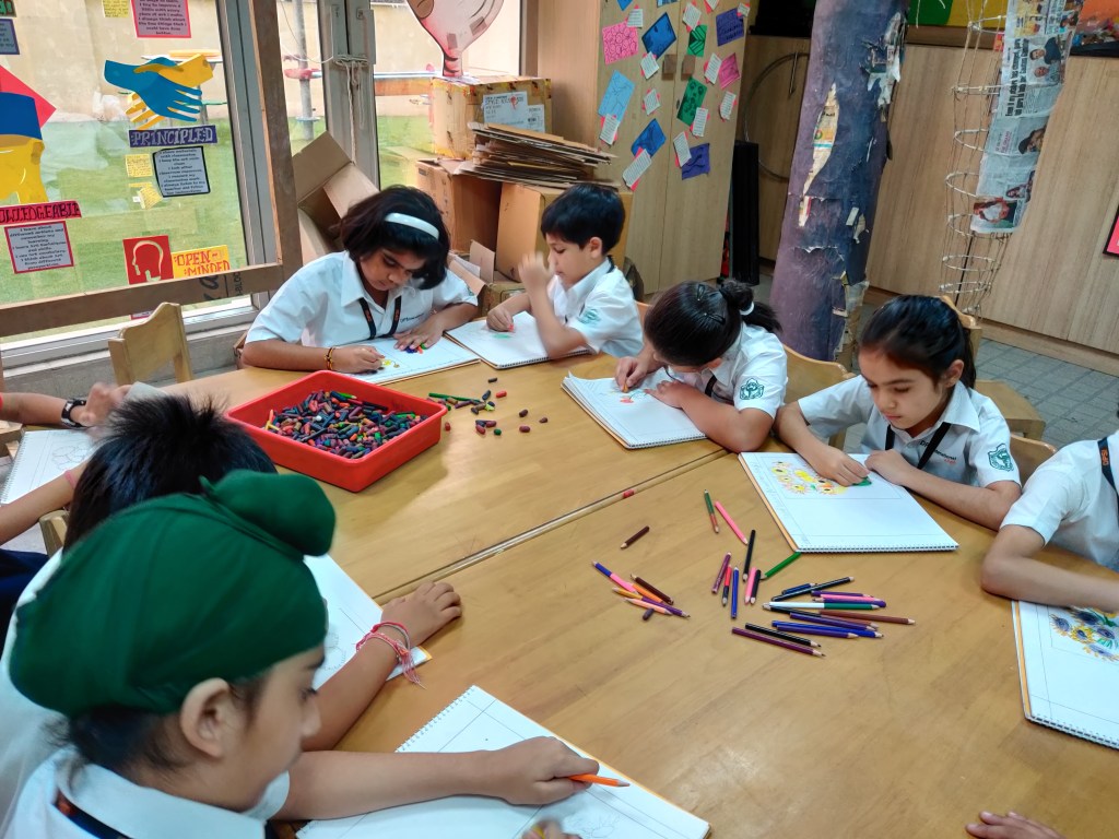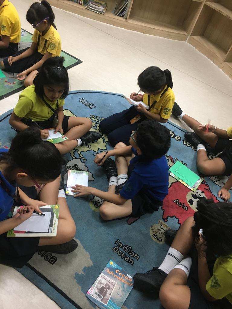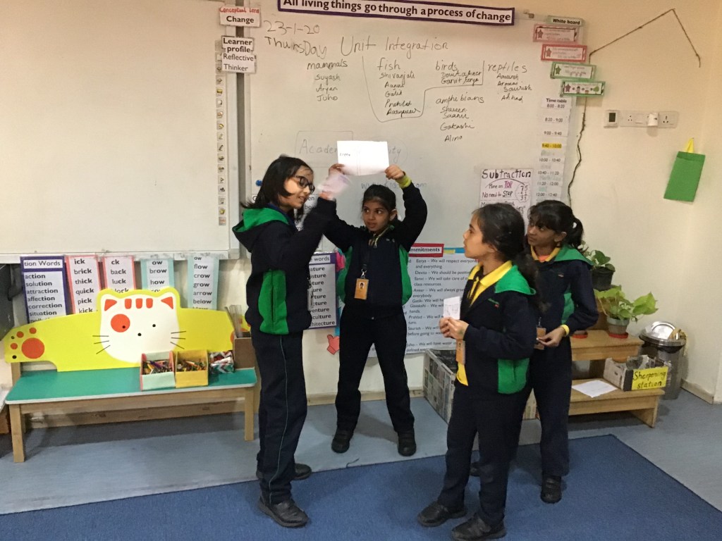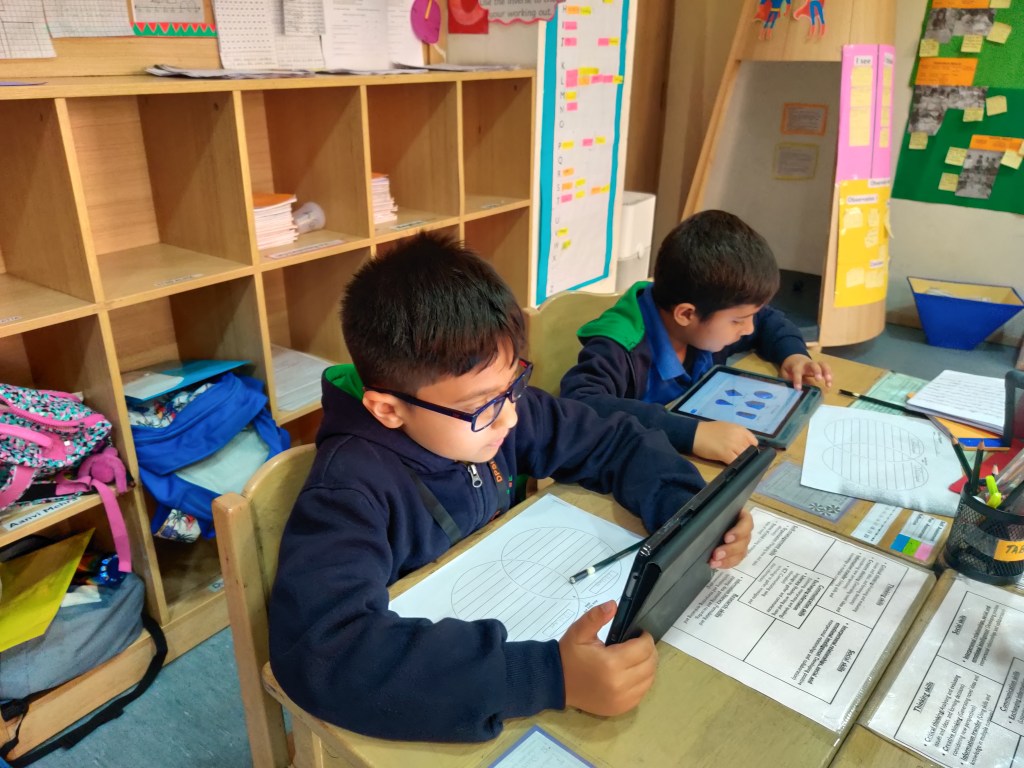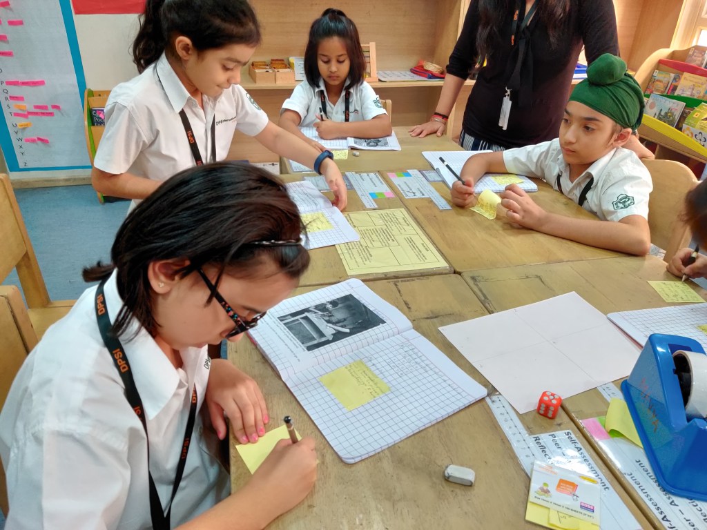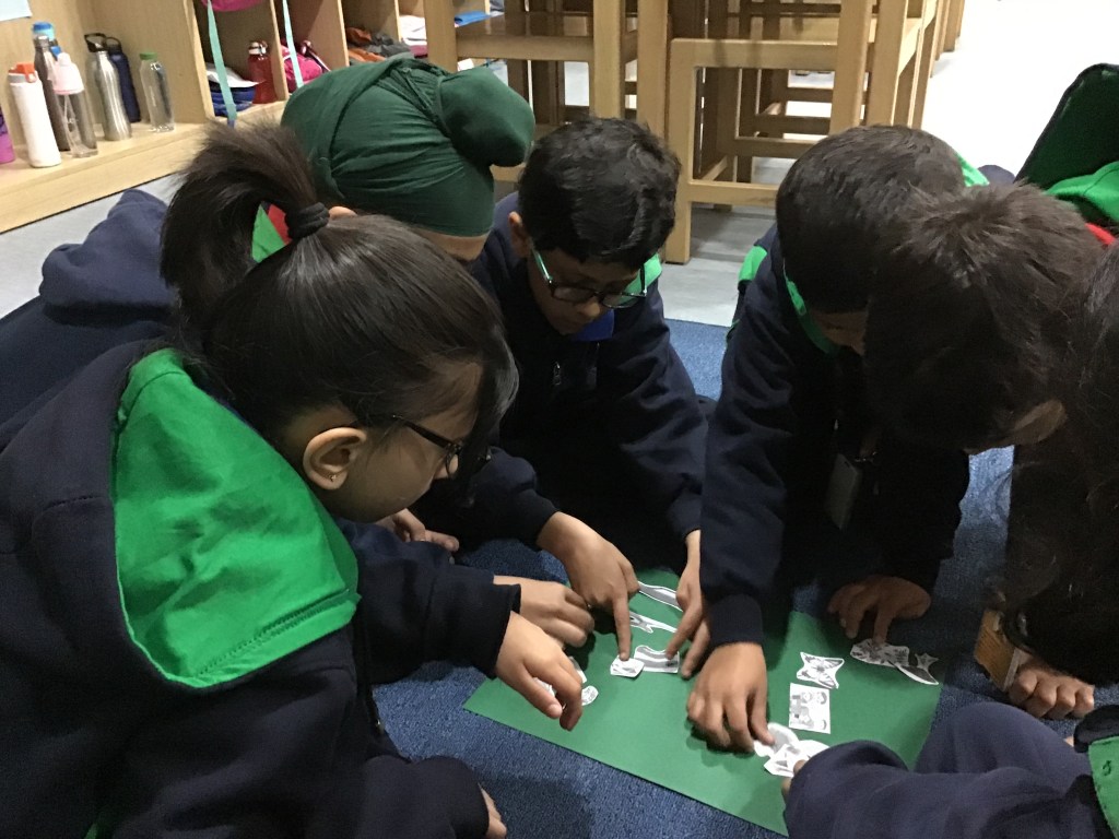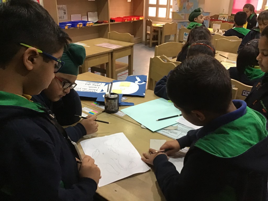 Teamwork being a crucial aspect for developing social skills, students were encouraged to work in groups to research about the loss of habitat of different animals. Their research work was backed by multiple resources like iPads, books and factsheets. Students organised their work by choosing different Visible Thinking Routines thereby facilitating opportunities to exercise student agency and take ownership of their learning and action.