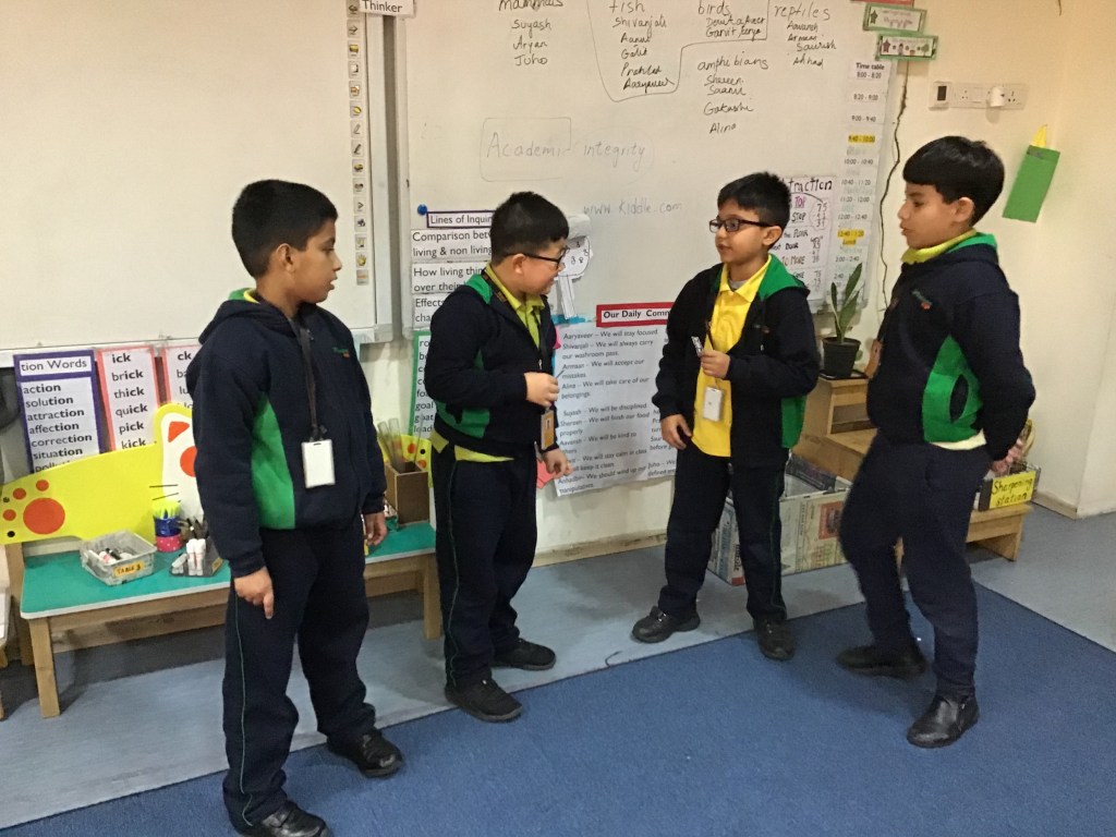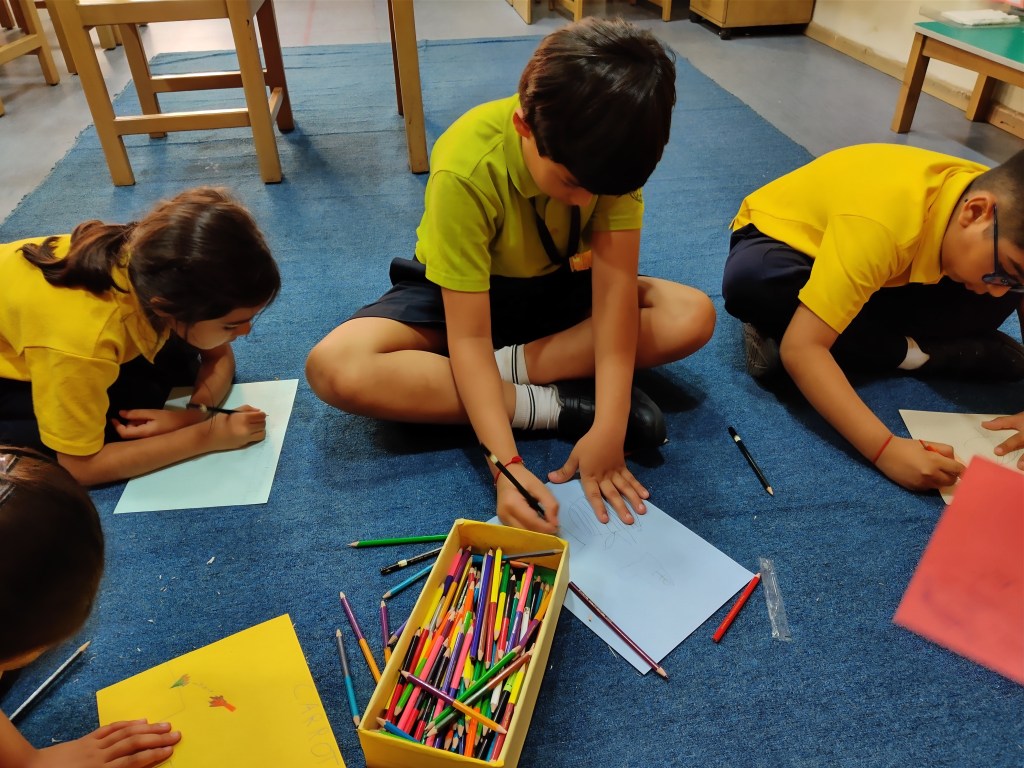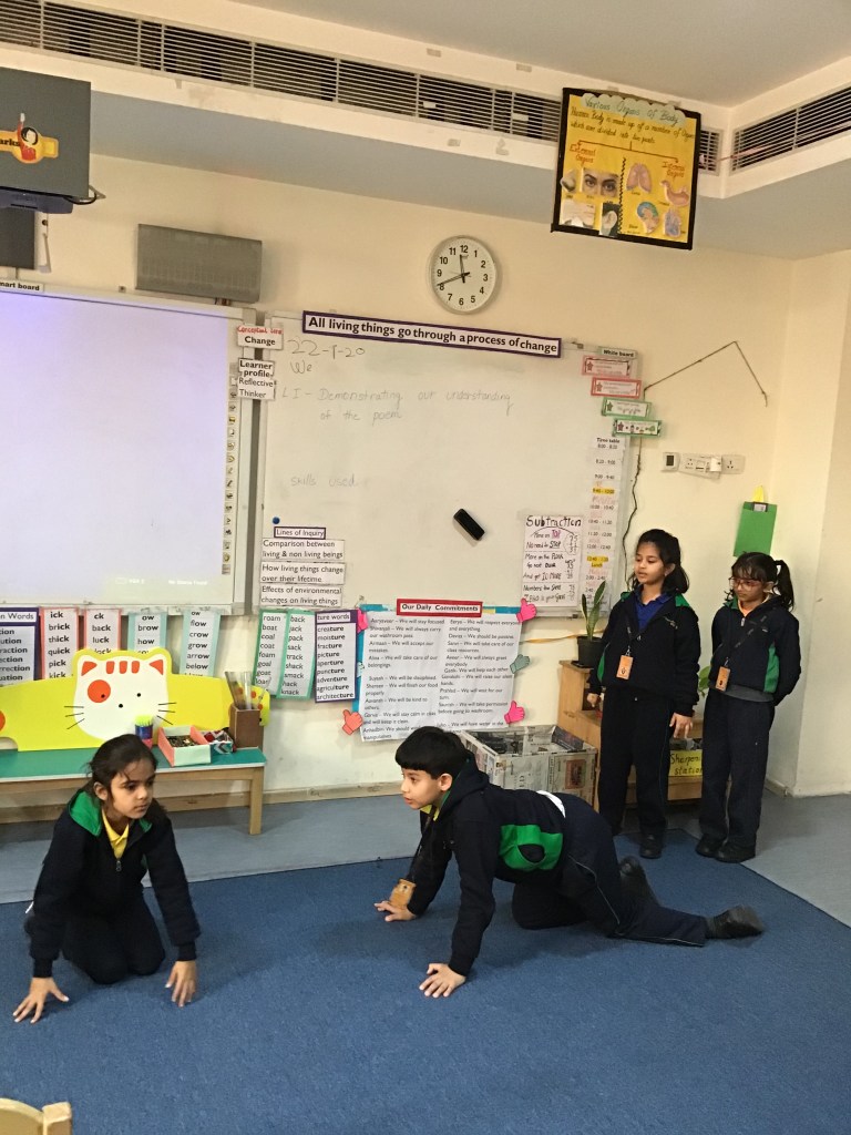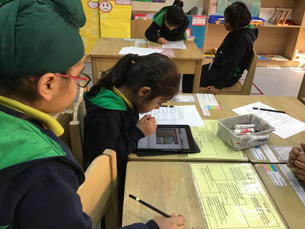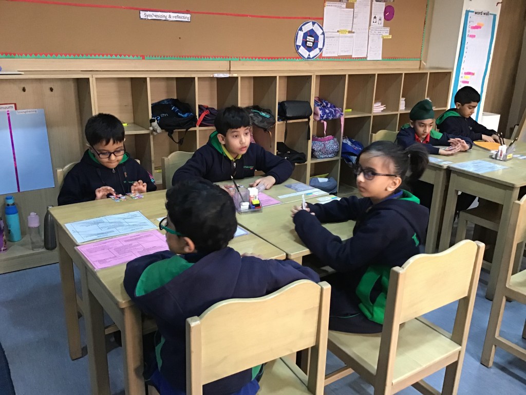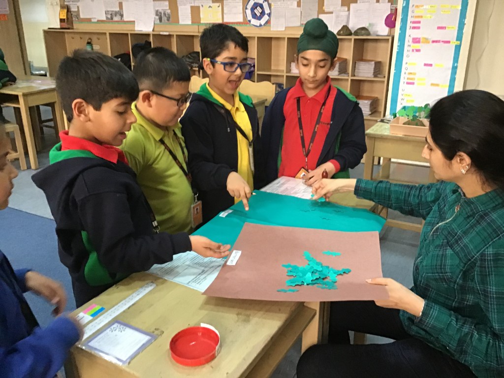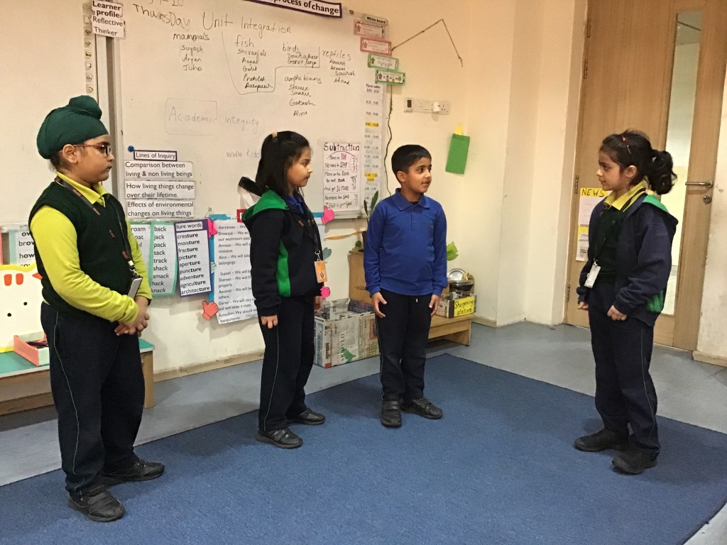 Teamwork being a crucial aspect for developing social skills, students were encouraged to work in groups to research about the loss of habitat of different animals. Their research work was backed by multiple resources like iPads, books and factsheets. Students organised their work by choosing different Visible Thinking Routines thereby facilitating opportunities to exercise student agency and take ownership of their learning and action.