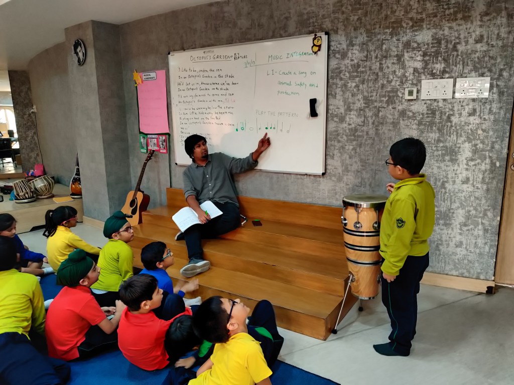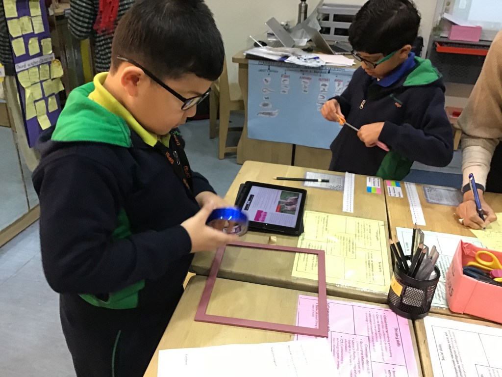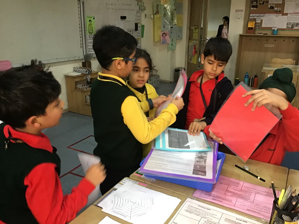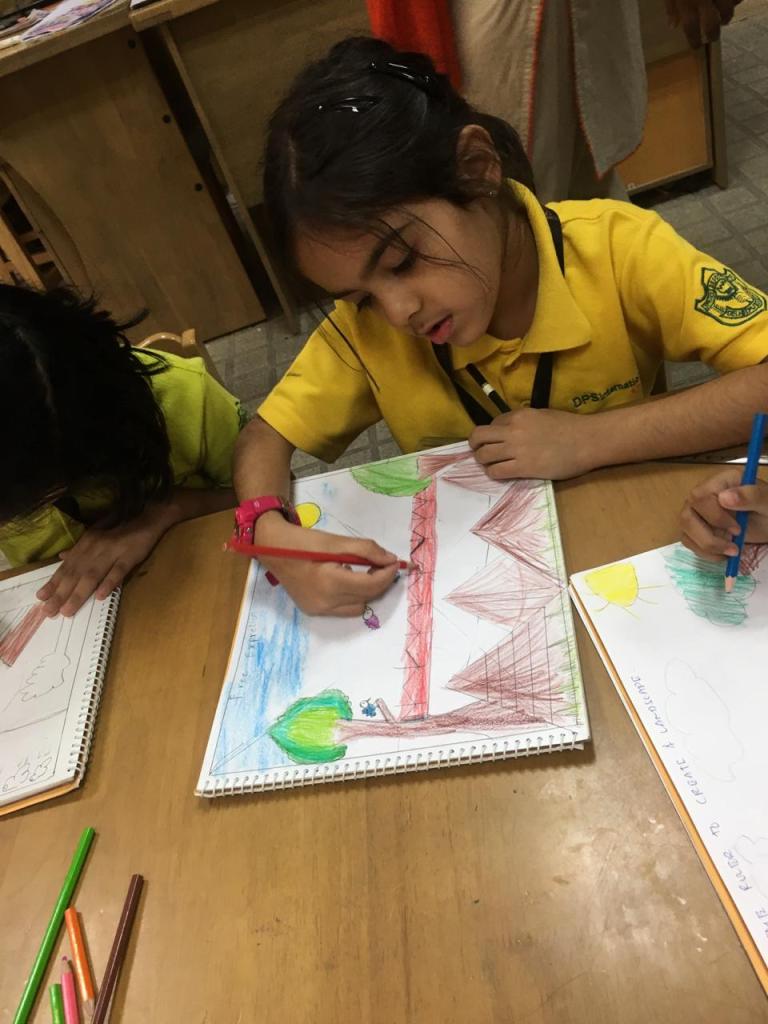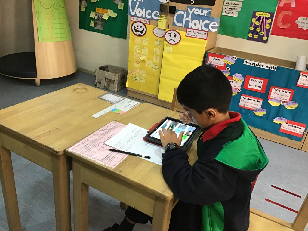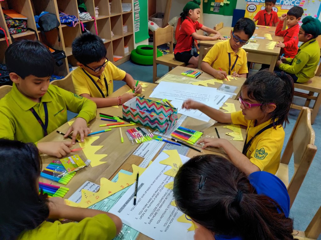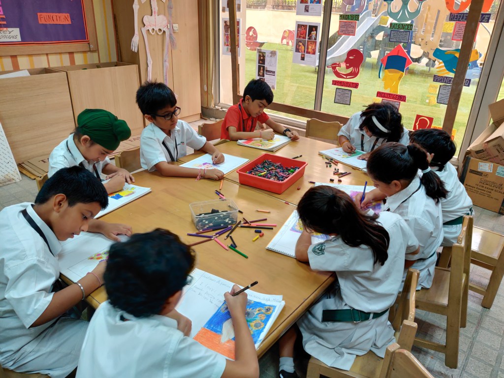 Teamwork being a crucial aspect for developing social skills, students were encouraged to work in groups to research about the loss of habitat of different animals. Their research work was backed by multiple resources like iPads, books and factsheets. Students organised their work by choosing different Visible Thinking Routines thereby facilitating opportunities to exercise student agency and take ownership of their learning and action.