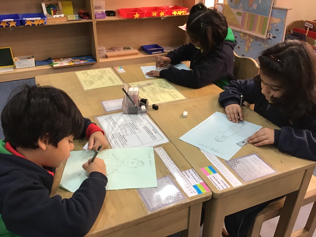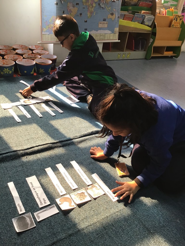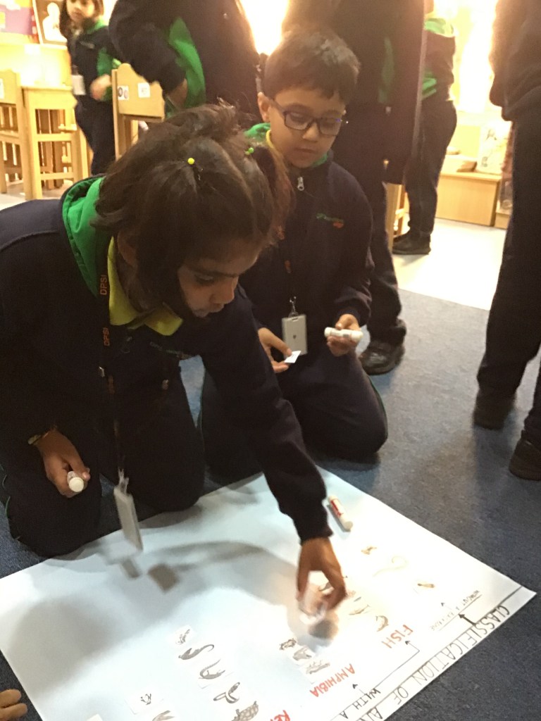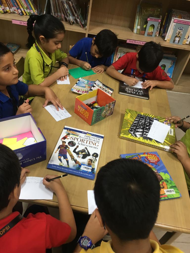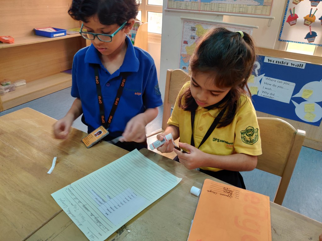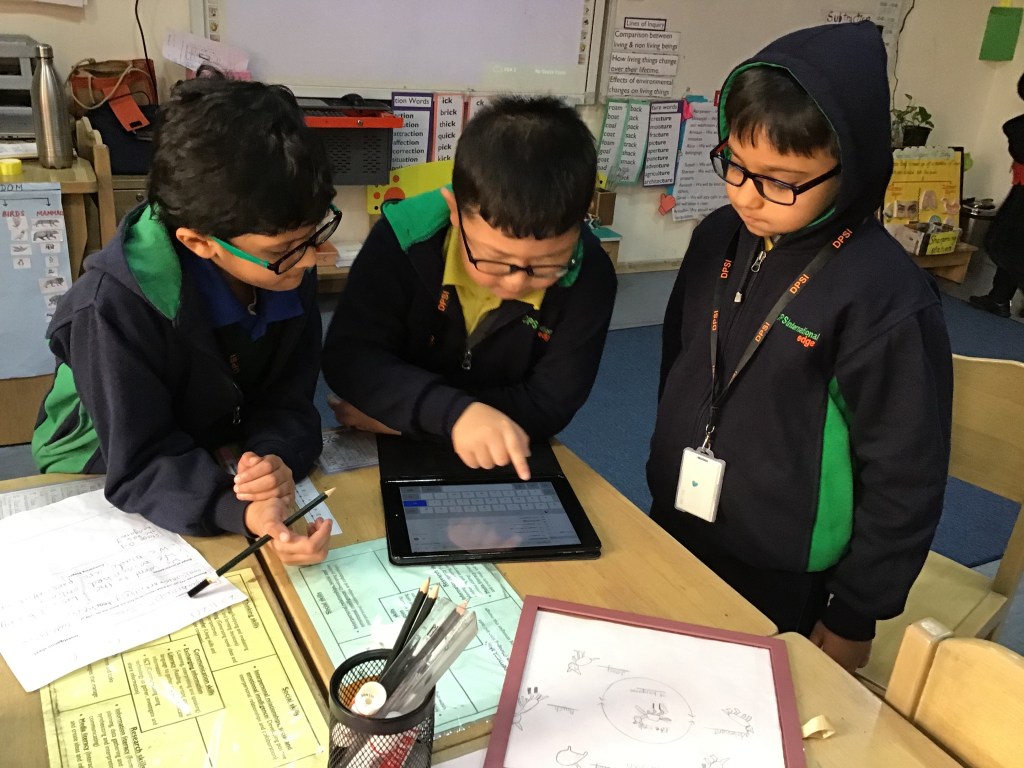 To further their inquiry, students discussed and researched about the reasons for extinction of certain animals like dinosaurs. They recorded their findings on a place mat.