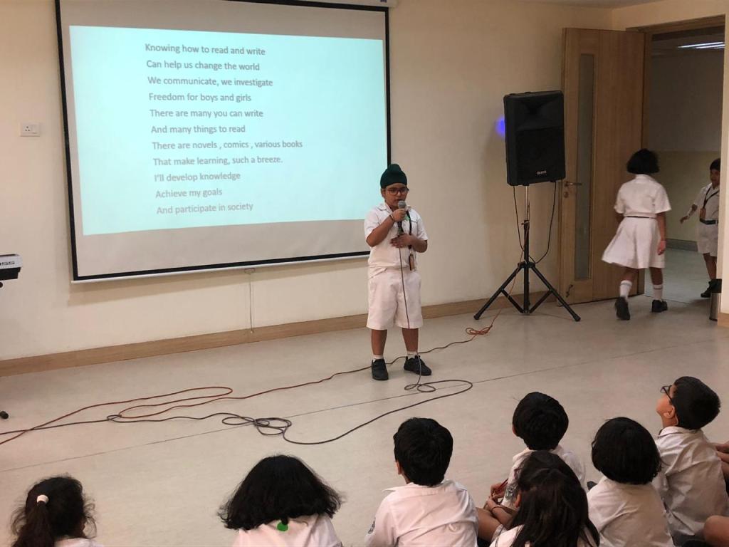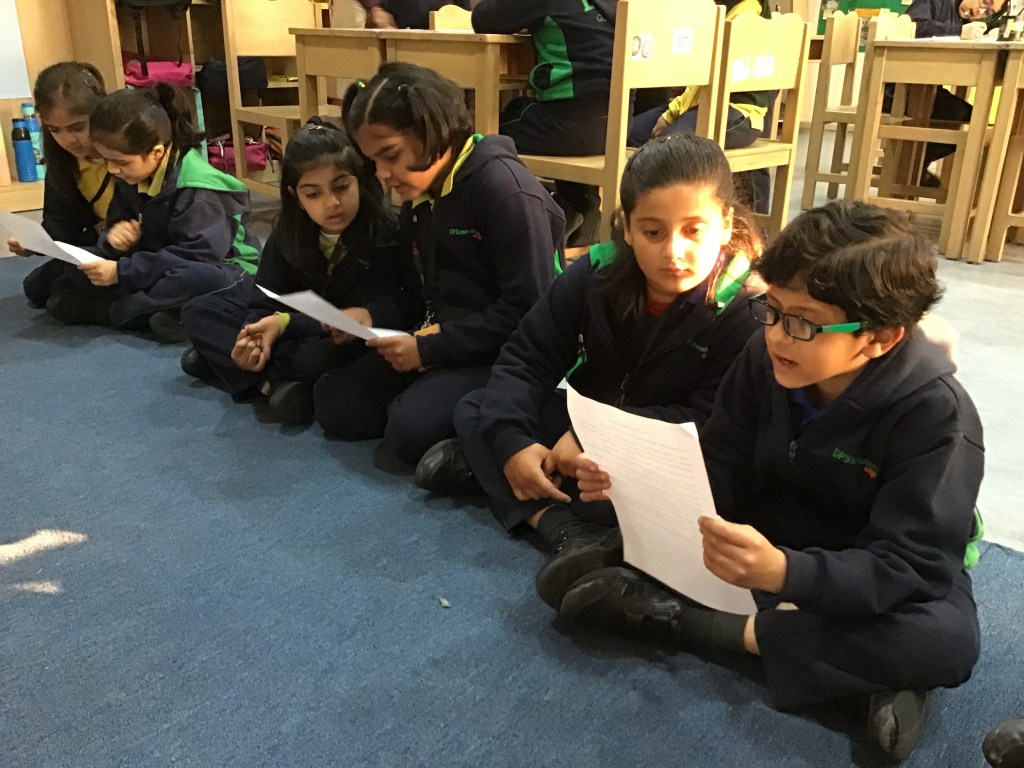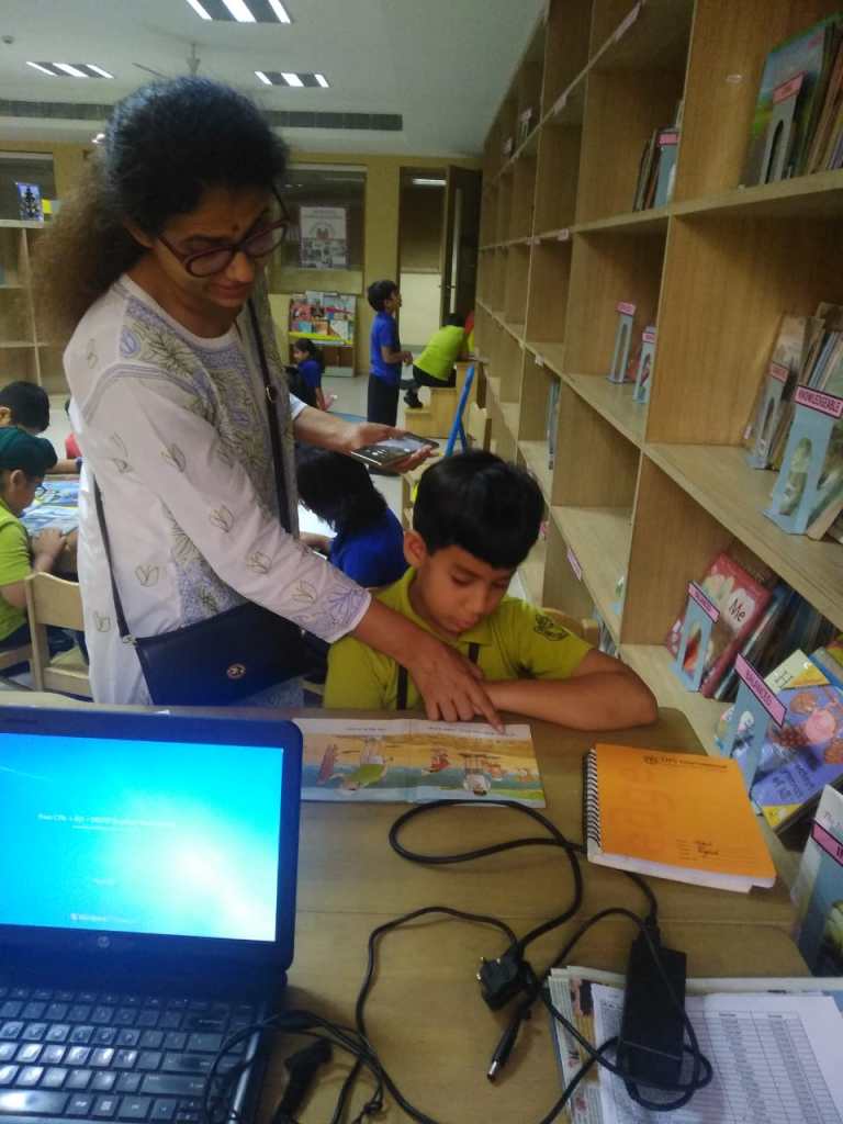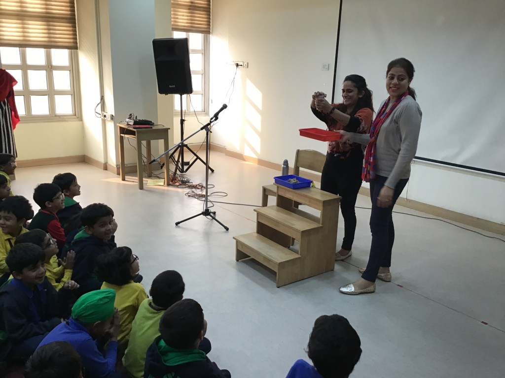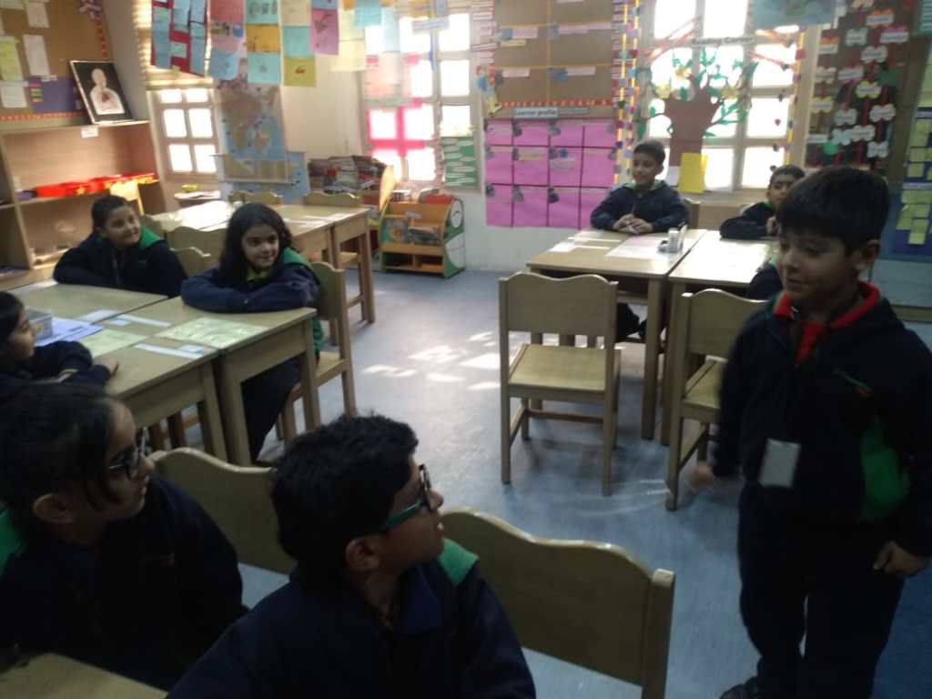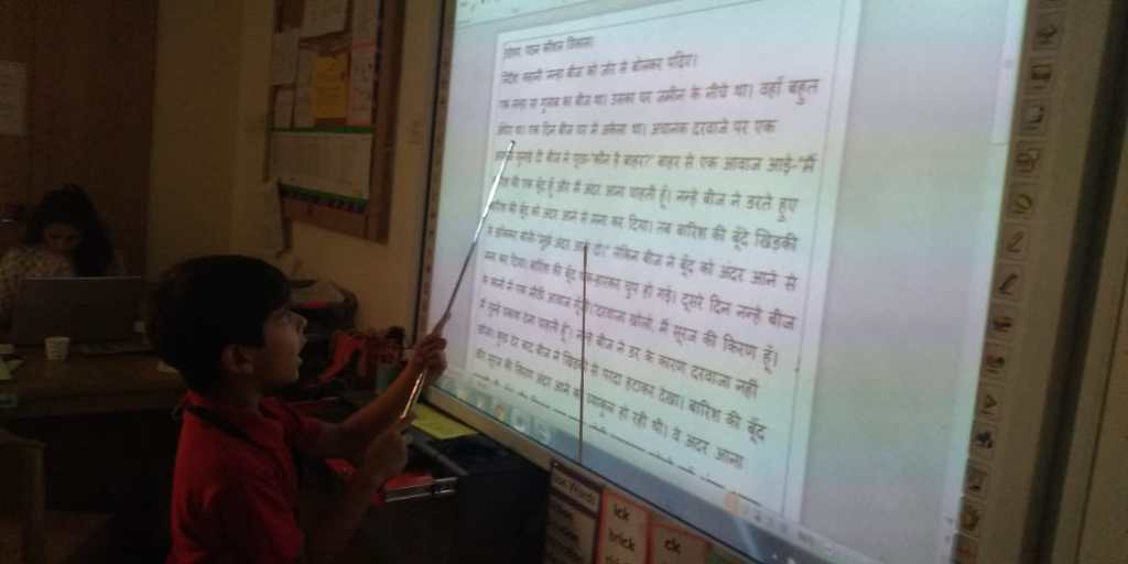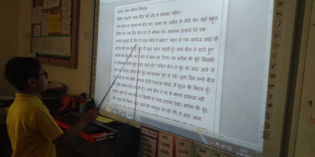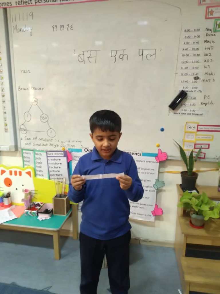 To enhance their speaking skills, students read ‘bas ek pal’. They were introduced to grammar concept of singular and plural.