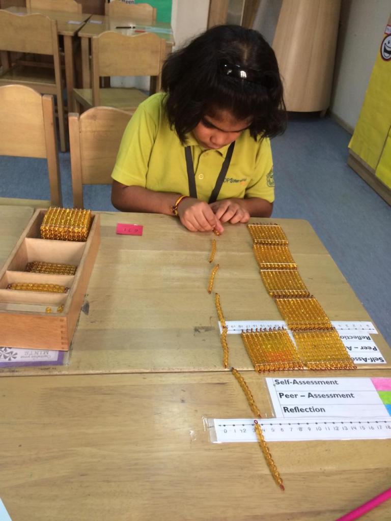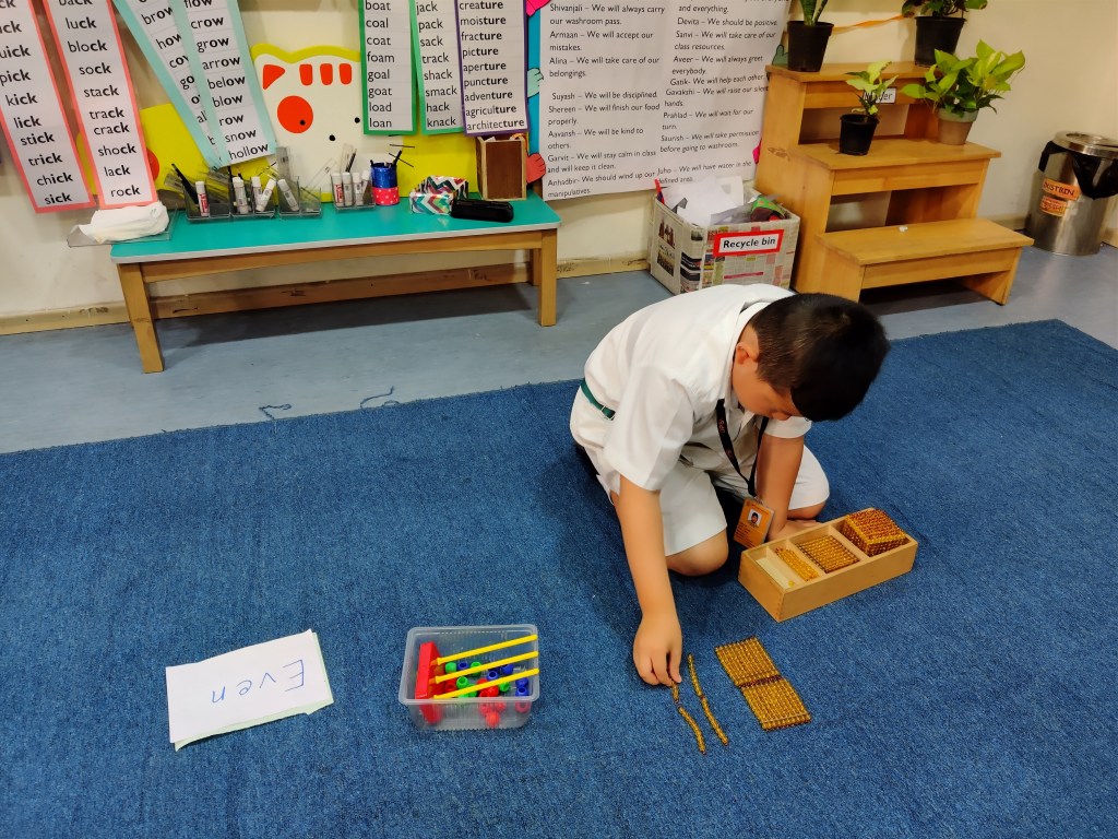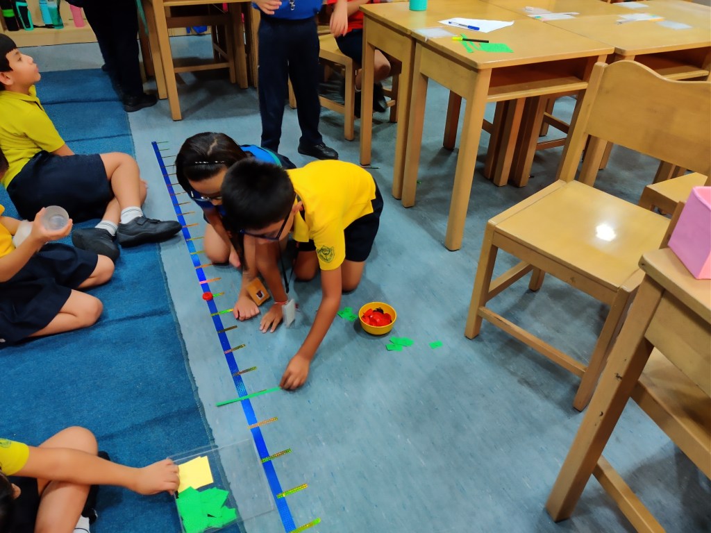 Students further strengthened their concept on patterns by creating various patterns using numbers, shapes, alphabets and colours.