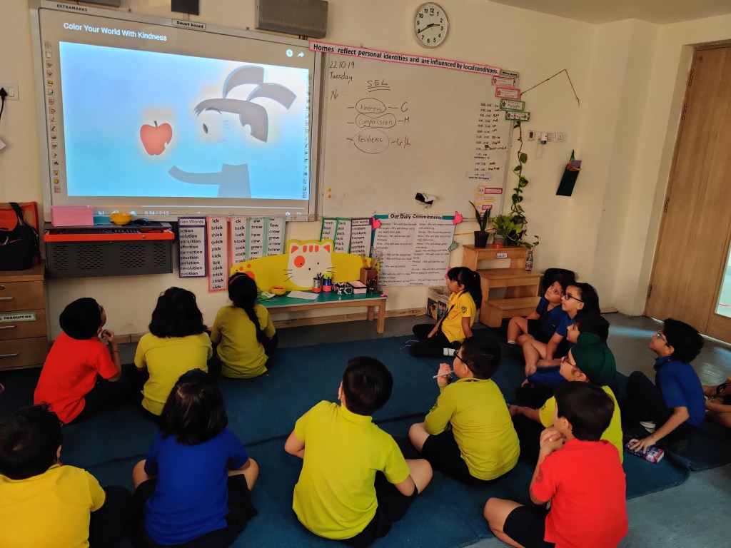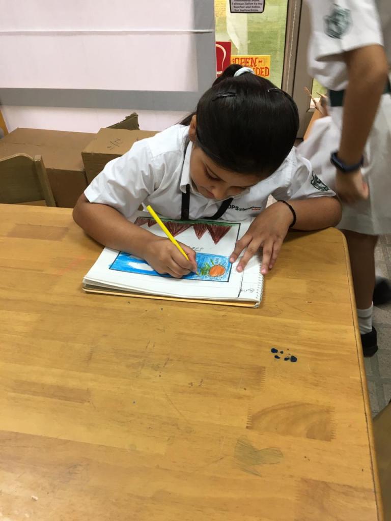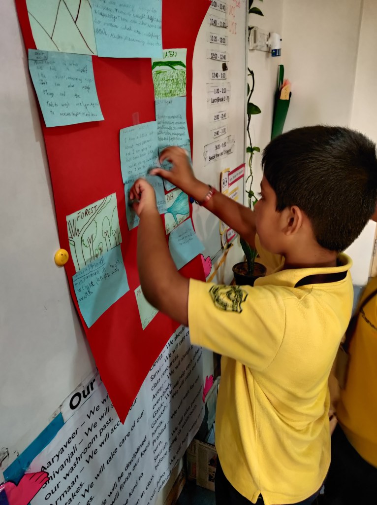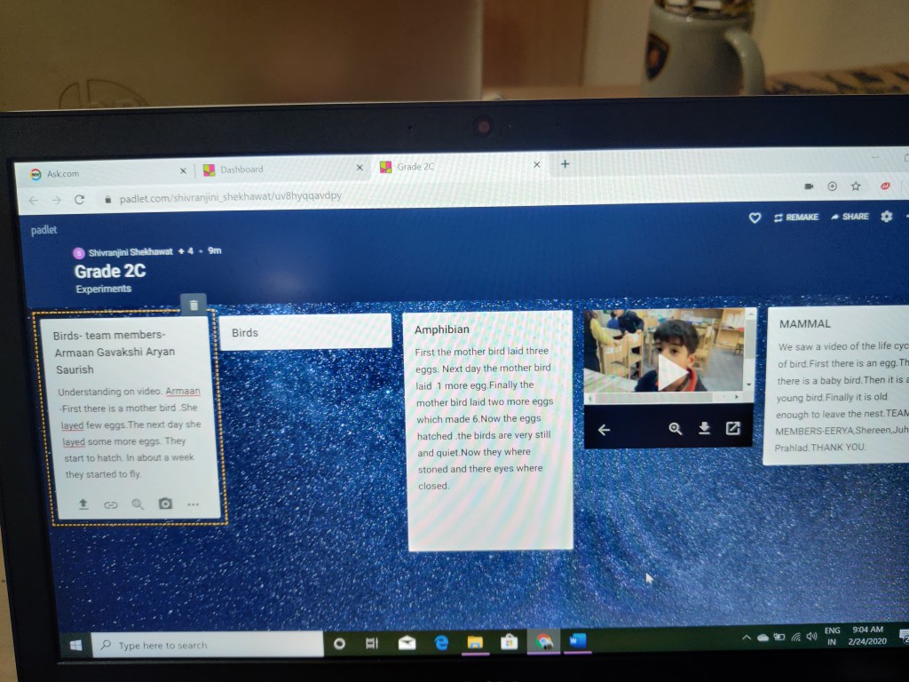 To enhance their listening skills, students listened to the story titled – ‘A bird story’ which described the life cycle of a bird. Later, they summarized and recorded their understanding using padlet, an ICT tool used to create an online bulletin board.